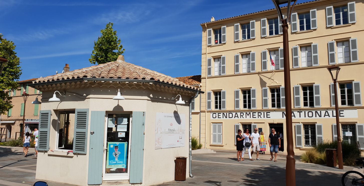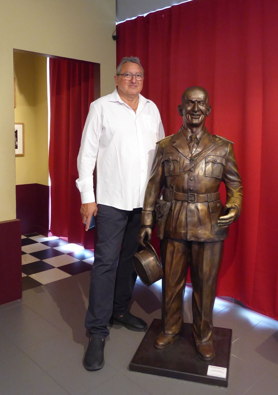 Dieses Museum lassen wir uns nicht entgehen. Ein kurzer Fußweg – und wir stehen am Platz mit der Gendarmerie, so wie man sie aus den Filmen kennt, mit dem Museum drinnen. Hier wurden also die Filme in den 60er- und 70er-Jahren gedreht, tatsächlich die Original-Kulisse – und nicht nur Kulisse, das Gebäude war wirklich die Gendarmerie von Saint Tropez, von 1879 bis 2003.