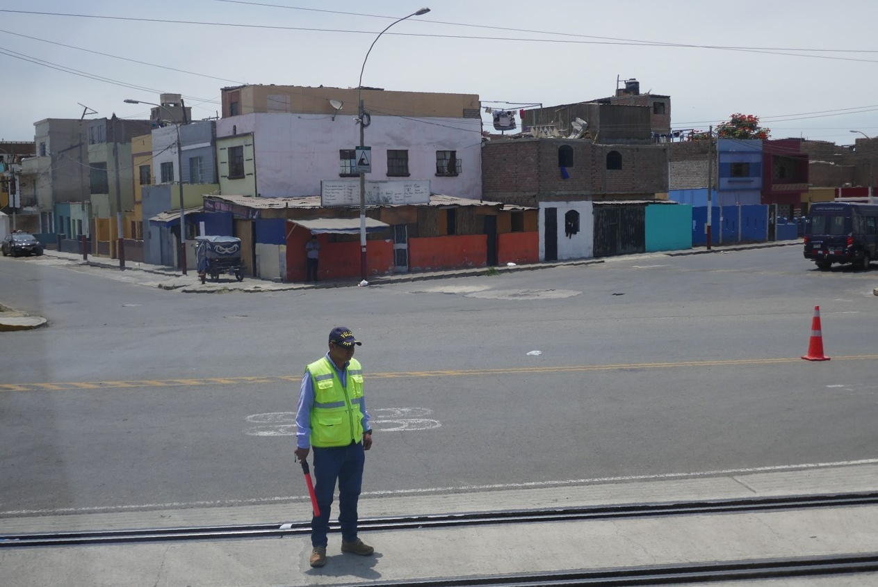 Danach folgt eine längere Strecke durch sehr ärmlich anmutende Gebiete in Richtung Stadtzentrum. Unterwegs sind in den Straßen wieder die gut gefüllten Personenbusse zu sehen, entlang der Straßen kleine Geschäfte und Wohnhäuser, in den Seitenstraßen immer wieder einmal ein Markt, und sehr präsent die Polizei.