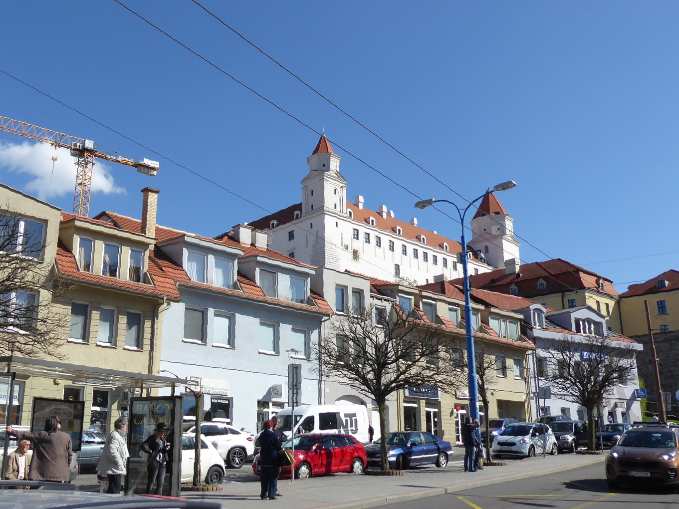 Egal wo man in Bratislava unterwegs ist – die Burg ist immer präsent, von den großen Straßen und Plätzen aus in Gesamtansicht über der Stadt thronend, und von vielen der kleinen Gassen aus als ausschnitthafter Fixpunkt.