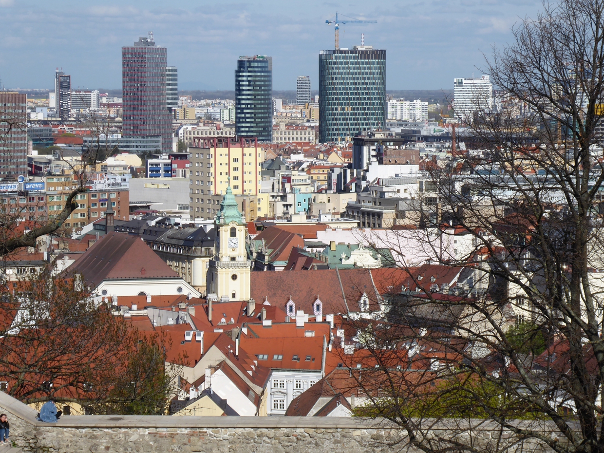 Von oben aus haben wir dann nicht nur einen guten Überblick über die Altstadt, sondern auch über den modernen Stadtteil Petrzalka, in dem mehr als 100.000 Menschen leben. Kurz nach diesem Stadtteil kommt die Grenze nach Österreich – vor ein paar Jahrzehnten noch der „Eiserne Vorhang“.
