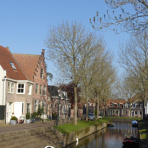 Das Städtchen ist wie so ziemlich alle Orte in den Küstenbereichen Hollands durchzogen von schmalen Wasserwegen, die sich immer wieder zu kleinen Häfen weiten.