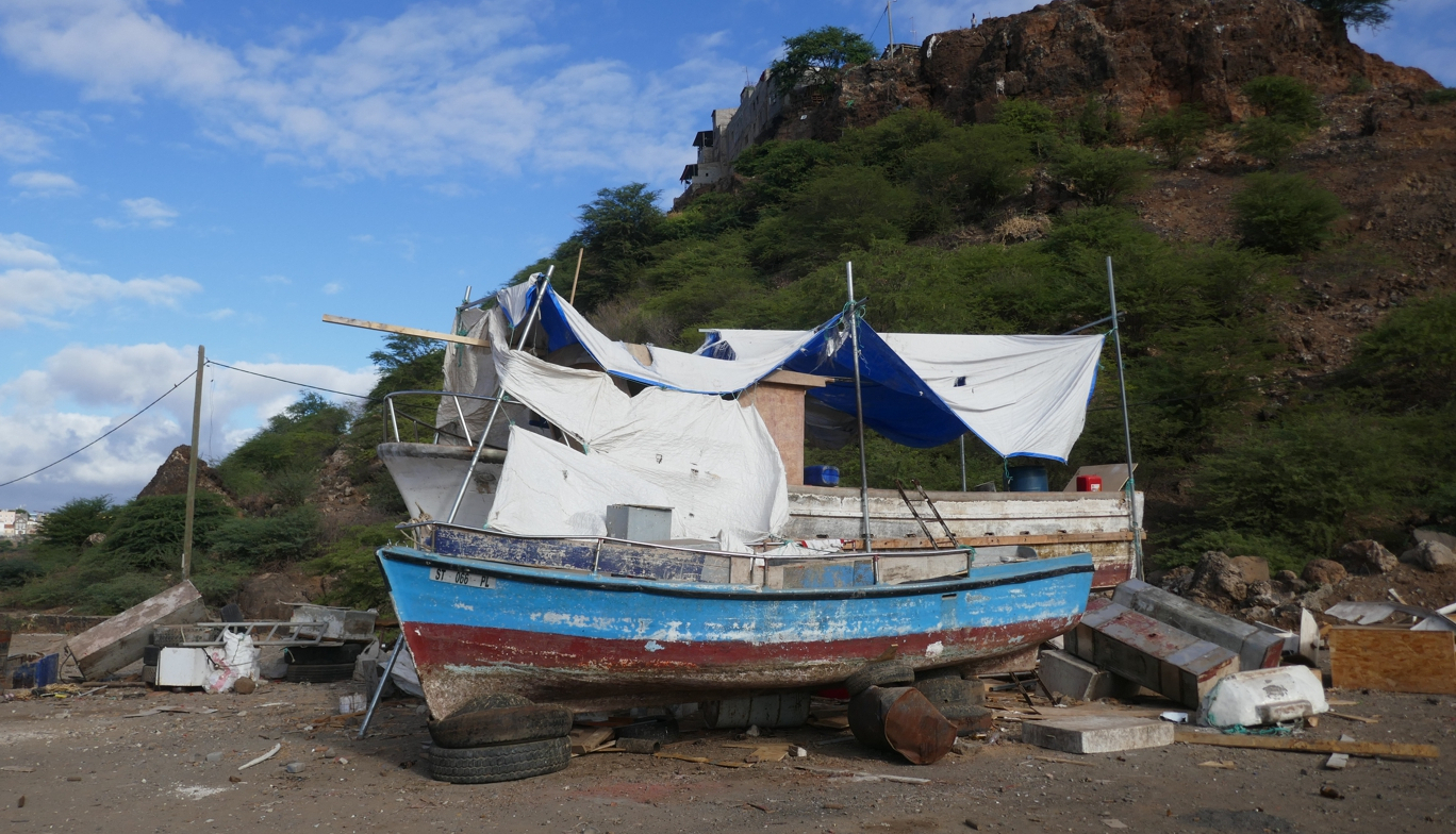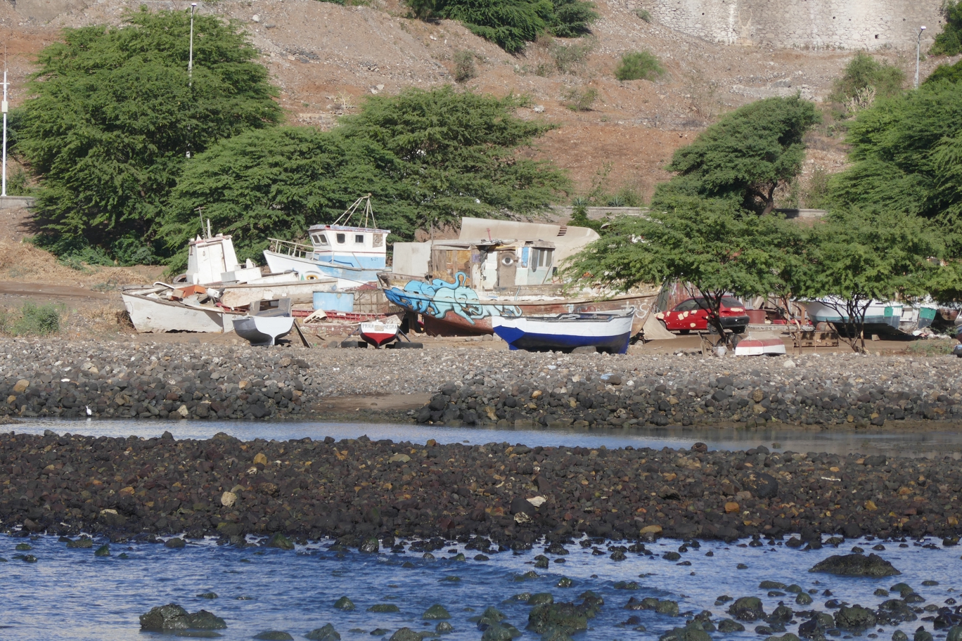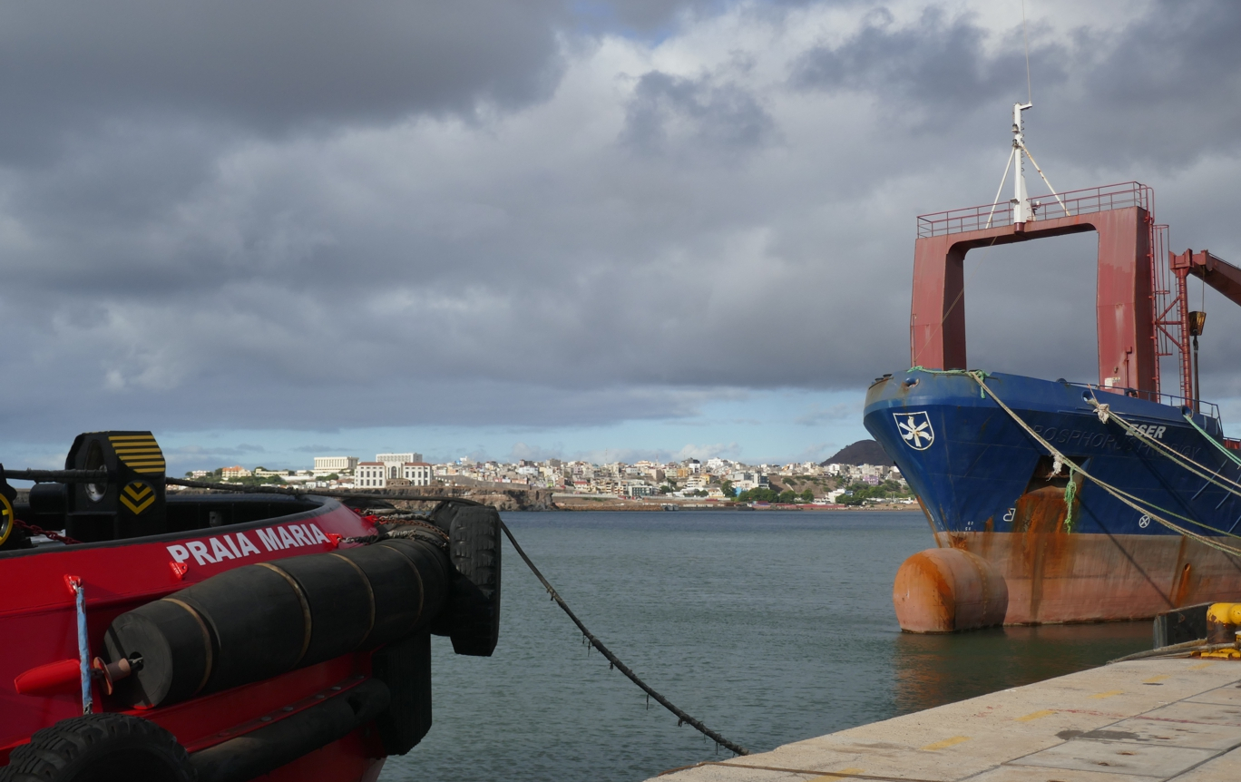 Wir sind jetzt ziemlich weit im Süden angekommen; die Kapverden liegen zwischen dem nördlichen Wendekreis der Erde und dem Äquator. Der afrikanische Kontinent ist etwa 500 Kilometer entfernt; im Osten der Kapverden liegen der Süden Mauretaniens und der Norden Senegals. Die Insel Santiago, wo wir zuerst anlegen, liegt in etwa auf Höhe von Dakar.