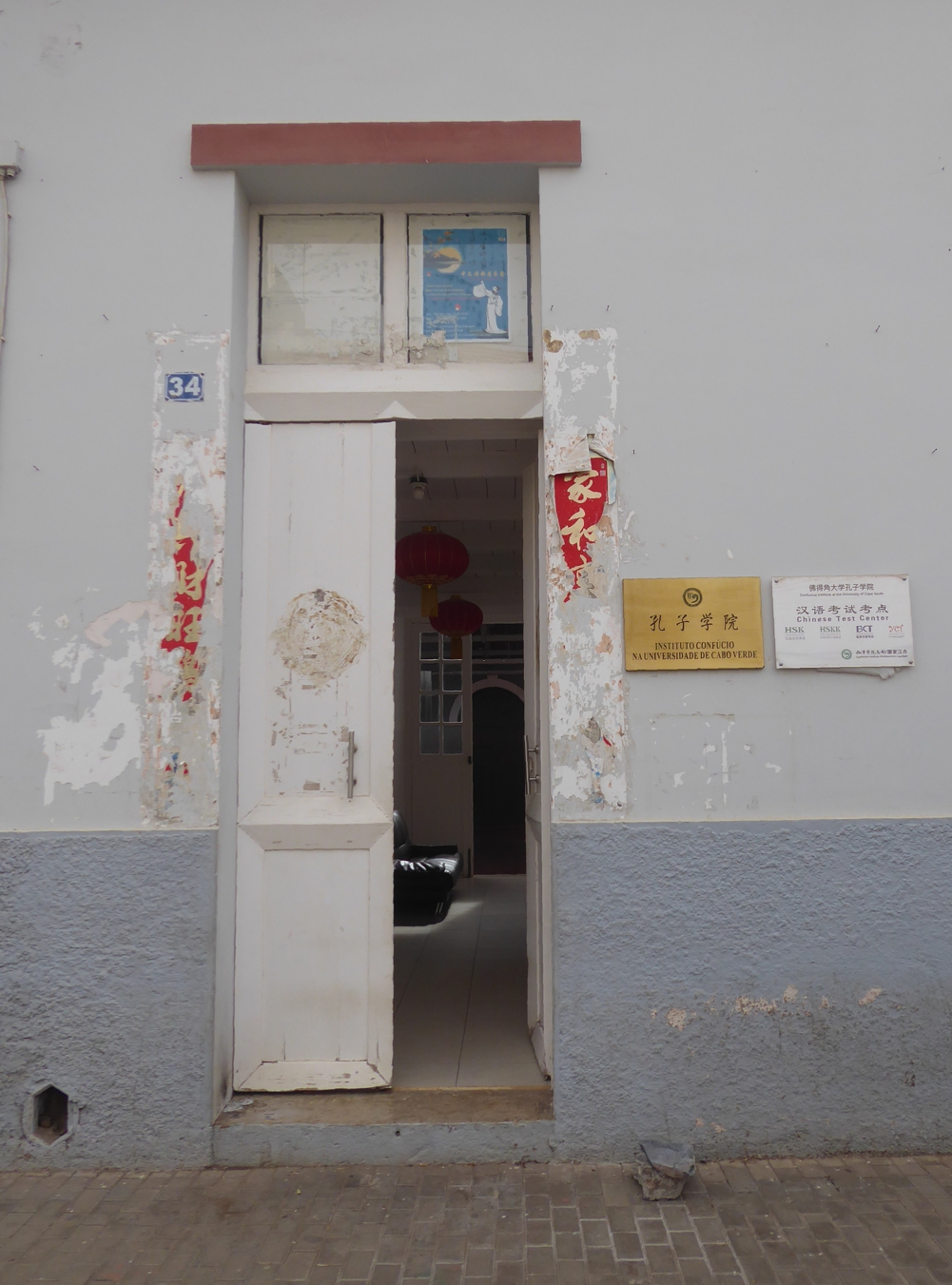 Zu unserer Überraschung entdecken wir mitten in der Stadt noch ein Gebäude, das weitgehend mit chinesischen Schriftzeichen beschildert ist, offensichtlich kein Lebensmittelgeschäft. Wir schauen interessiert die Infotafeln an, und werden sogleich von einem jungen Mann angesprochen, der uns hinein bittet und der einiges erzählt. Zu unserer Überraschung handelt es sich um ein Universitätsgebäude; die Universität in Praia wird anscheinend unterstützt durch China, und man kann auch Mandarin als Fremdsprache studieren.