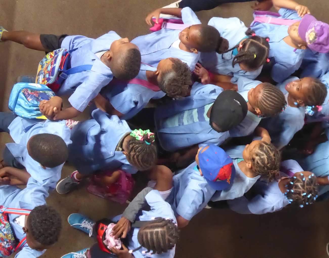 Immer wieder sieht man in der Stadt Schüler, die großen allein unterwegs, die kleinen in Gruppen und in Schuluniformen.
