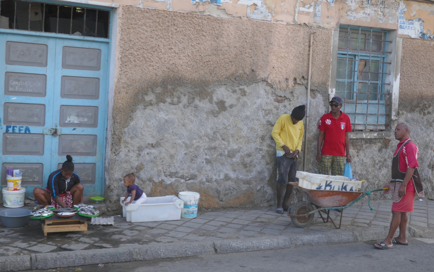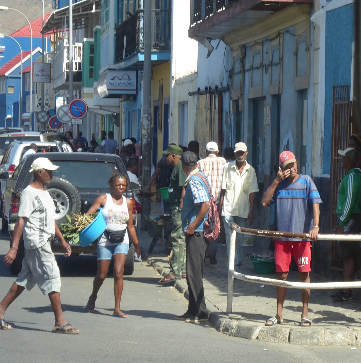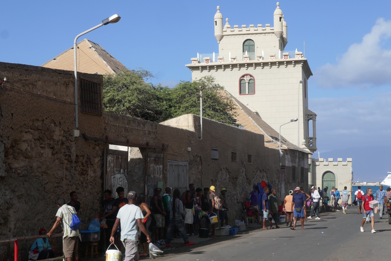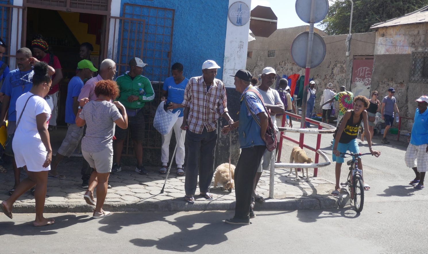 Zum Glück lässt uns unser Guide die Stunde nicht einfach im Restaurant absitzen, sondern den Bus noch einmal kreuz und quer durch Mindelo gondeln, durch viele neue Straßen und noch mehr altbekannte. Aber wir schauen uns einfach das Straßenleben an, ist auch interessant.
