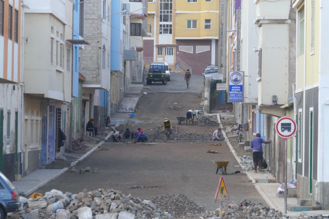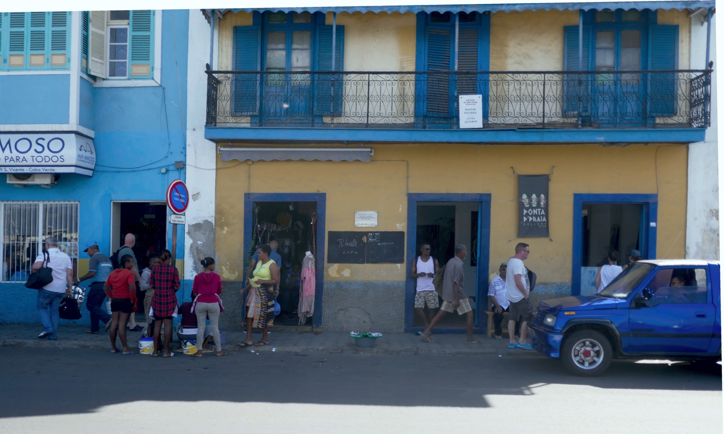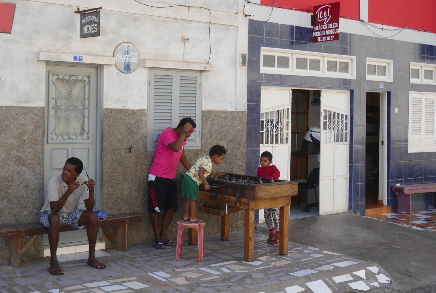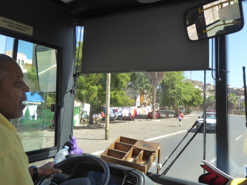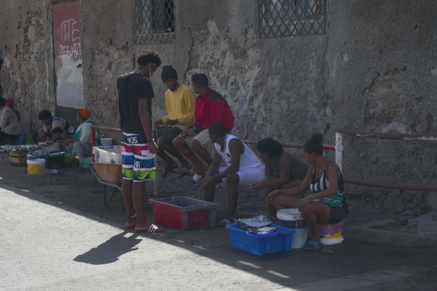 Zum Glück lässt uns unser Guide die Stunde nicht einfach im Restaurant absitzen, sondern den Bus noch einmal kreuz und quer durch Mindelo gondeln, durch viele neue Straßen und noch mehr altbekannte. Aber wir schauen uns einfach das Straßenleben an, ist auch interessant.