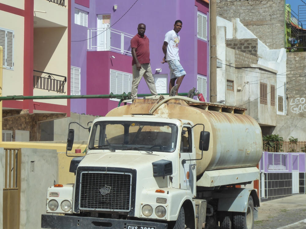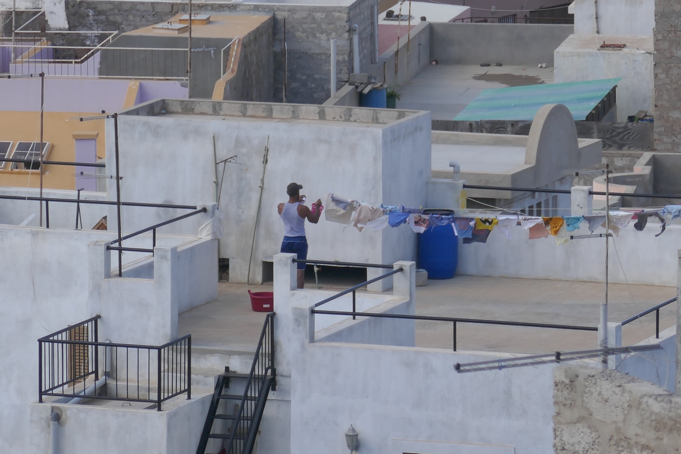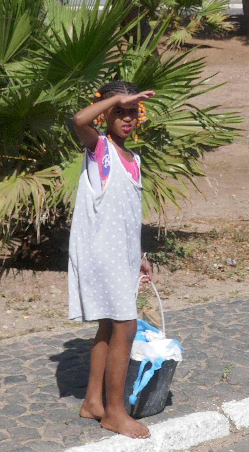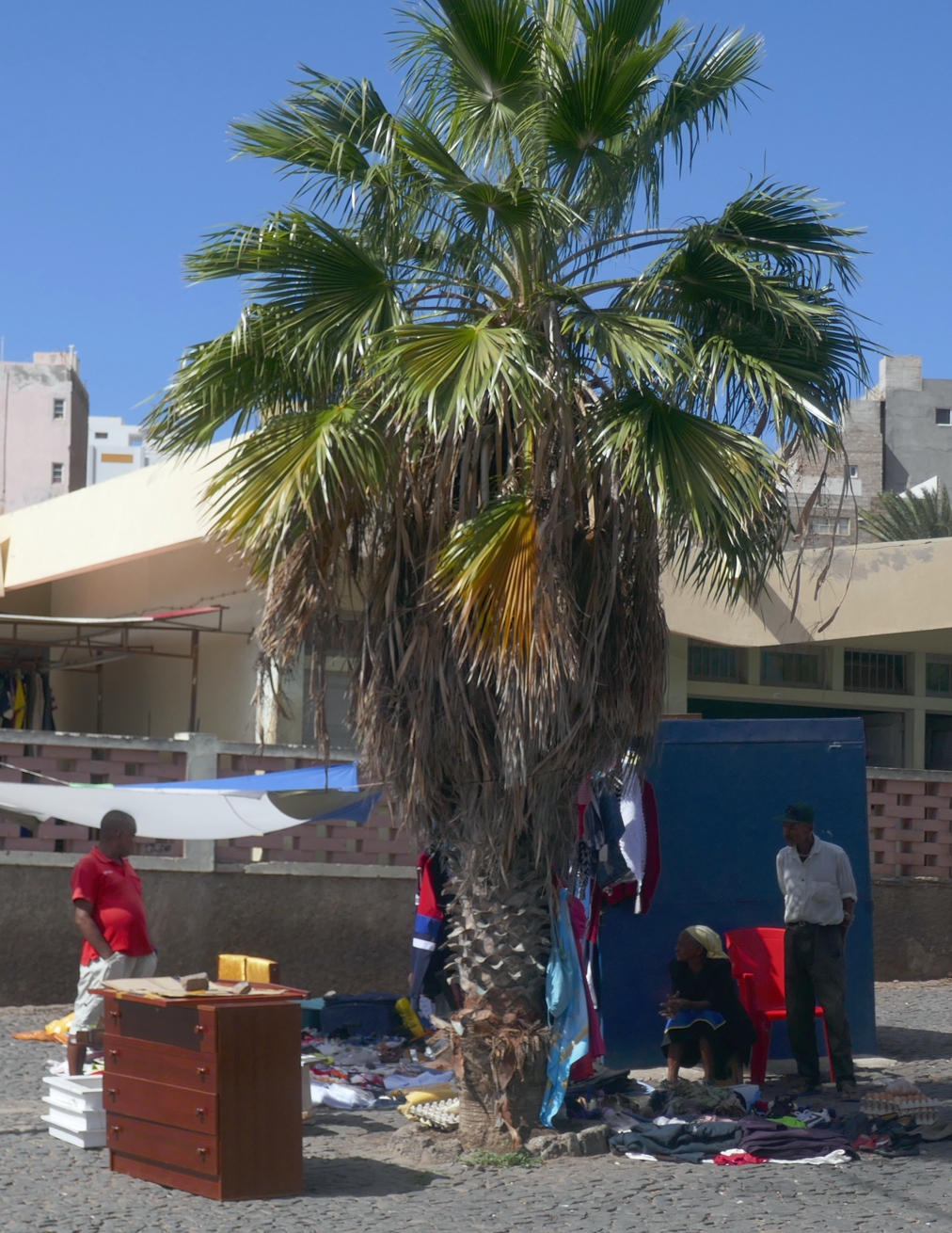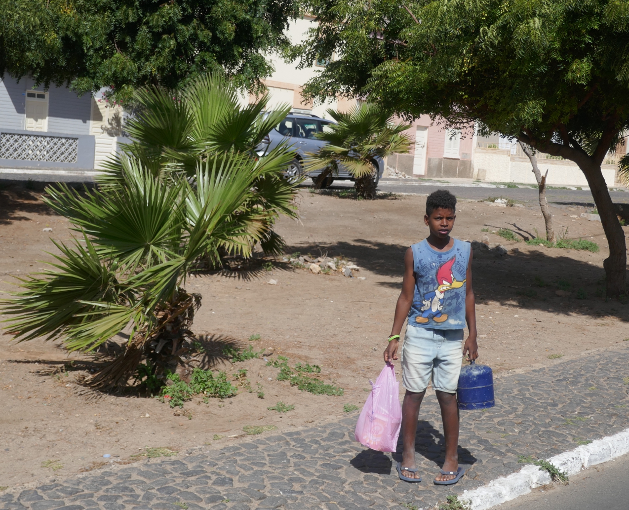 Zum Glück lässt uns unser Guide die Stunde nicht einfach im Restaurant absitzen, sondern den Bus noch einmal kreuz und quer durch Mindelo gondeln, durch viele neue Straßen und noch mehr altbekannte. Aber wir schauen uns einfach das Straßenleben an, ist auch interessant.