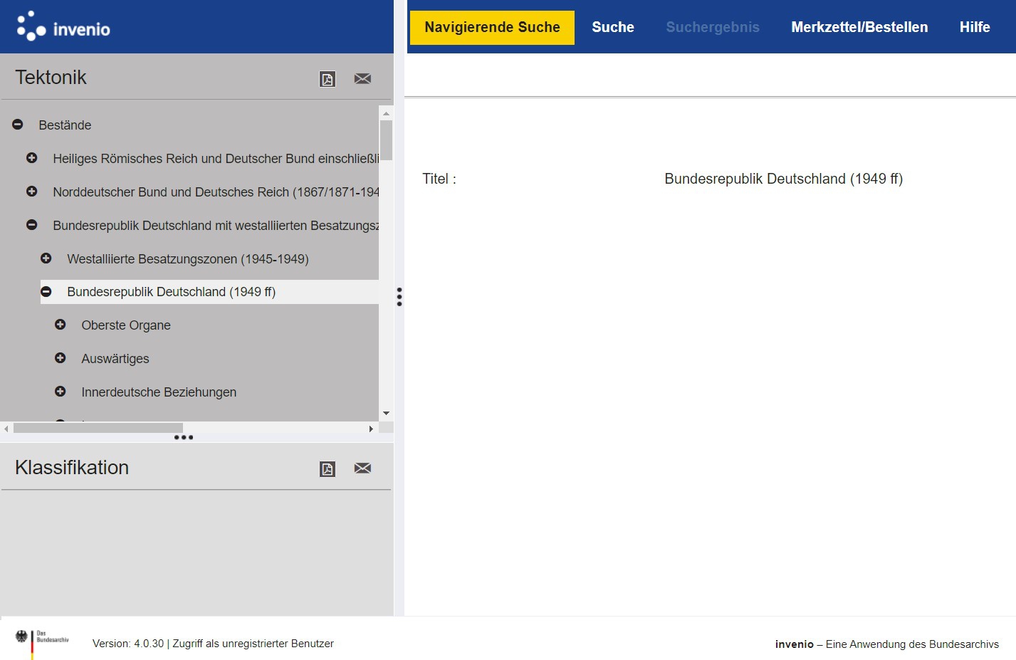 Wer gerne historische Fotos anschaut oder auswertet, sollte sich die Seite http://www.bild.bundesarchiv.de vornehmen. Filme suchen und ansehen, dafür ist die Seite http://www.filmothek.bundesarchiv.de hervorragend. Und wer ganz gezielt in Akten und mit Stichworten recherchieren will, sollte dies auf http://www.invenio.bundesarchiv.de tun. Für all das, was noch nicht digitalisiert ist – dafür gibt es dann einen Besuch in Koblenz oder einer anderen Dienststelle des Archivs.
