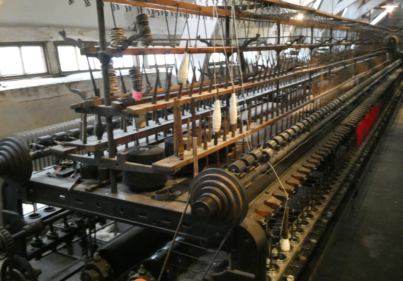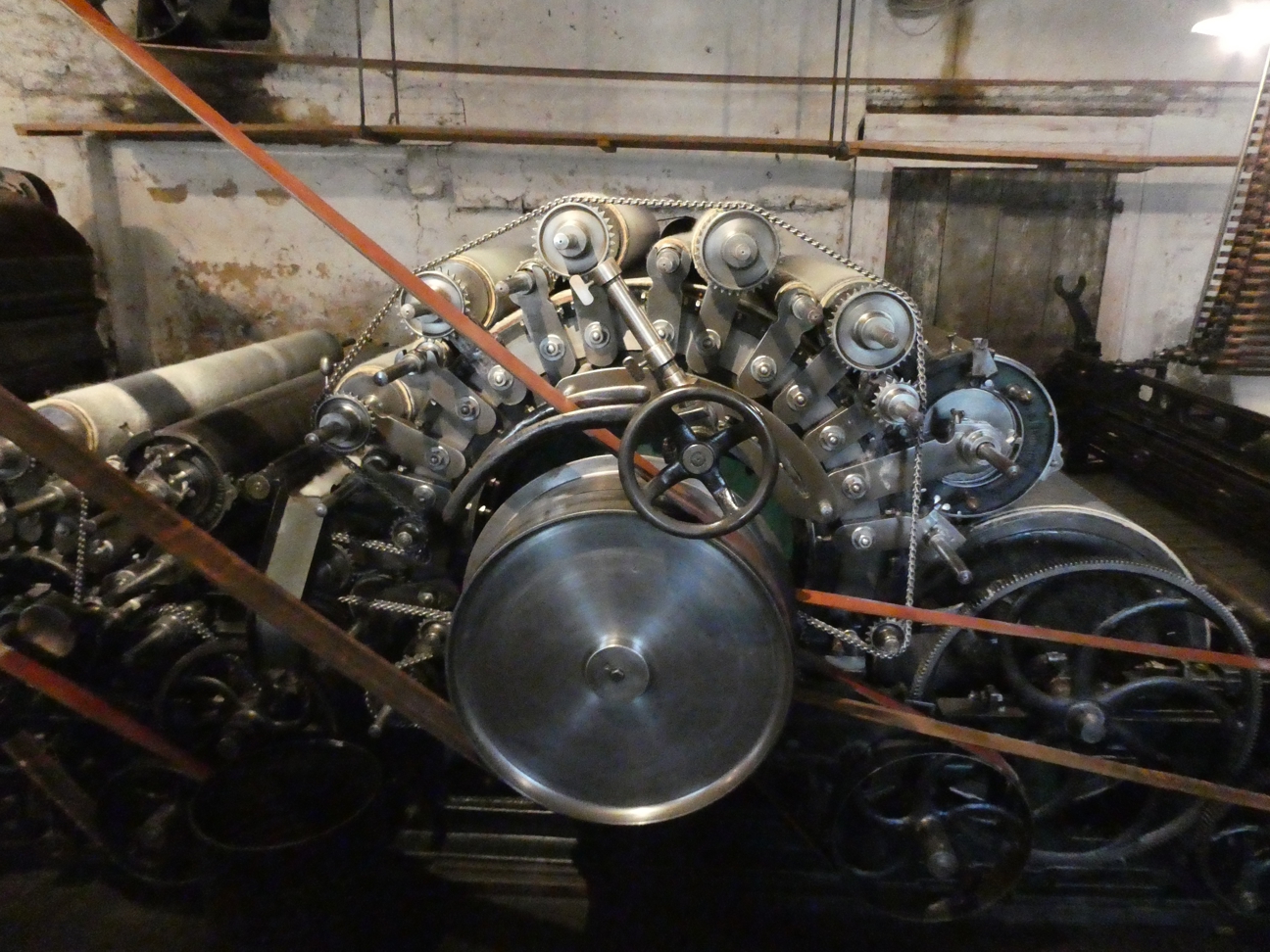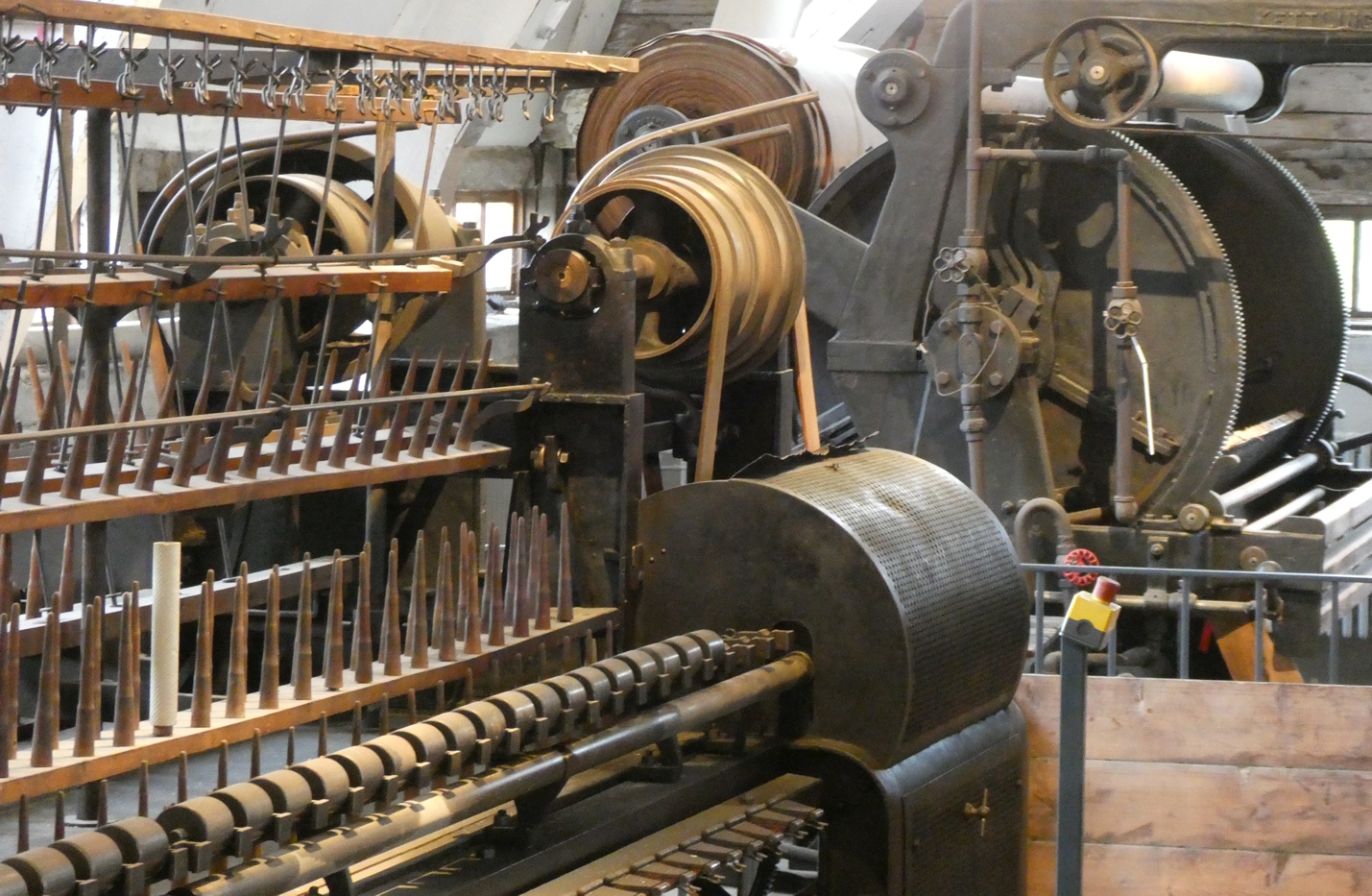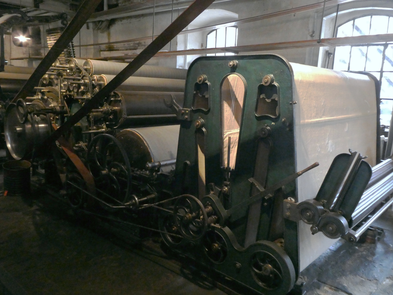 Tatsächlich stehen wir also hier vor einem sehr ungewöhnlichen Industriedenkmal, das so, wie es dasteht, einzigartig sogar in ganz Europa ist. Man ist ja gewohnt, gerade bei Bauten und vor allem Maschinen aus der ersten Zeit der Industrialisierung auf Überreste und Ansammlungen zu treffen, zusammengesammelt und präsentiert. Aber hier stehen wir vor einer alten Fabrik, die in einem Zustand ist, als wäre vor wenigen Tagen noch produziert worden, und jetzt für Besucher alles nur ein wenig gesäubert und hergerichtet worden wäre. Hier steht noch die komplette Produktion, so wie in den Anfangsjahren, und sogar noch funktionstüchtig, wie uns später vorgeführt wird.
