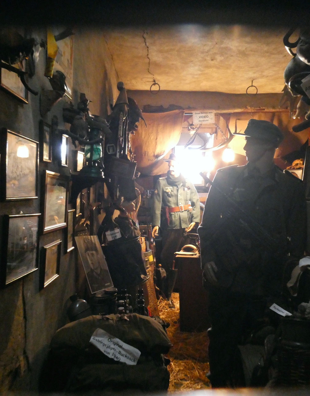 In weiteren Räumen, Nischen und Ecken kommt dazu noch eine Ansammlung von allem möglichen, zum Beispiel ein Raum voller Utensilien der Gebirgsjäger, oder eine Arztpraxis mit eher erschreckender Ausstattung, oder auch eine kleine Sammlung zum Thema Fliegen und Reisen, erste Objekte, um ein Reisebüro einzurichten.