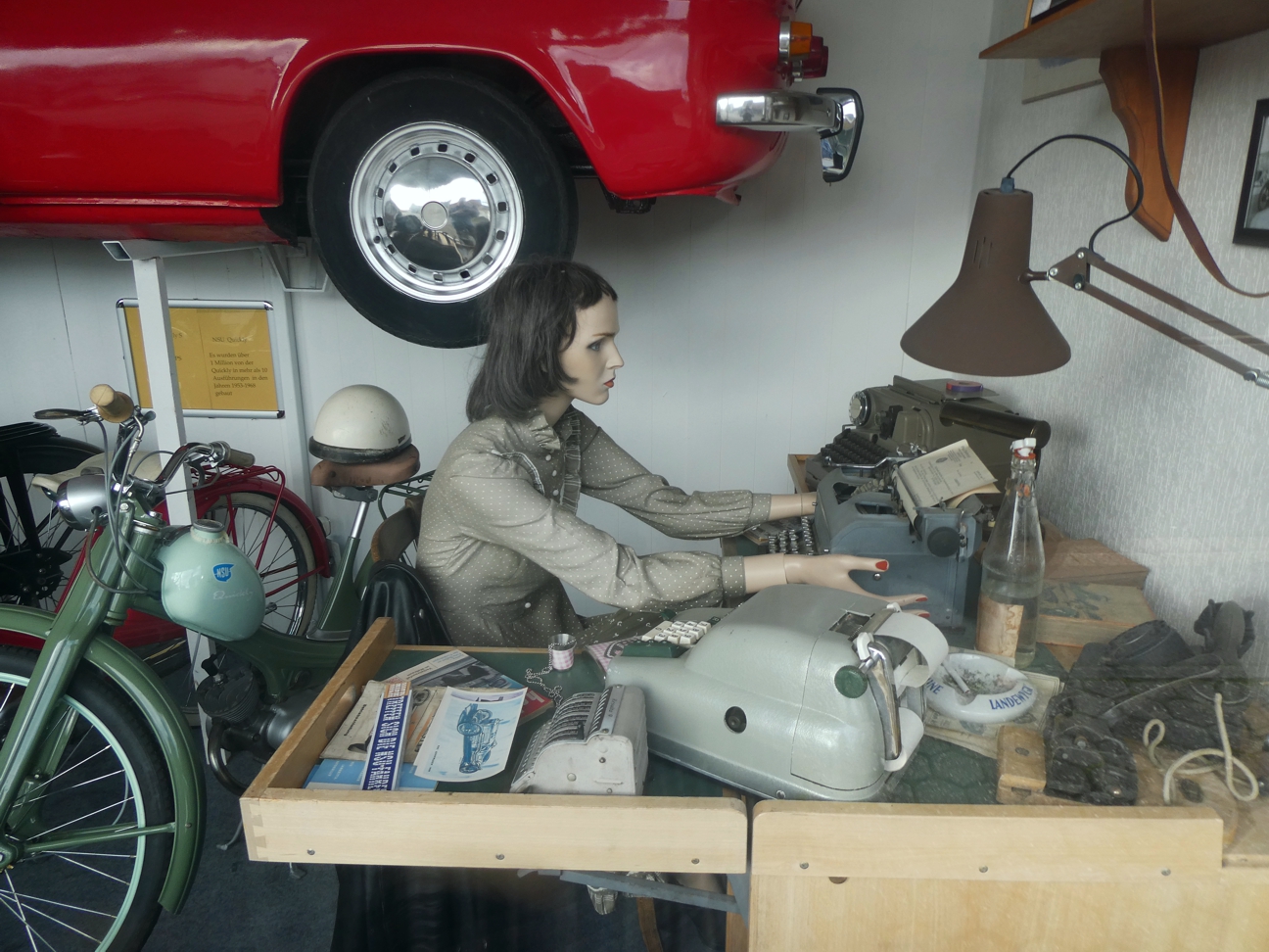 Um Autos, Motorräder und Tankstellen geht es in den Museen in Uersfeld und in Münstermaifeld. Hinter Schaufenstern ist eine Motorradwerkstatt eingerichtet samt Büro, so ein wenig geht es auch um Autoreparatur. Toll sind die alten Motorräder und Mopeds, die herumstehen.