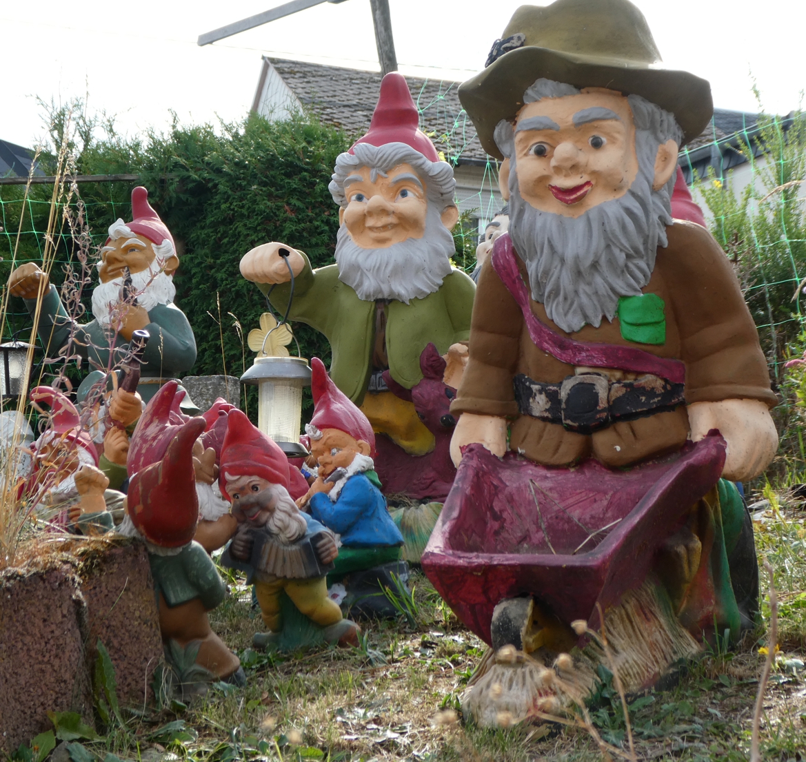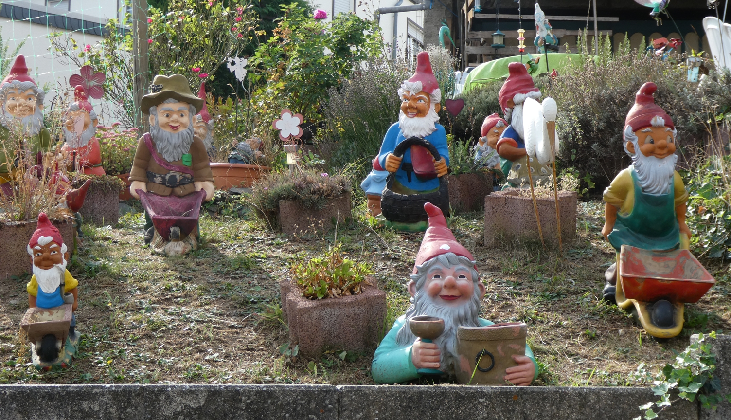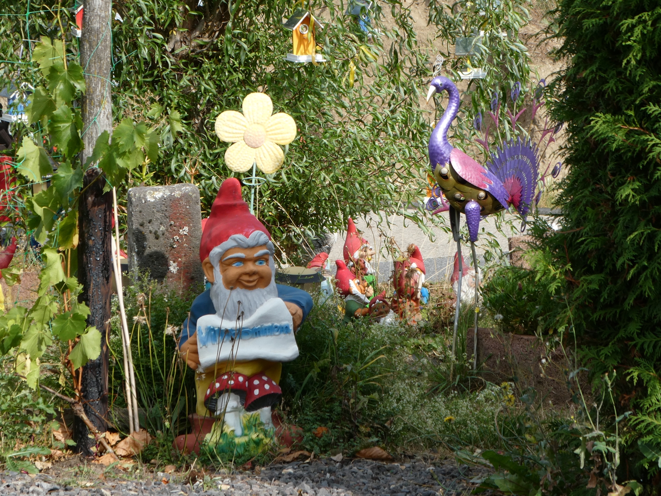 Aus den Wolken heraus geht es etwas später durch ein kleines Dorf, im Ortskern recht idyllisch – und unsere Entdeckerfahrt wird abgerundet durch etwas, das es so wohl nicht mehr so oft geben dürfte: Ein Garten voller Gartenzwerge.