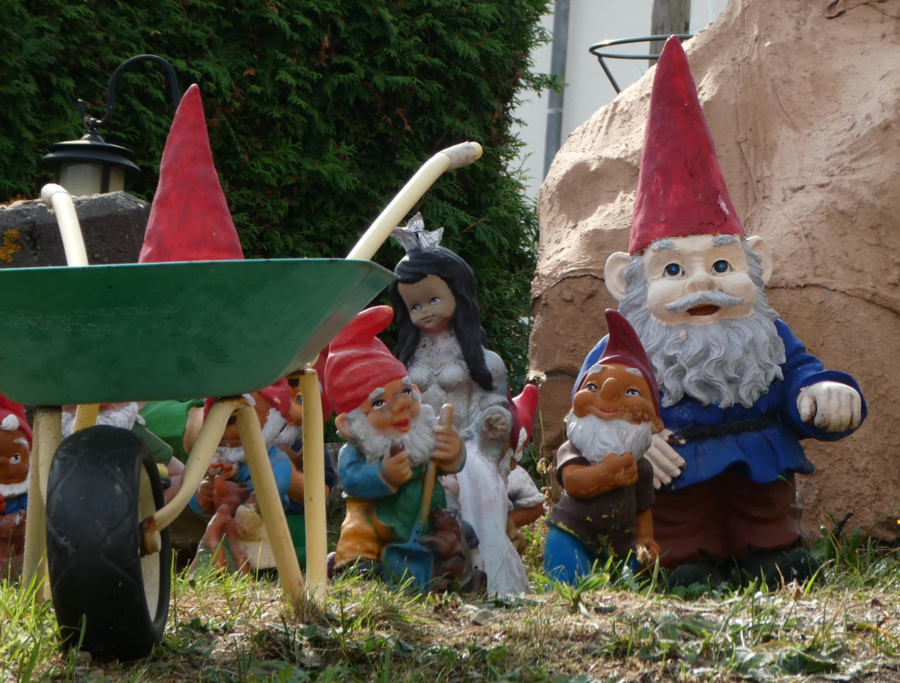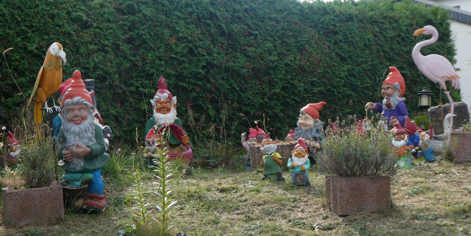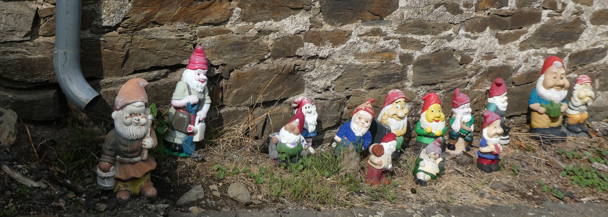 Aus den Wolken heraus geht es etwas später durch ein kleines Dorf, im Ortskern recht idyllisch – und unsere Entdeckerfahrt wird abgerundet durch etwas, das es so wohl nicht mehr so oft geben dürfte: Ein Garten voller Gartenzwerge.