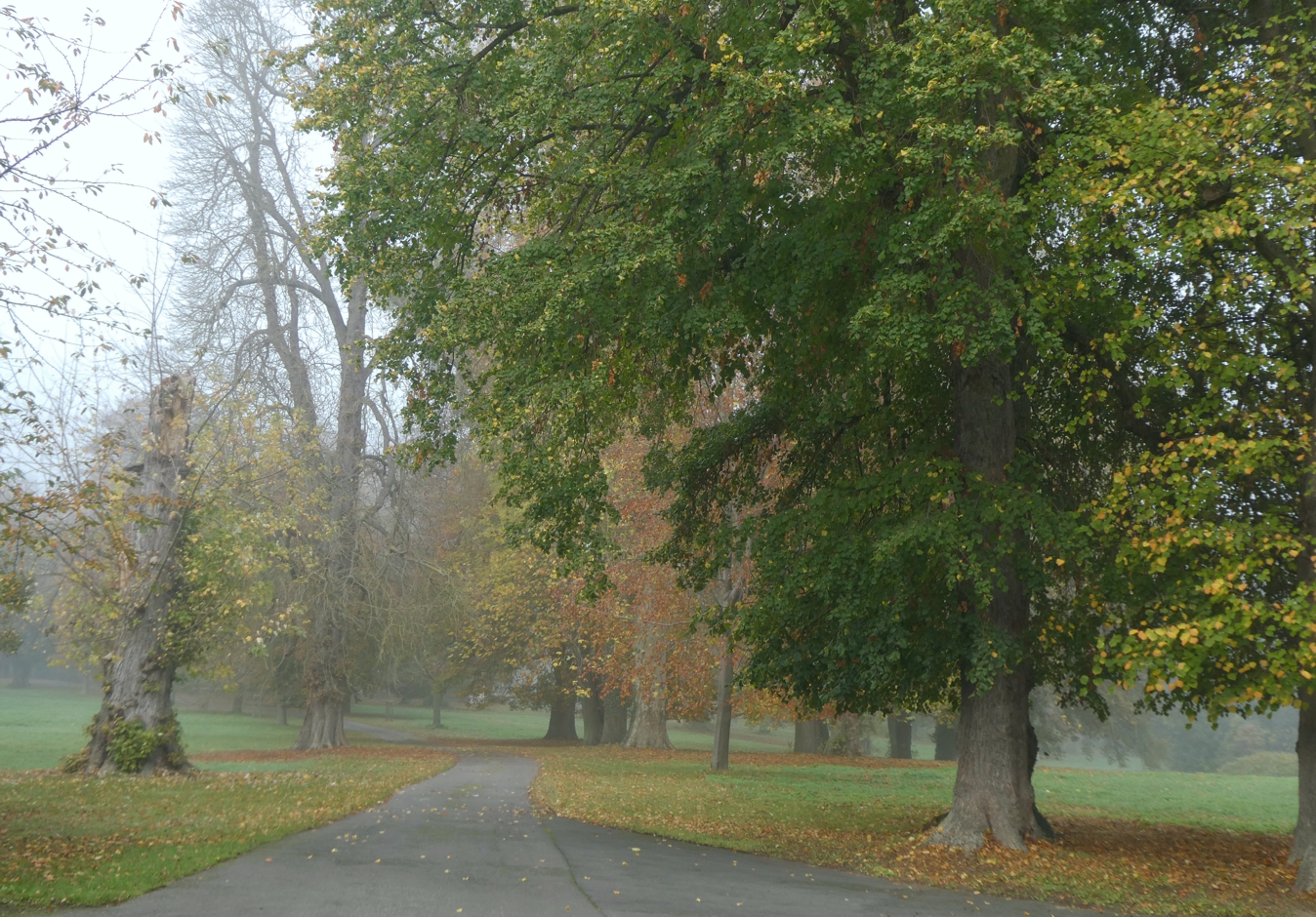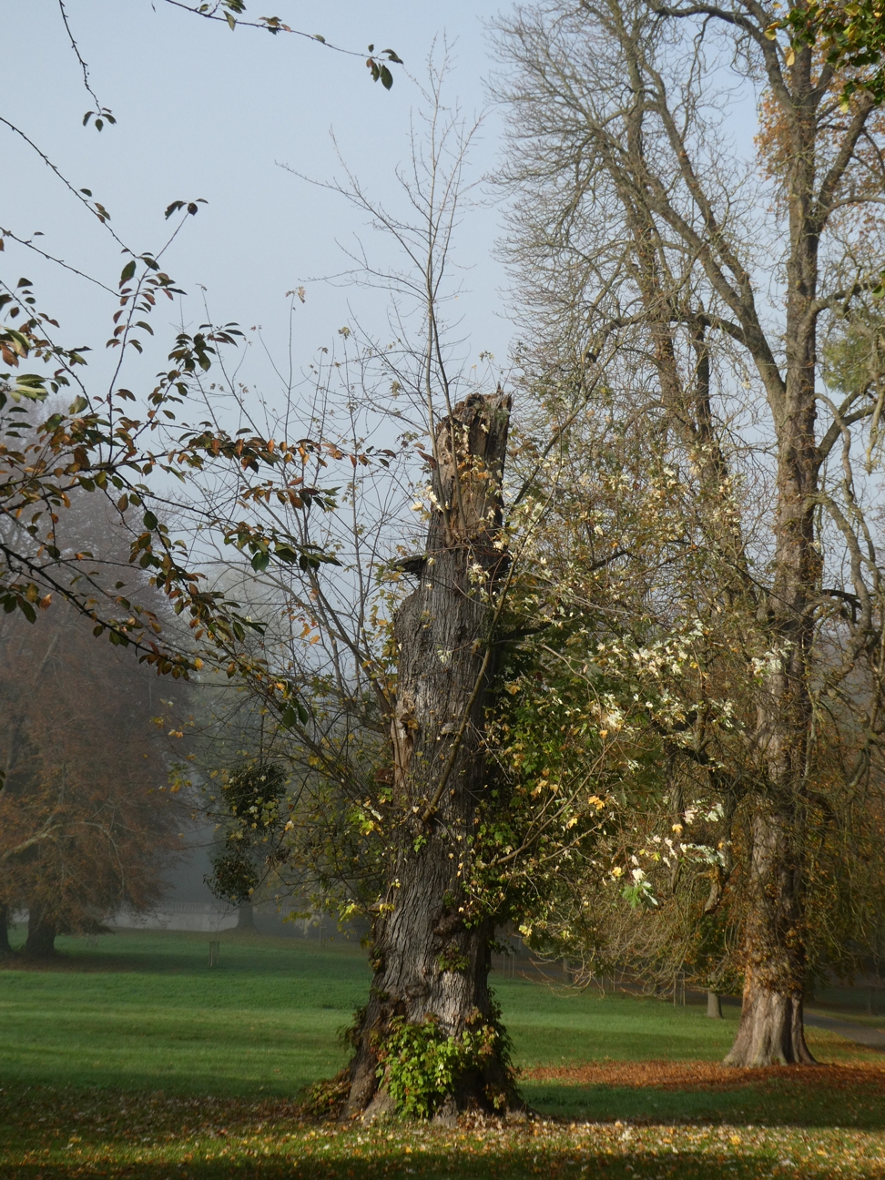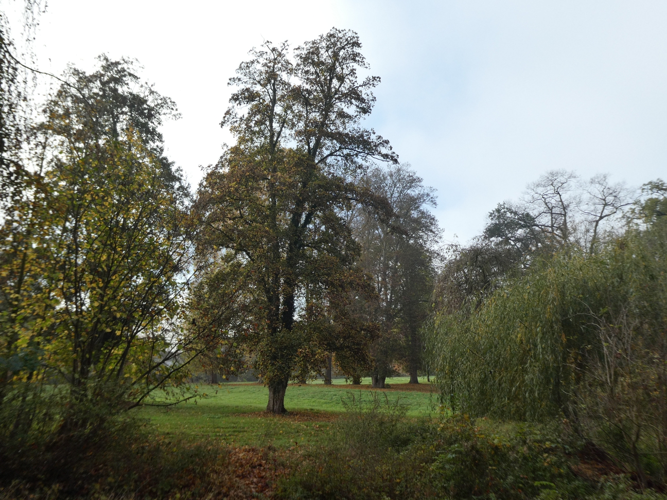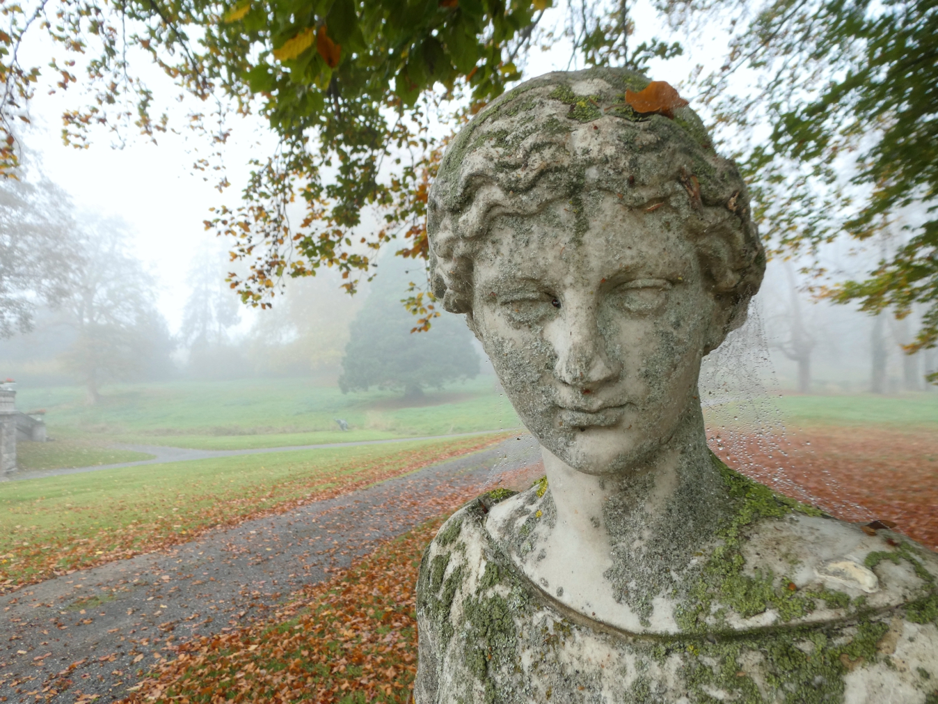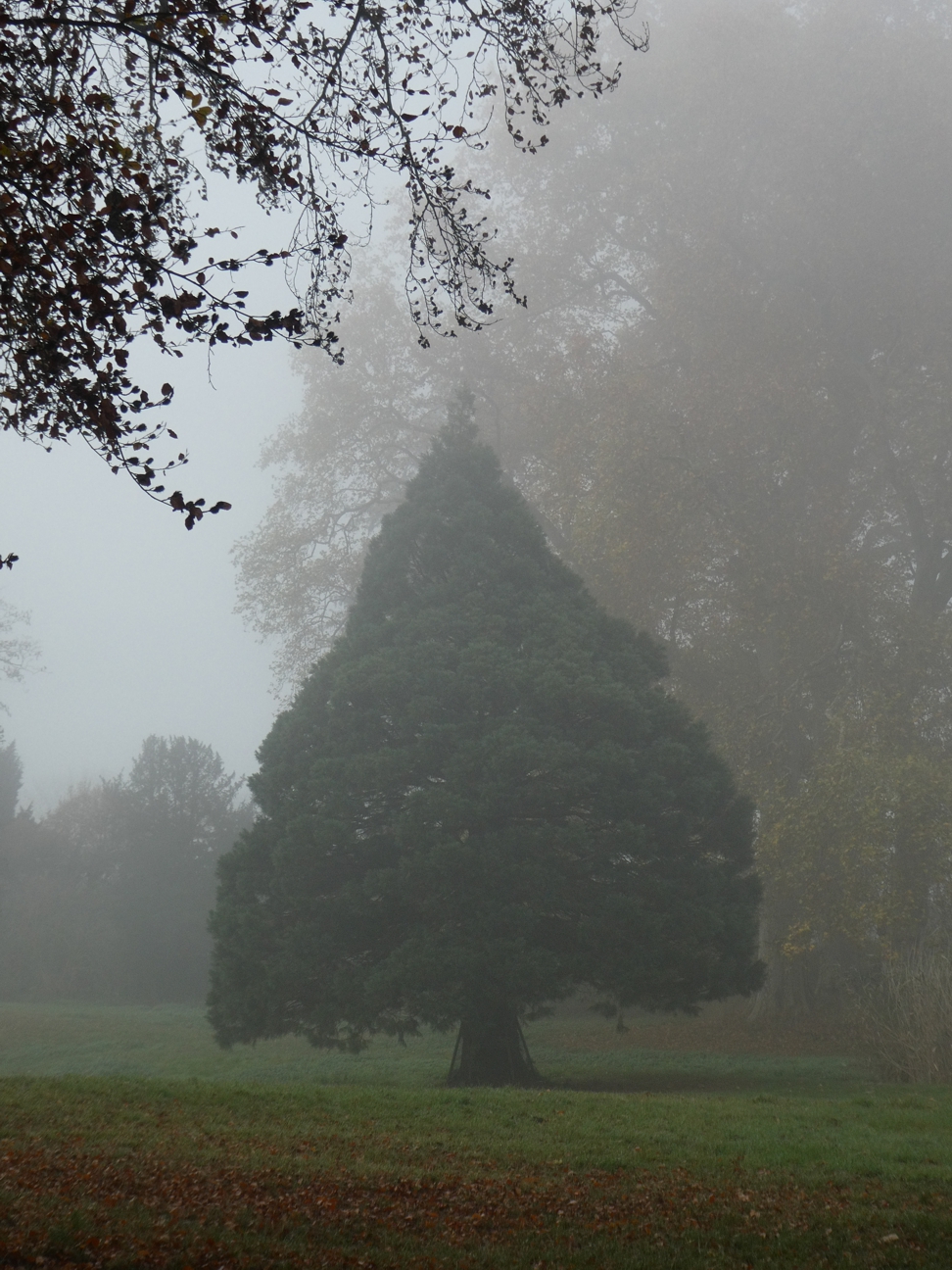 Unser Spaziergang durch den Park führt uns abseits der Wege; unsere Schuhe und Füße sind nach kurzer Zeit patschnass von den dicken Tau- und Nebeltropfen, die wie ein Teppich auf dem Gras liegen.