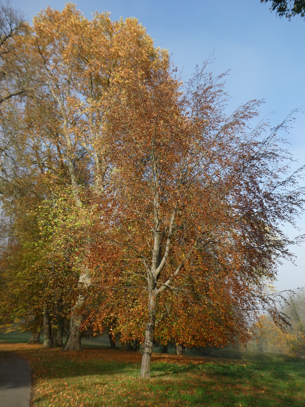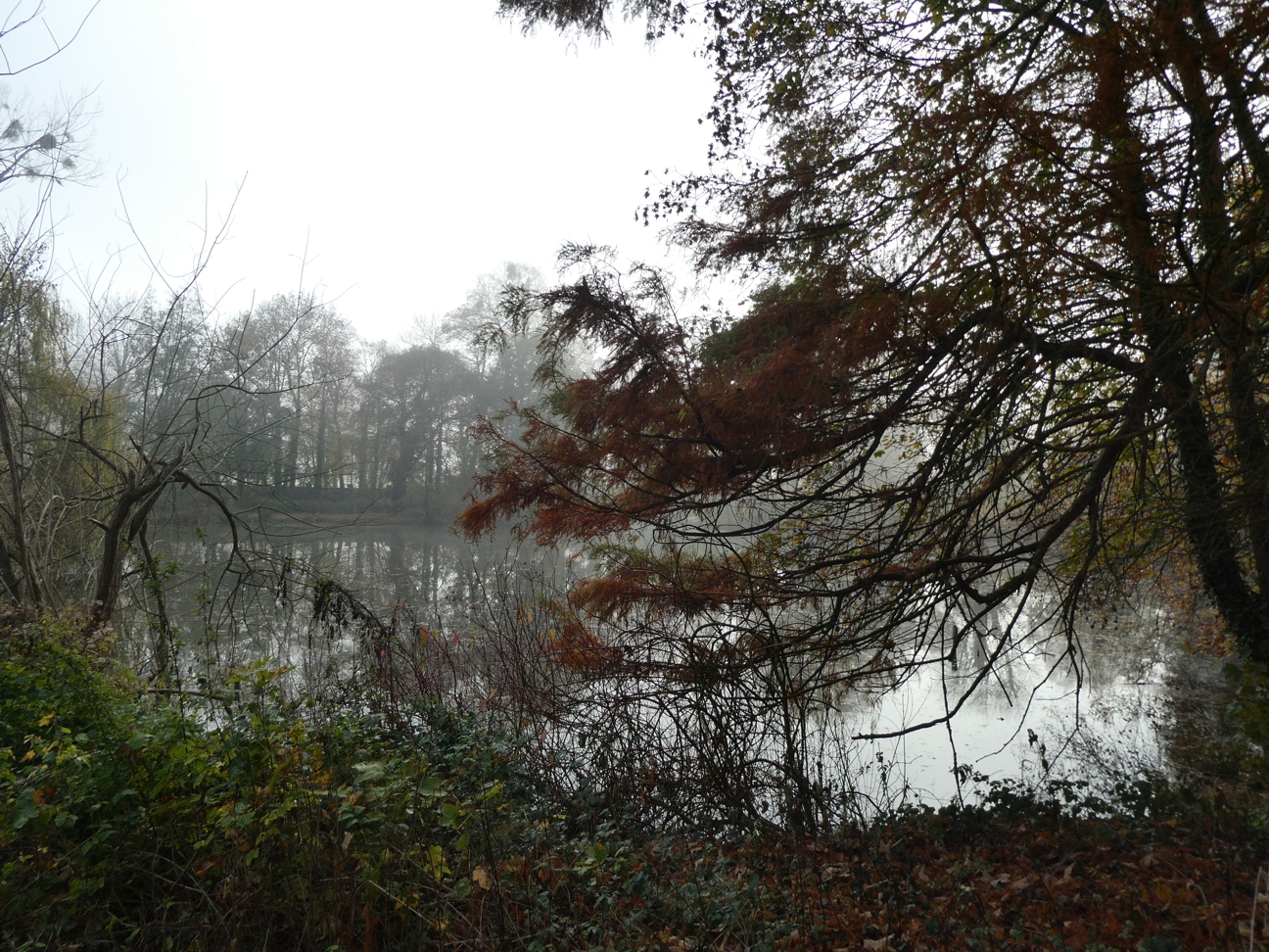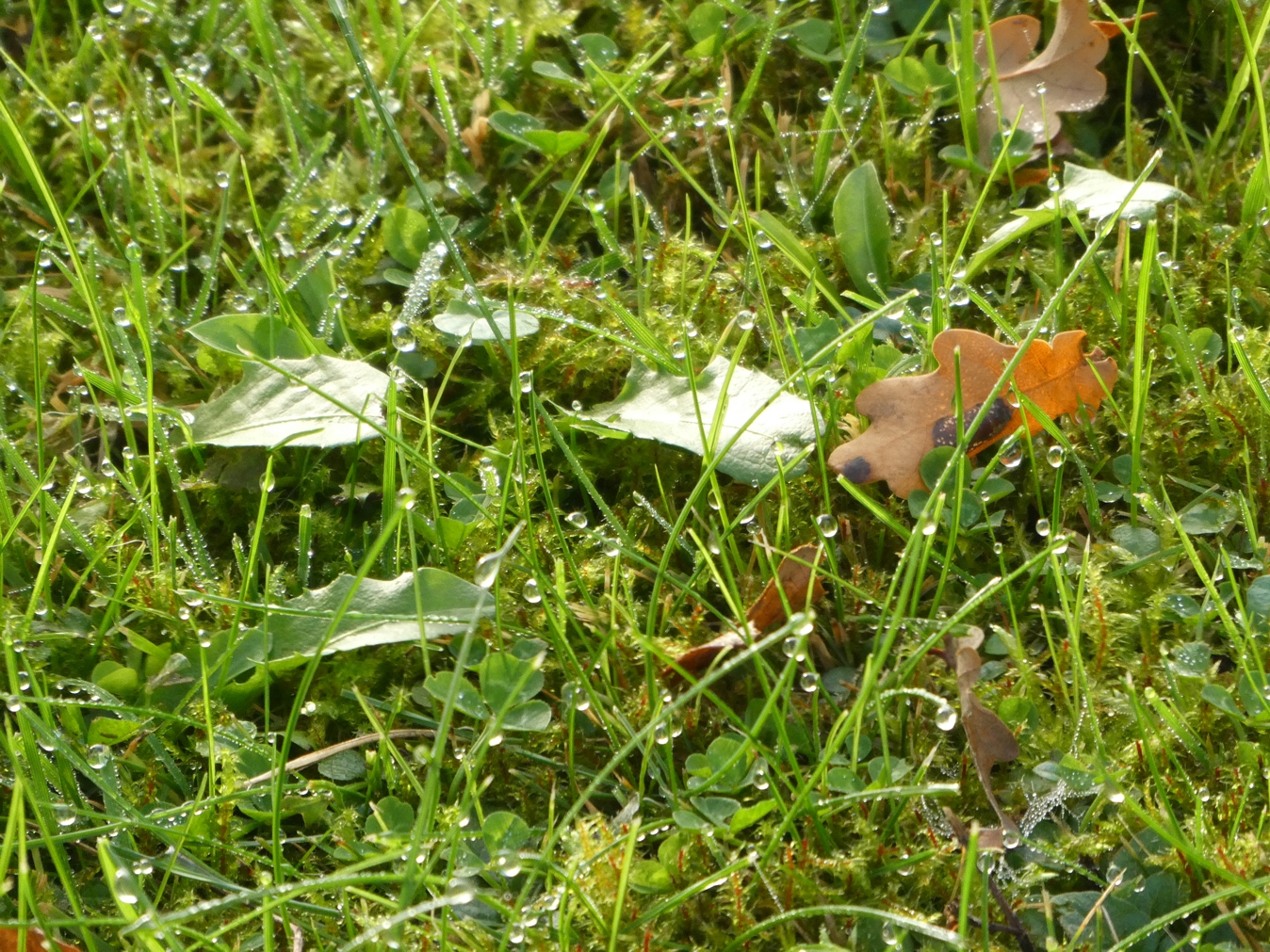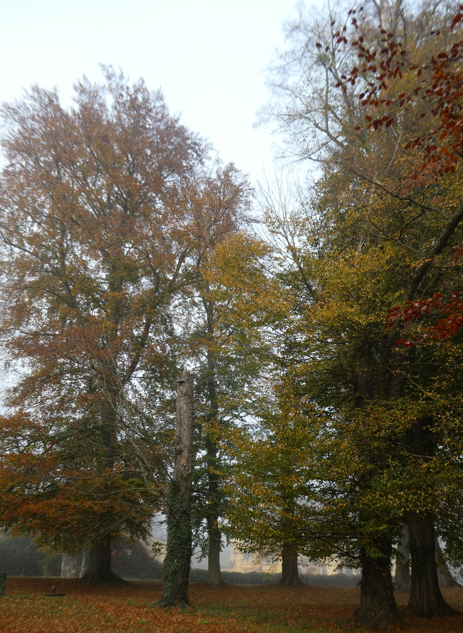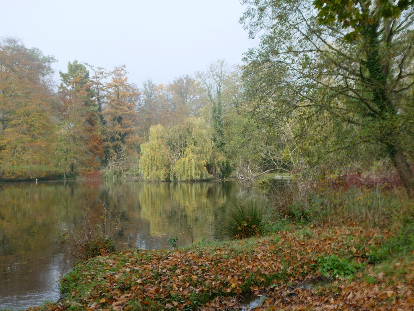 Unser Spaziergang durch den Park führt uns abseits der Wege; unsere Schuhe und Füße sind nach kurzer Zeit patschnass von den dicken Tau- und Nebeltropfen, die wie ein Teppich auf dem Gras liegen.