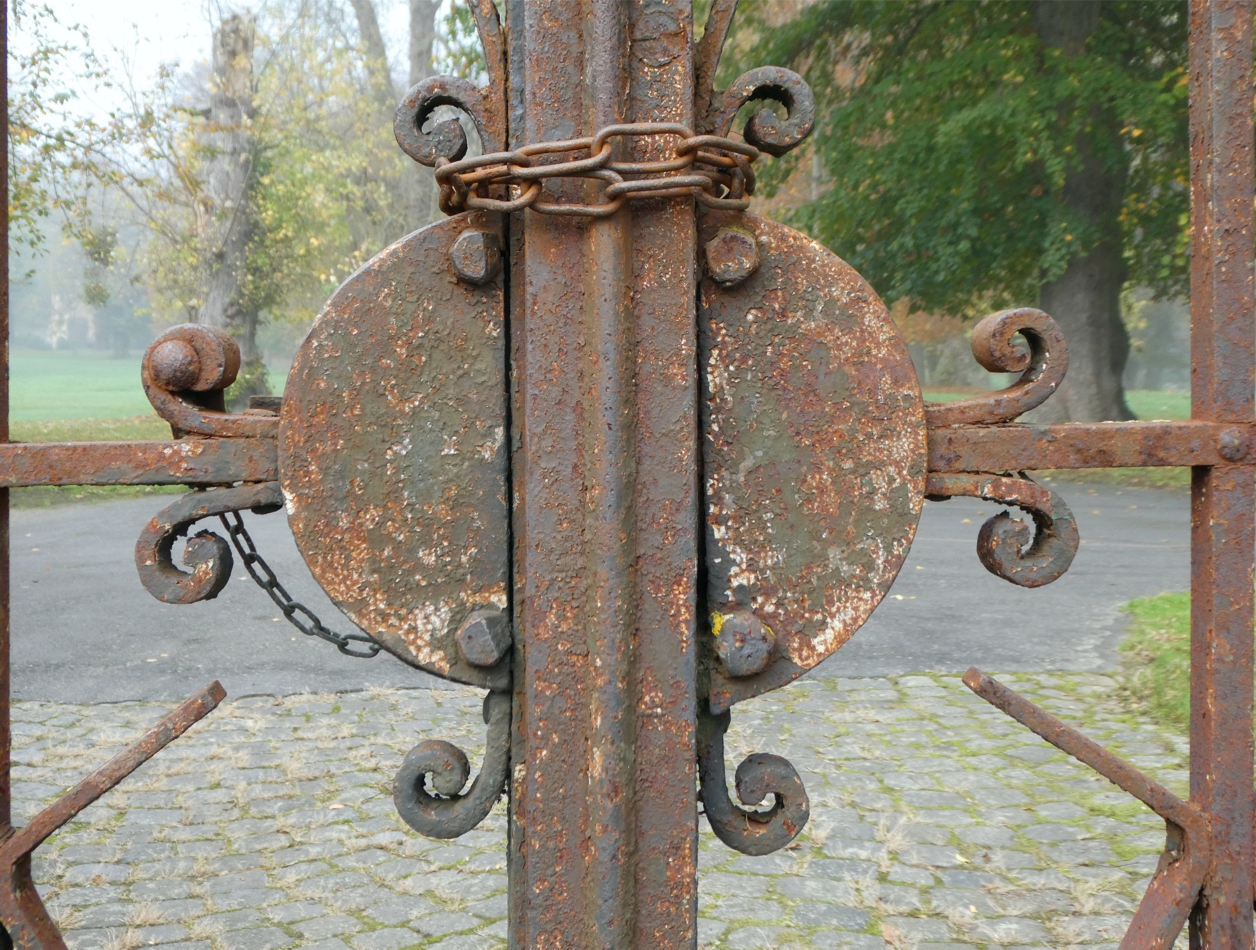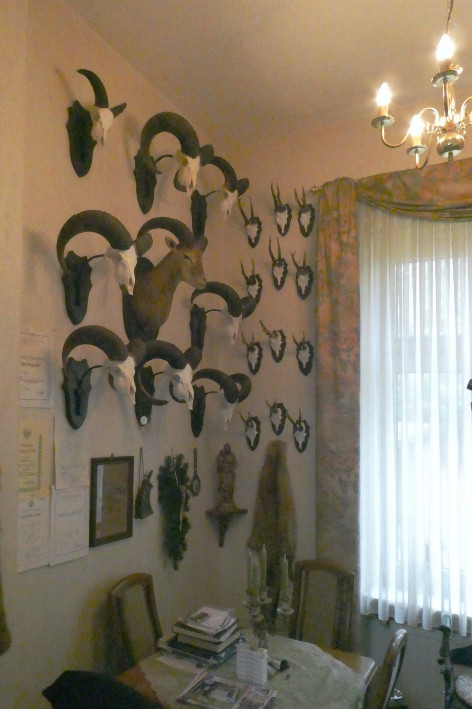 Warum auch immer – er findet den passenden Schlüssel zum Tor auch nach drei Anläufen nicht, bei denen er immer wieder ins Torhaus zurückkehrt. Nebenbei erwähnt er, dass er der Förster des Anwesens gewesen sei, und jetzt auf seine alten Tage hier im Torhaus wohnen würde – und dann werden wir eingeladen, ihn zu besuchen. Durch das Haupttor geht es schließlich hinein; wir fahren zum Torhaus, und freuen uns, ein paar Schritte zwischen den uralten Bäumen im Park gehen zu können. So recht wissen wir nicht, wie damit umzugehen – der ältere Herr lädt und ein, sein Jagdzimmer mit den Trophäen aus alten Zeiten anzusehen. So richtig entscheidungsfreudig sind wir nicht – schließlich kennen wir ihn ja erst seit einem kurzen Gespräch, und einfach so ins Wohnhaus? Aber ihm ist das wichtig, und wir tun einige Schritte ins Haus hinein.