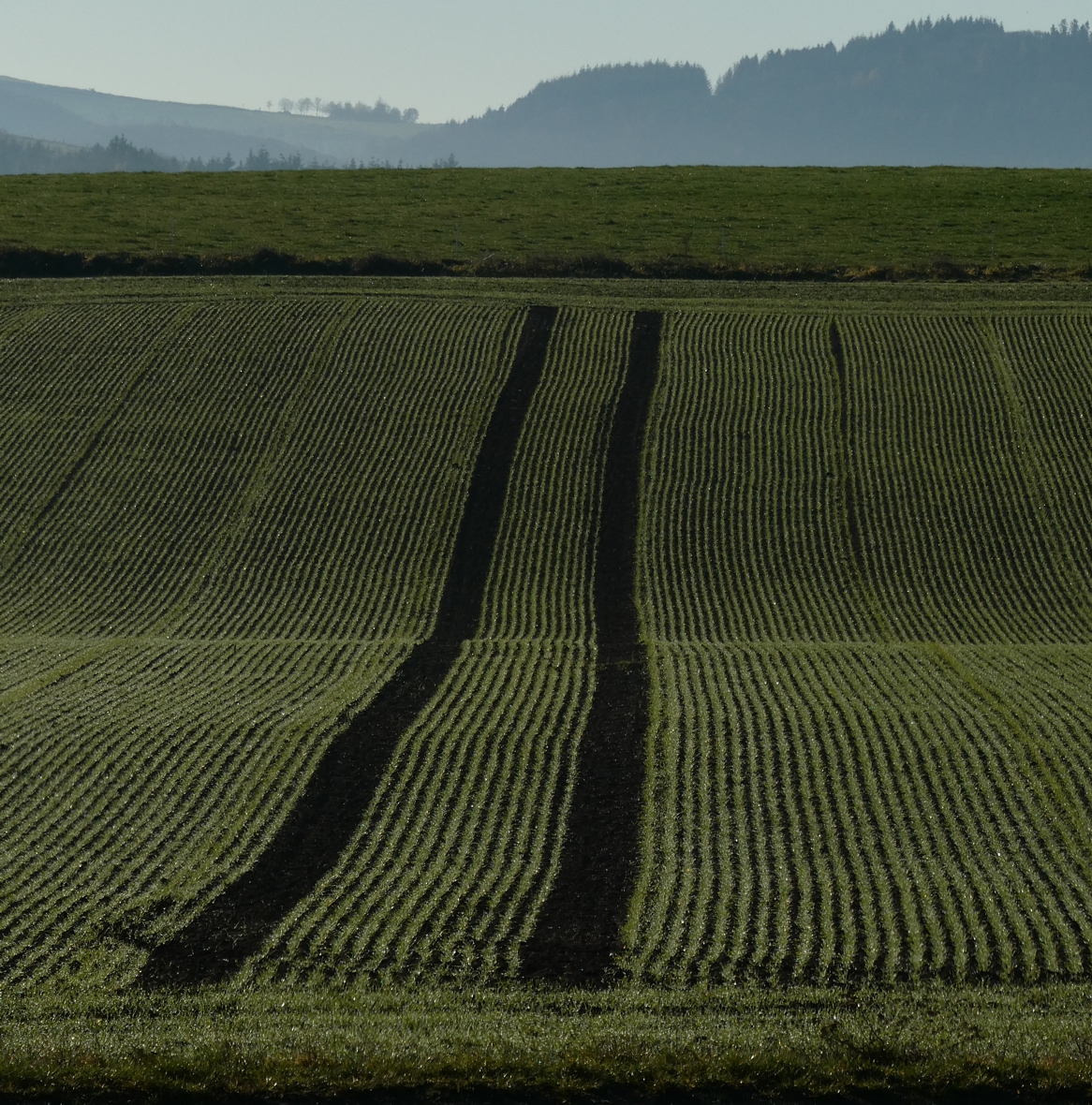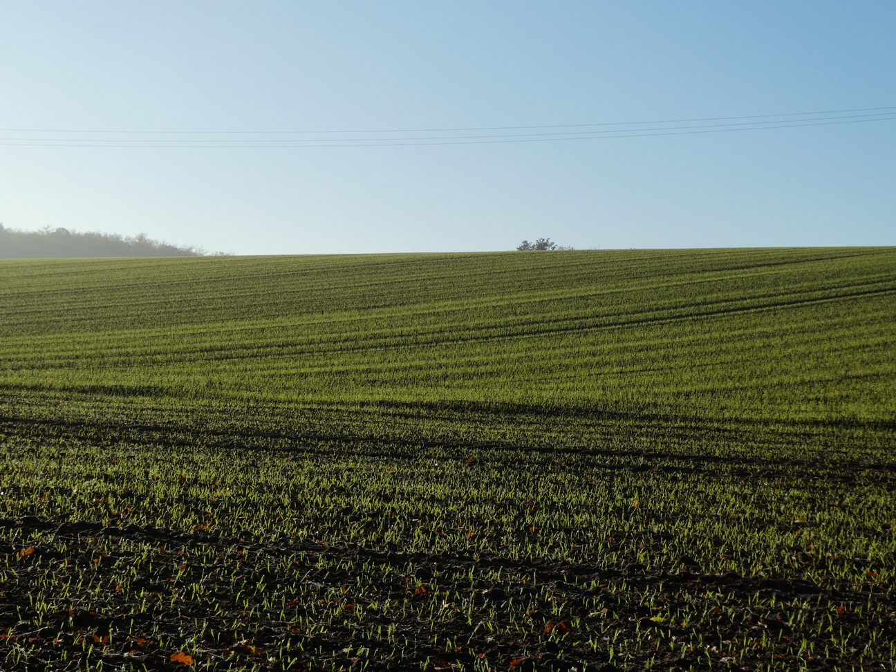Der Himmel ist schon kurz hinter Bassenheim strahlend blau. Schon nach kurzer Fahrt erwartet und ein weiteres optisches Erlebnis – gerade noch freuen wir uns über den schönen blauen Himmel, staunen über die intensiven grünen Farben von Wäldern und Wiesen, ebenso wie über die grün-braunen Farbkontraste, die die Felder mit dem gerade spießenden Wintergetreide bieten.