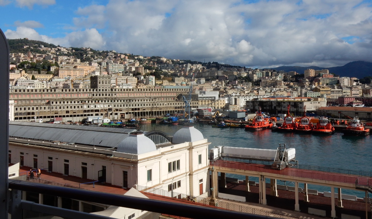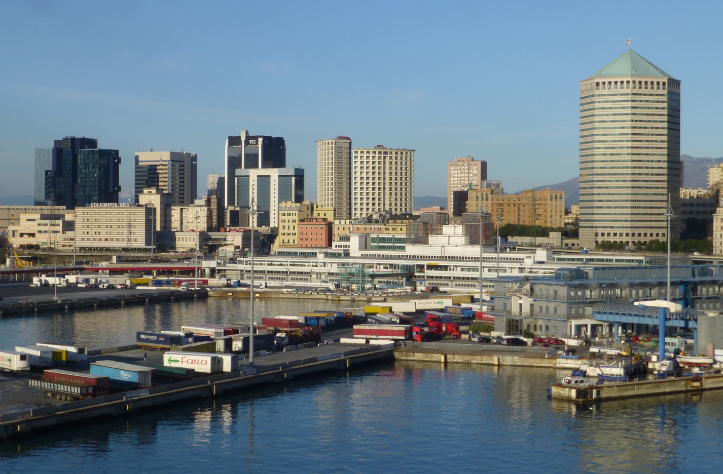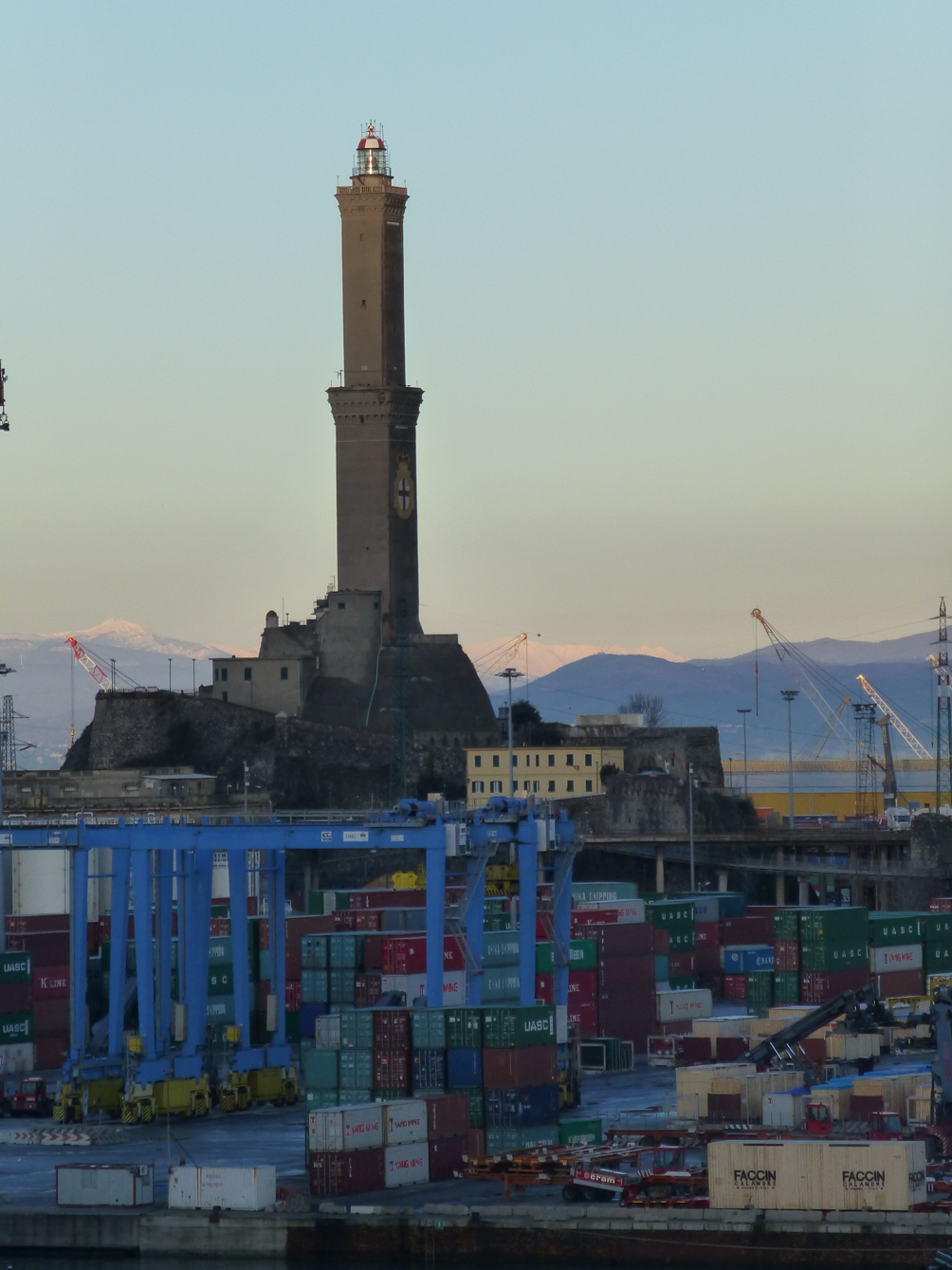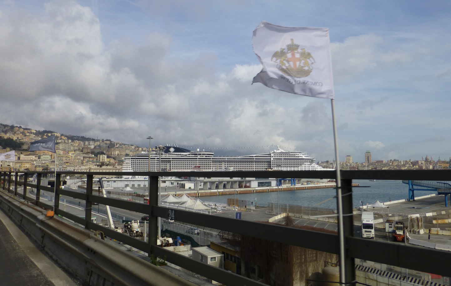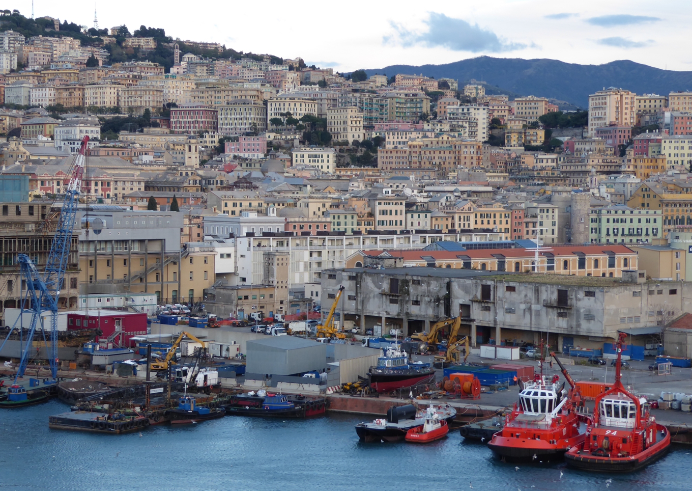 Genua hat den flächenmäßig größten Hafen Italiens – und doch gibt es hier einen entscheidenden Vorteil zu vielen anderen Häfen. Der Passagier- und Kreuzfahrtterminal liegt direkt an der Stadt, nicht weit entfernt vom Stadtleben, wie in so vielen Städten. Die Autobahn aus den Bergen hinunter in die Stadt führt auf die Stadtautobahn, ein wirklich hässliches Bauwerk auf Stelzen, das die Küste und damit auch den Hafen entlang verläuft, immer wieder mit Abfahrten, weniger in die Stadt hinein, mehr auf das Hafengelände.