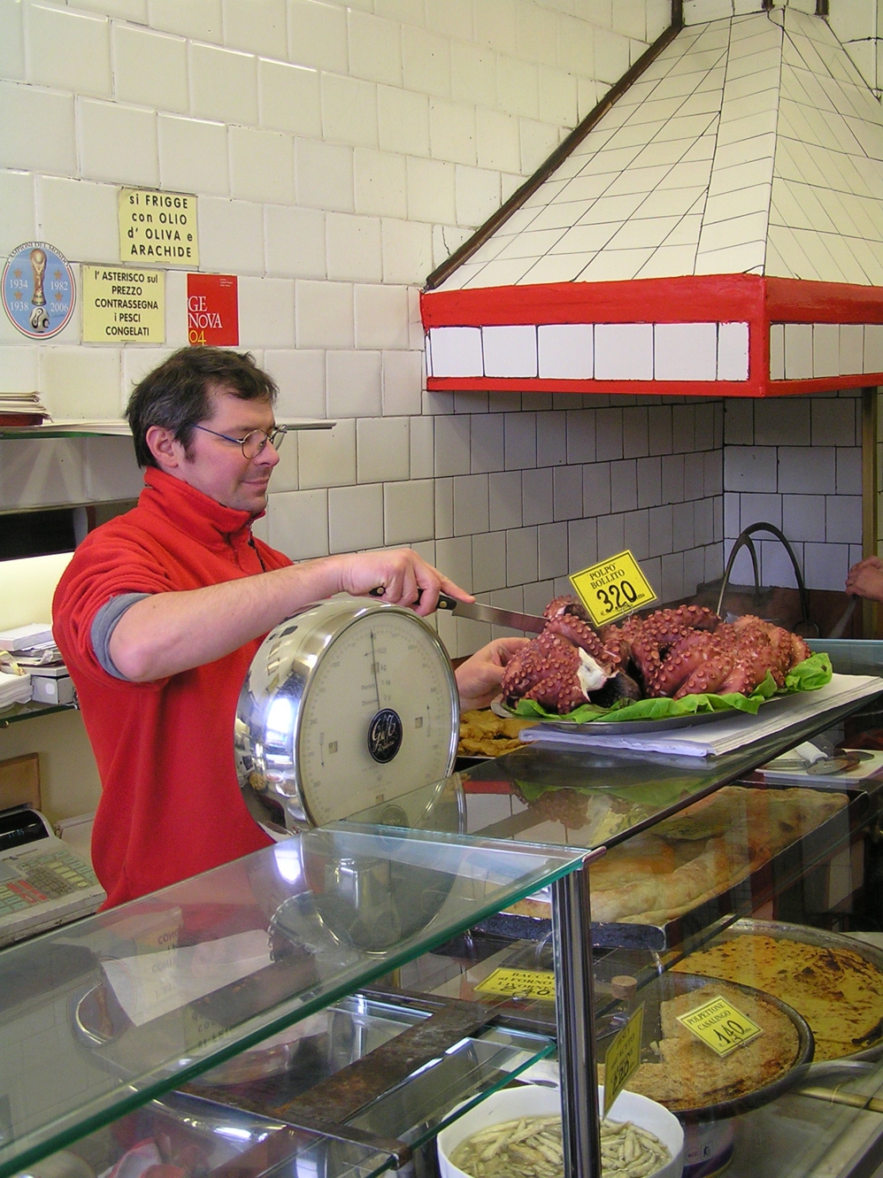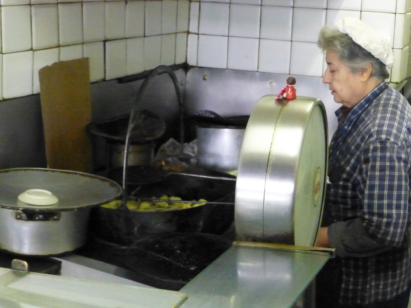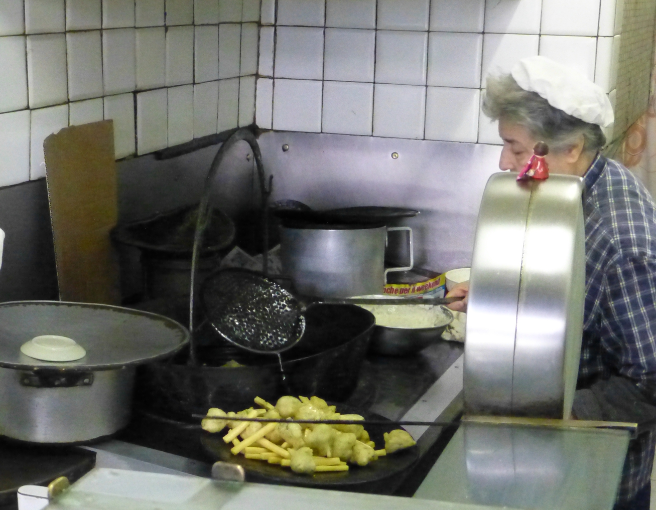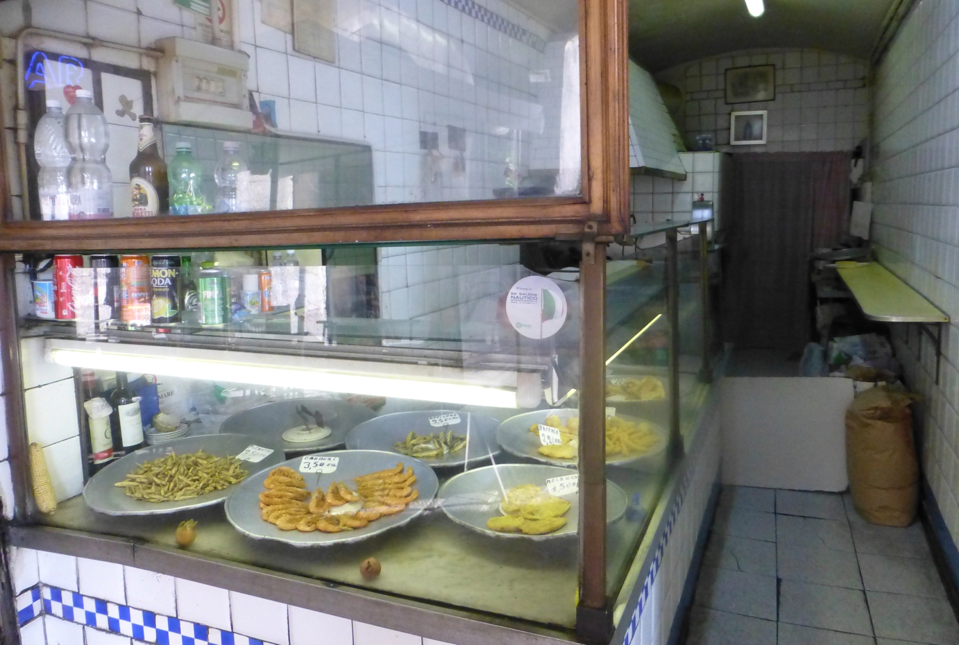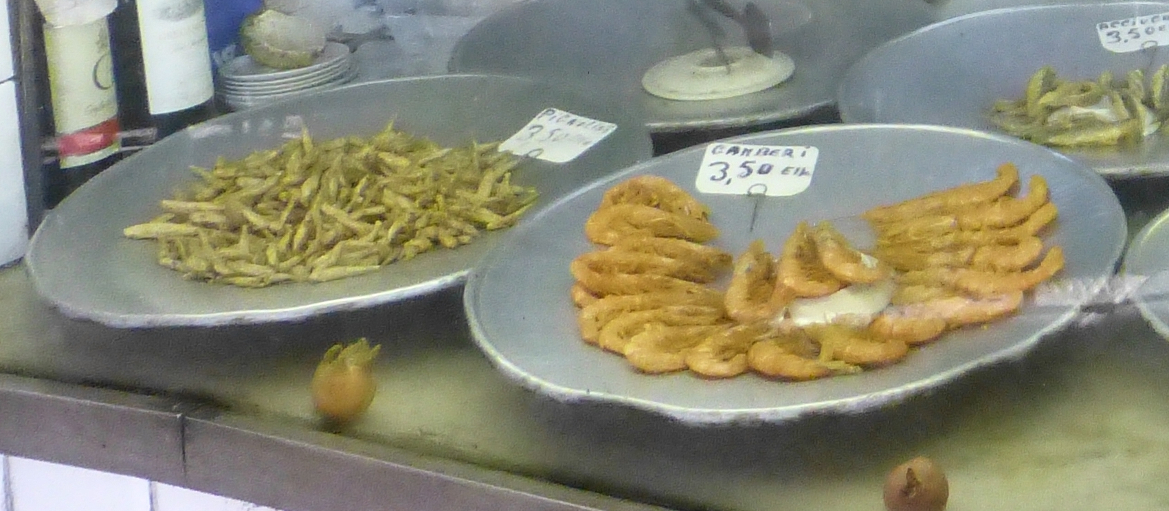 Unvergesslich ist zum Beispiel der enge Imbiss von zwei älteren Damen – sie frittieren frische Sardellen, Sardinen, Tintenfische oder auch mal Pommes, Gemüse und Teigknödel mit Peperoni drin in einer großen Wanne mit Olivenöl; wer bestellt, bekommt eine Tüte, die schnell aus einem Stück Papier gefaltet wird. Wir bestellen eine Portion gemischt; die Sardellen, die mit dabei sind, komplett von Kopf bis Schwanz, wie es sich gehört – und alles schmeckt hervorragend.