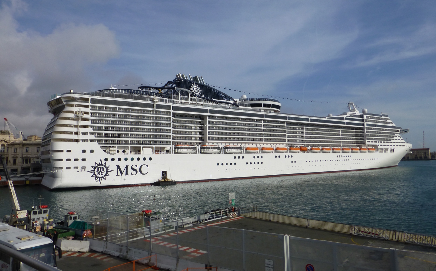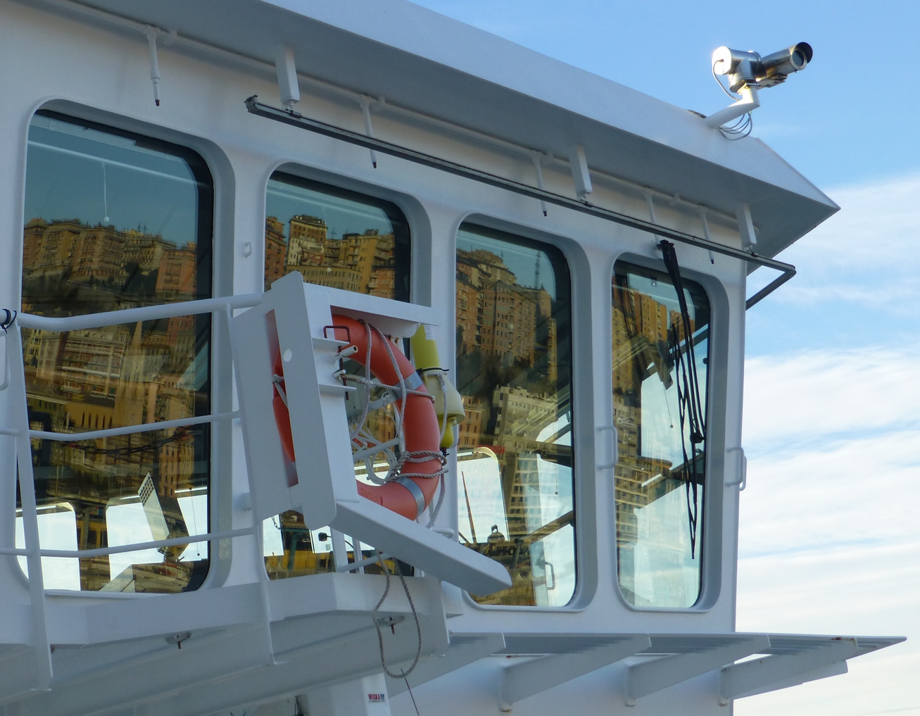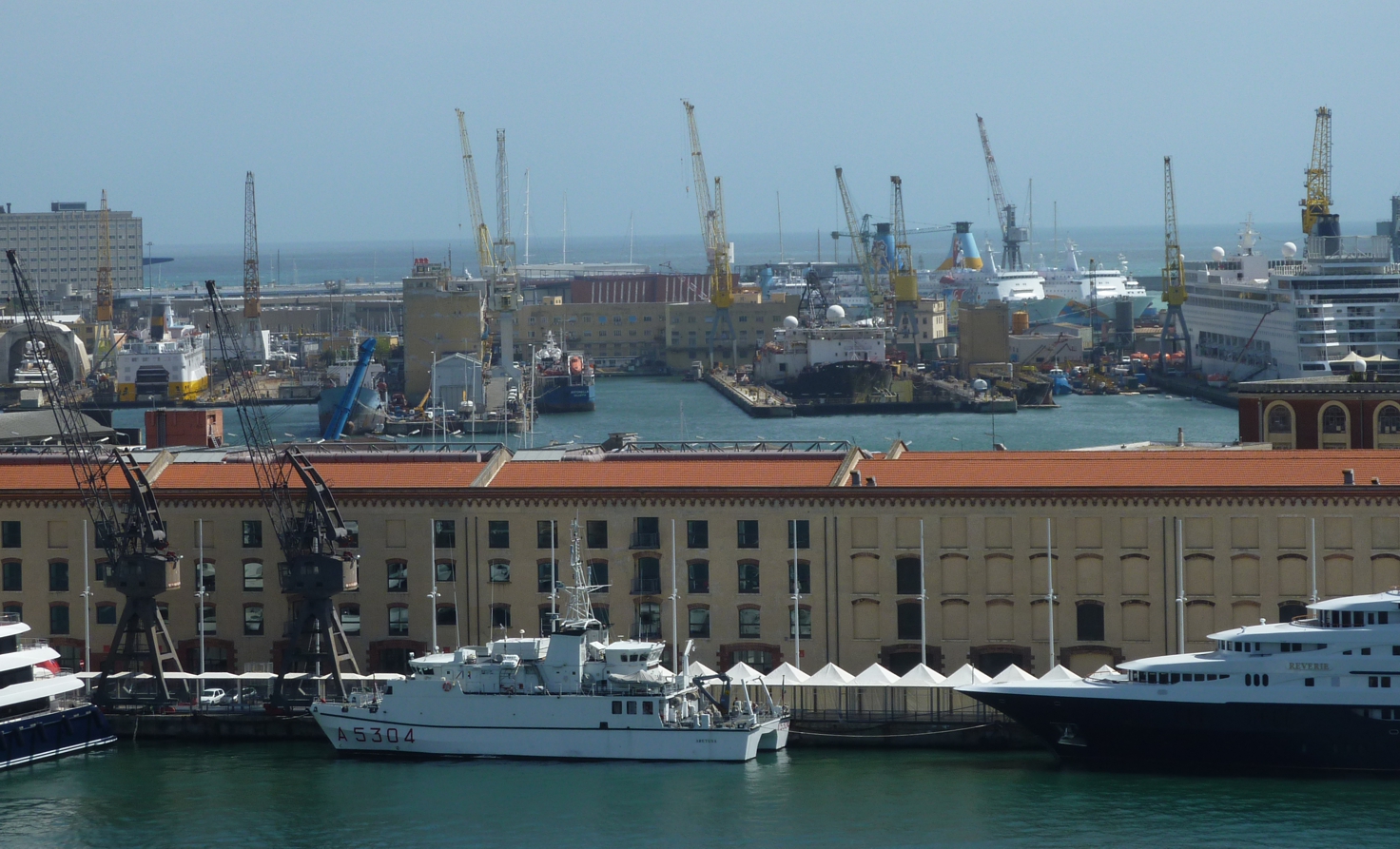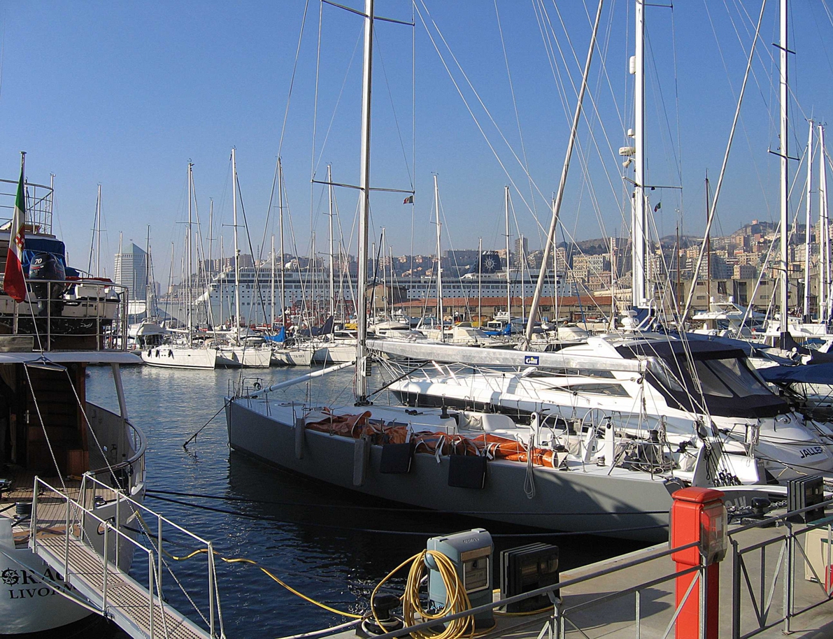Ziemlich imposant und die Szenerie dominierend liegen hier vor allem die ganz großen Kreuzfahrtschiffe, oftmals auch mehrere. Wer am Ponte dei Mille auf das Schiff geht, vergisst meist die Stadt, in der es losgeht – aber auch dann, wenn hier „nur“ der Start zu einer Kreuzfahrt ist, sollte man sich zuallererst einmal einen Überblick über die Stadt gönnen, vom höchsten Punkt aus, der auf dem Schiff erreichbar ist. Ist man nach dem Checkin erst auf einem der oberen Schiffsdecks angekommen, liegt die Stadt geradezu zu Füßen – so scheint es zumindest. Es zeigt sich ein Panorama-Rundumblick über die Bucht von Genua.
