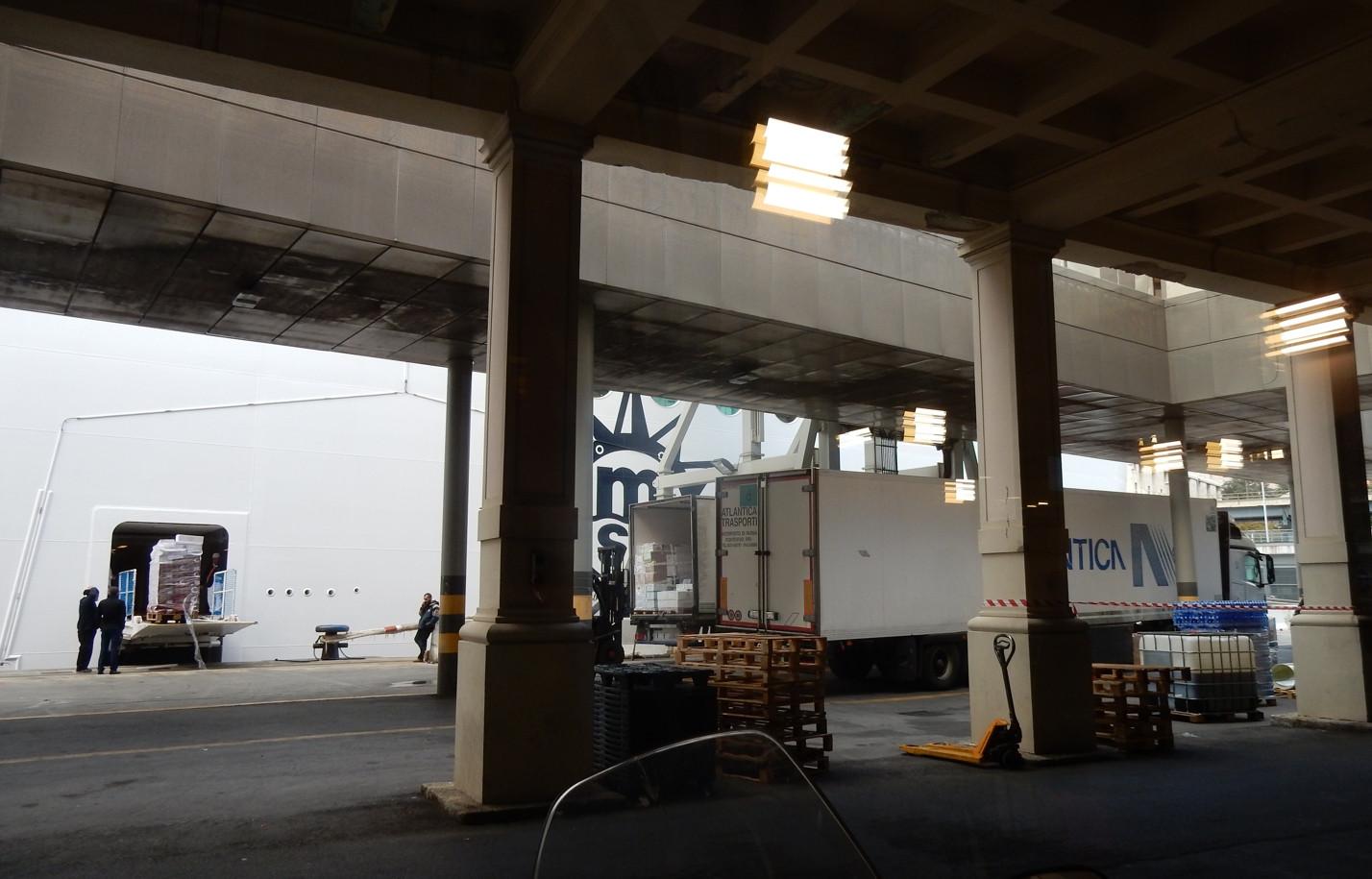 Durch viele Straßenwirrungen geht es zur Stazione Marittima; dort liegt der Ponte dei Mille, das alte Passagierterminal, in Grundzügen entstanden noch gegen Ende des 19. Jahrhunderts, seit 1930 nach Umbau und Erweiterung in der heutigen Form – und heute nicht mehr für Auswanderer und Passagierverkehr genutzt, sondern für Kreuzfahrtschiffe. Die Anfahrt zu einer Kreuzfahrt führt hier zunächst durch typische Hafenanlagen, danach sowohl durch Kellergewölbe als auch durch stilvolle Hallen der damals repräsentativen Industriearchitektur.