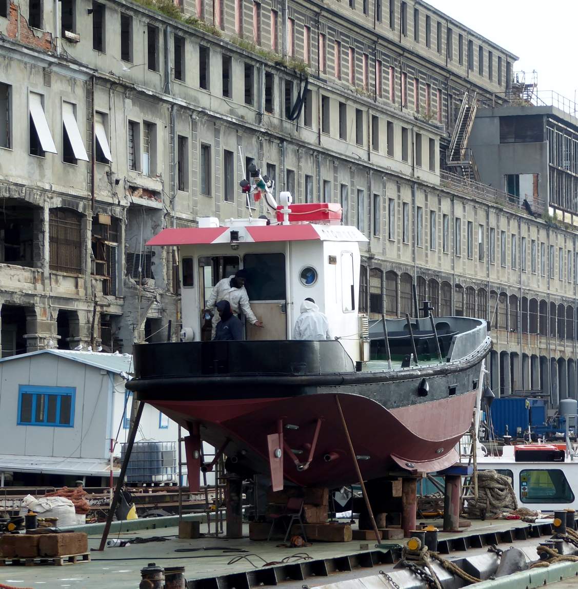 Direkt vom Schiff hinunter blickt man auf die Hafenanlagen, festgemacht ist das Schiff am früheren Passagier-, dem heutigen Kreuzfahrtterminal; etwas entfernt liegt der alte Hafen. Lässt man den Blick ein wenig weiter schweifen, sieht man nicht nur die Fähranleger, sondern auch die Werftanlagen, in denen Schiffe zur Überarbeitung liegen. Im Hintergrund ist der alte Hafenleuchtturm zu sehen – er kann besichtigt werden, aber wir haben es noch nicht geschafft, dies zu tun und den Turm zu besteigen, aber von dort oben soll es eine herrliche Aussicht über den Hafen und auf die Stadt geben.