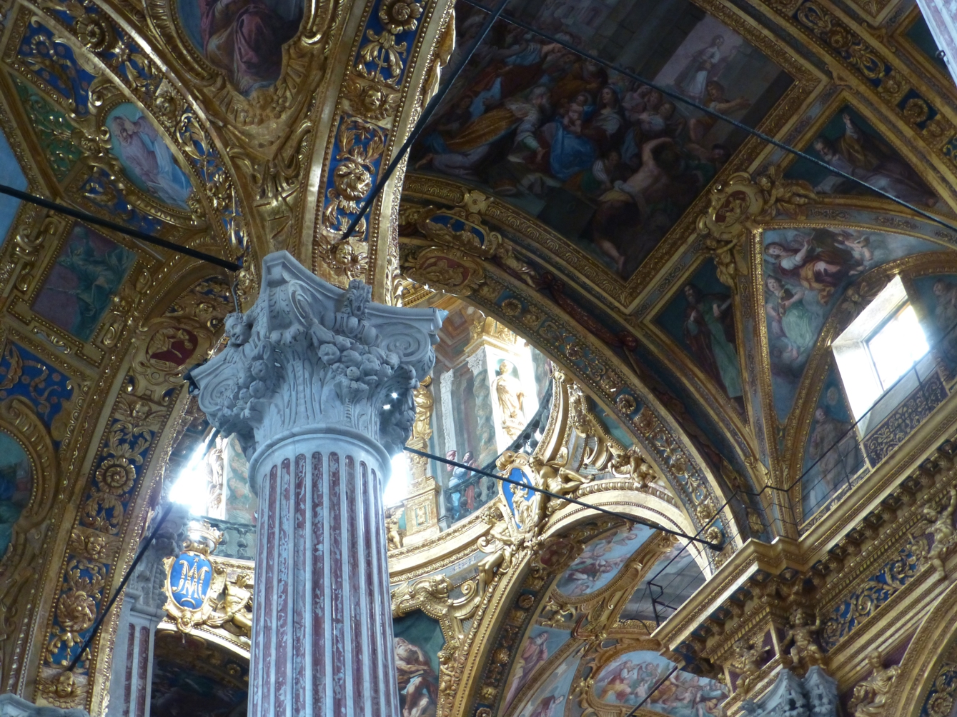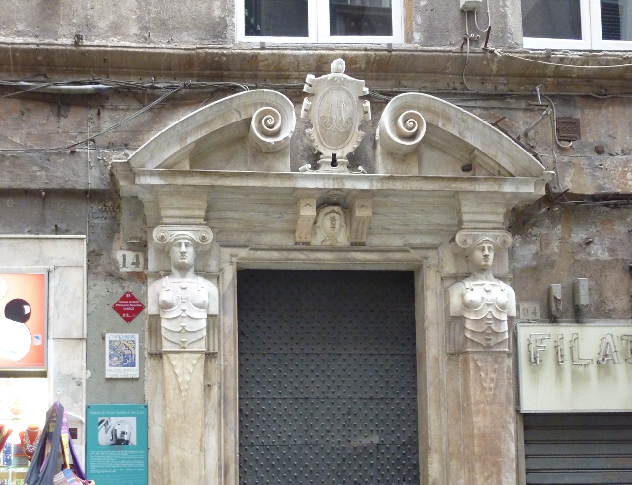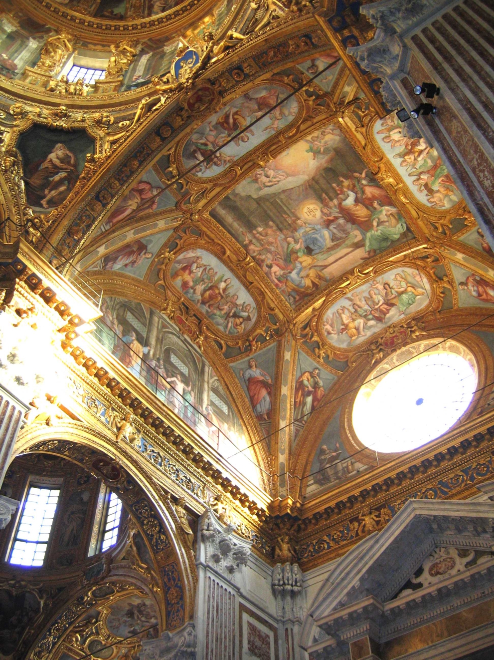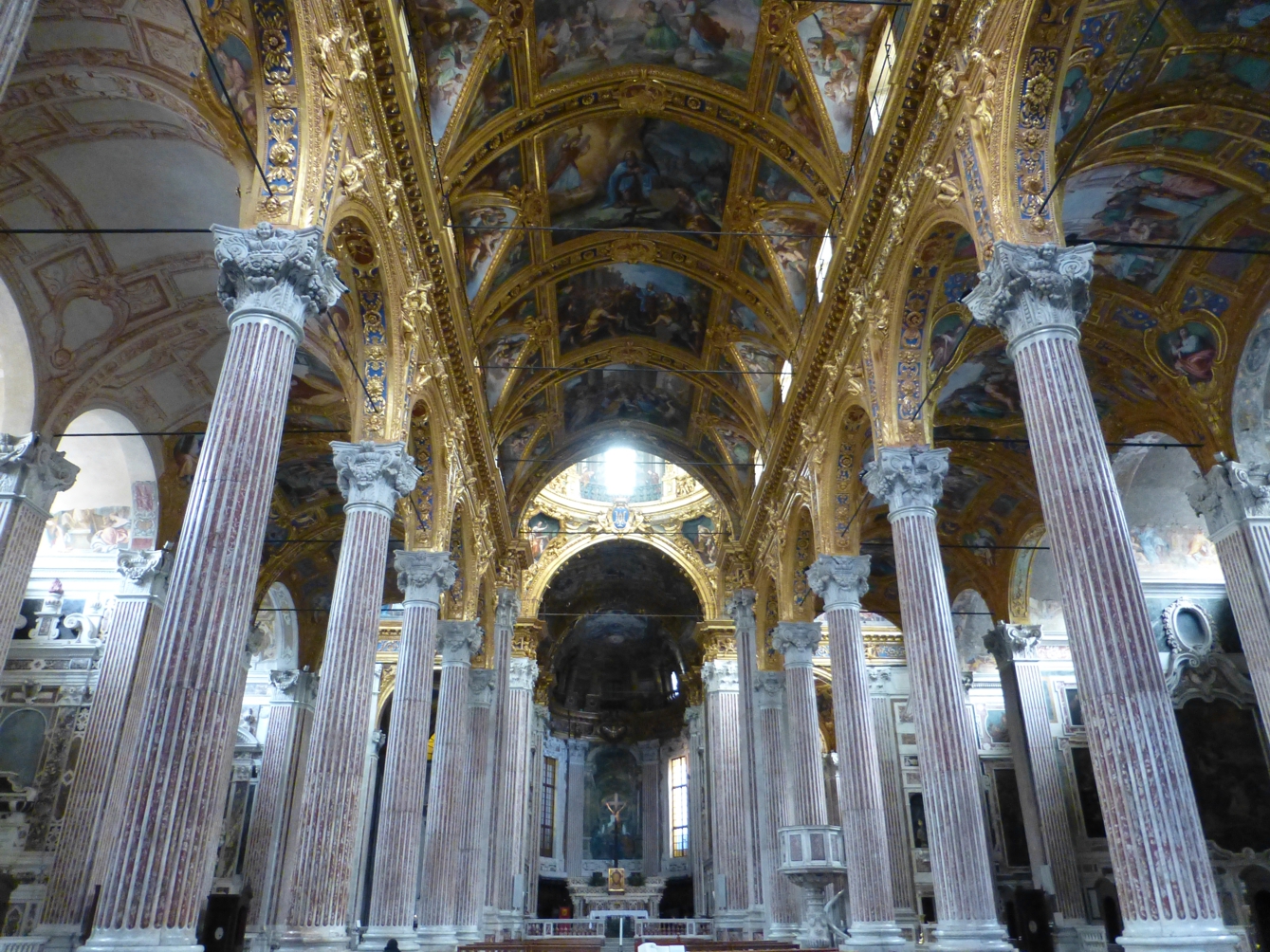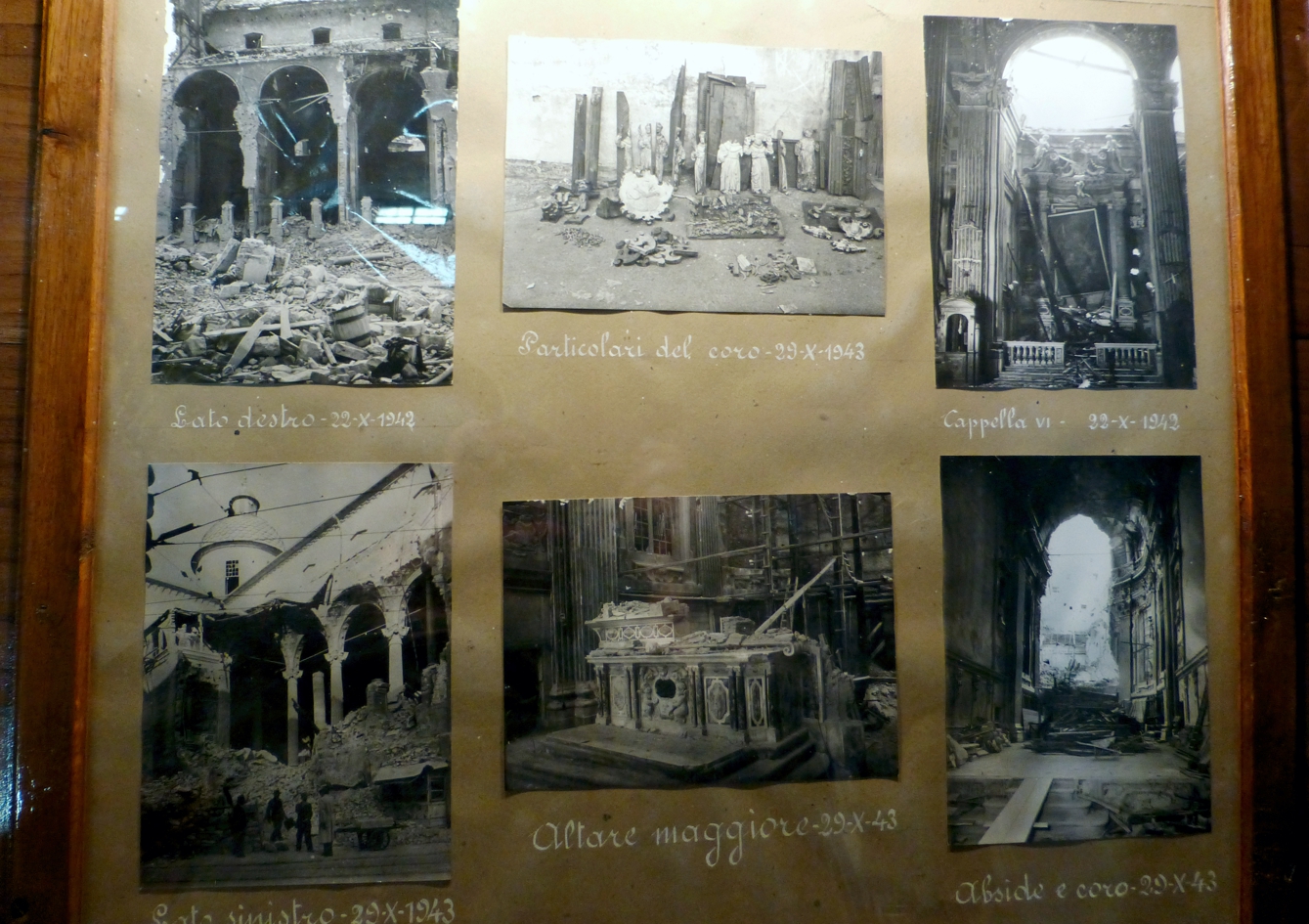 Direkt an der Straßenkreuzung, nach der es in die richtig alte Stadt hineingeht, steht die Kirche mit dem klingenden Namen Basilica della Santissima Annunziata del Vastato, ein Bauwerk aus dem Beginn des 16. Jahrhunderts, das die Barockzeit über sich ergehen lassen musste und nun mit goldenem Dekor und farbenprächtigen Fresken glänzt. Erstaunt ist man, wenn nach grandiosem Gesamteindruck im Seitenschiff eine Fotodokumentation entdeckt und feststellen muss, dass all das, was zu sehen ist, ziemlich neu geschaffen wurde – bei Bombenangriffen der Alliierten auf Italien, das damals als faschistischer Staat auf der Seite der deutschen Nationalsozialisten Krieg führte, wurde 1942 und 1943 die Kirche weitgehend zerstört.