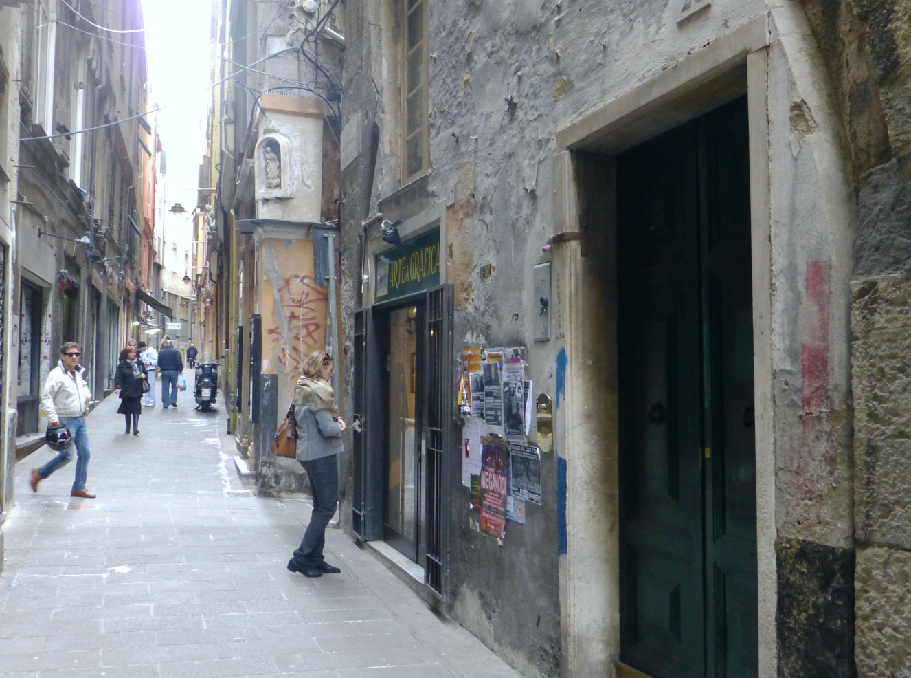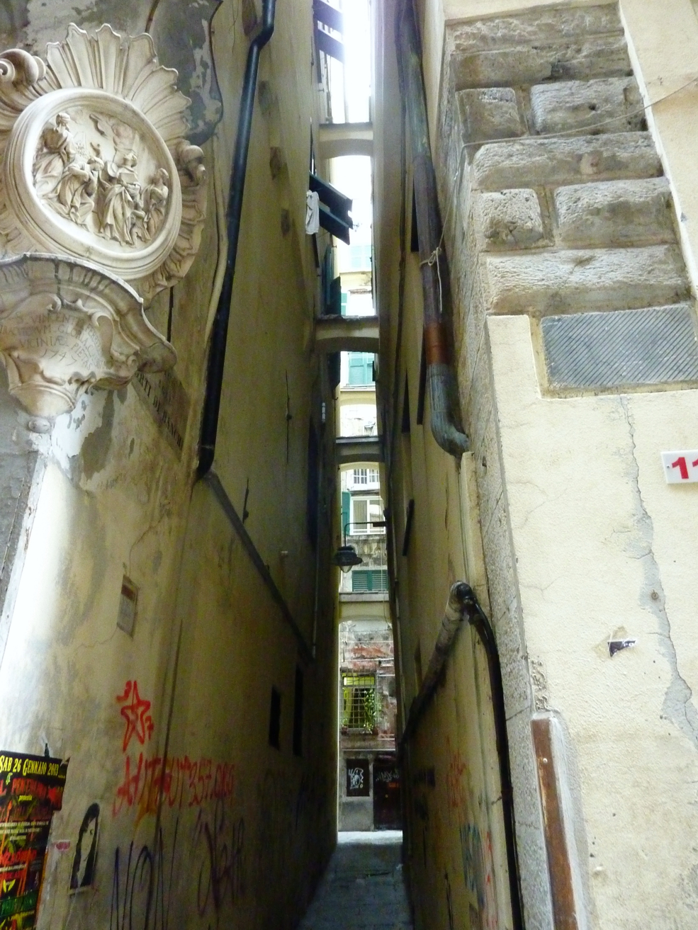Vom Ponte dei Mille, an dem die Kreuzfahrtschiffe in Genua liegen, geht es am Alten Hafen vorbei, unter der Stadtautobahn hindurch, direkt in die Altstadt, hinein in die unzähligen kleinen engen Gassen, mitten in das aus unserer Sicht ziemlich chaotische Durcheinander von Häusern – anscheinend, ohne den Orientierungssinn ein wenig einzuschalten.