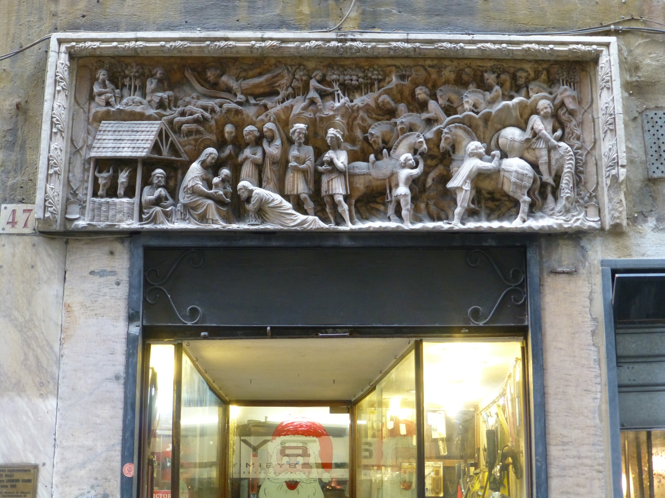 So ein wenig pflichtbewusst geht der Blick immer wieder die Fassaden hoch; immer mal wieder ist eine Heiligenfigur zu sehen. Weniger kunsthistorisch, eher vom Lebensalltag geprägt sind die Ladenschilder, und immer wieder ist ein kunstvoll geschmiedetes Gitter an einer Eingangstür oder an einem Fenster zu entdecken.