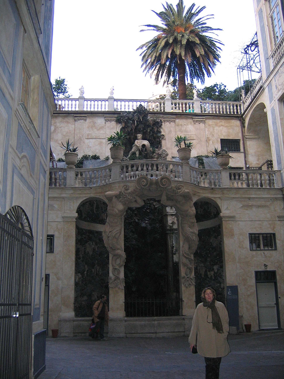 An dieser Straße liegt der Palazzo Royale, ein Palast aus dem beginnenden 17. Jahrhundert, gebaut von einer Genueser Patrizierfamilie. Anfang des 19. Jahrhunderts wurde er zum königlichen Palast des Hauses Savoyen; es entstanden Thronsaal, Audienzraum und Ballsaal . Die Zeit, uns in diesem Palast umzusehen, haben wir uns leider noch nicht genommen. Das Gebäude ist mittlerweile Museum. In den Sälen ist das Mobiliar aus den vergangenen Jahrhunderten noch weitgehend erhalten, Wände und Decken tragen Fresken bedeutender Künstler, und am Palast schlendert man durch eine beeindruckende Gartenanlage. Eine ähnliche Gartenanlage hatten wir ja vom Schiff aus gesehen, den Garten der Villa Principe.