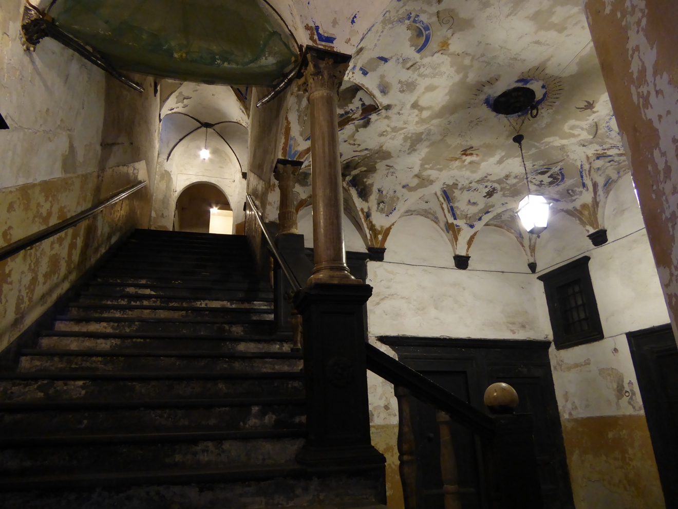 Auf und ab gehen wir die Straße, beeindruckt von den mächtigen Fassaden. Immer wieder ist es möglich, durch Tore und Eingänge einen Blick hinein in die Innenhöfe zu werfen, wo mehretagige Galeriegänge oder Gartenanlagen mit Skulpturen und Brunnenanlagen zu sehen sind. Und zwischen diesen Bauwerken oder in deren Erdgeschoss eine bunte Mischung – Cafés, Pizzerias, Konditoreien, ein Friseur, Lebensmittelläden, eine Metzgerei, eine Bar und mehr.