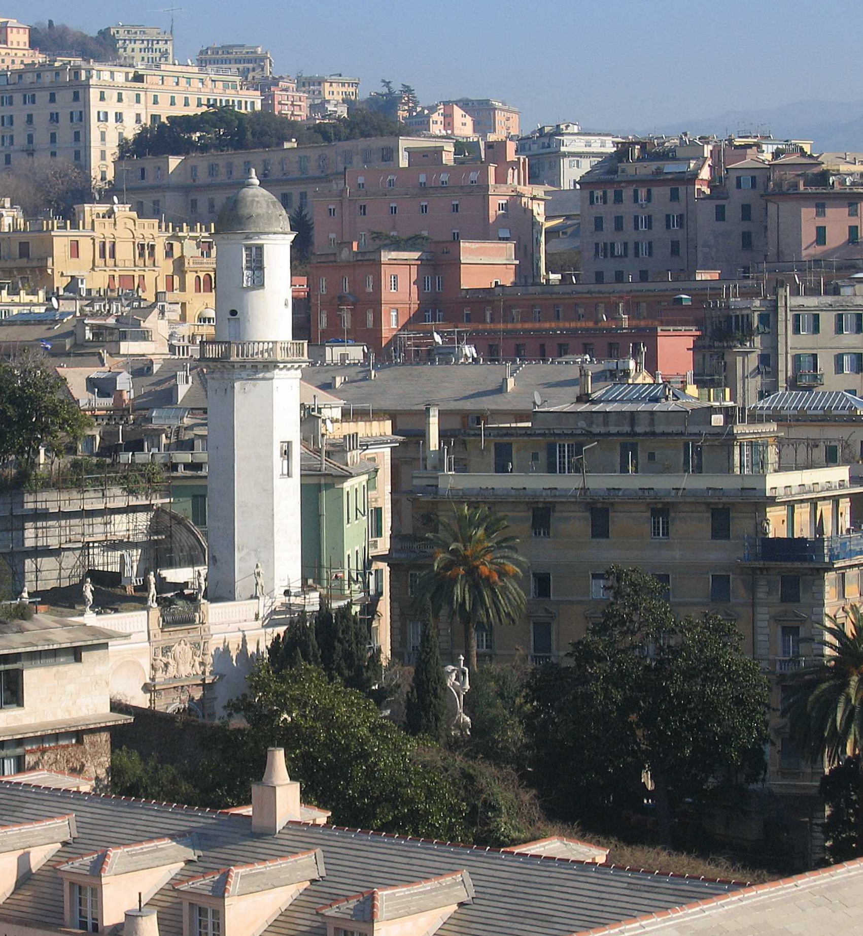 Zwischendurch heißt es noch, die Aussicht genießen. Wir sind angekommen am Palazzo Rosso. So richtig auf Museum haben wir keine Lust, aber wir entdecken einen Seiteneingang, der hinauf auf das Dach führt, bis ganz hinauf auf den Dachfirst. Von hoch oben hat man einen Rundumblick – auf die Straßen, Gassen und Plätze rundum, über die Dächer hinweg, auf den Hafen hinunter und ziemlich weit die Küste entlang. Am Ponte dei Mille liegt das Schiff, mit dem wir auch auf Fahrt gehen werden.