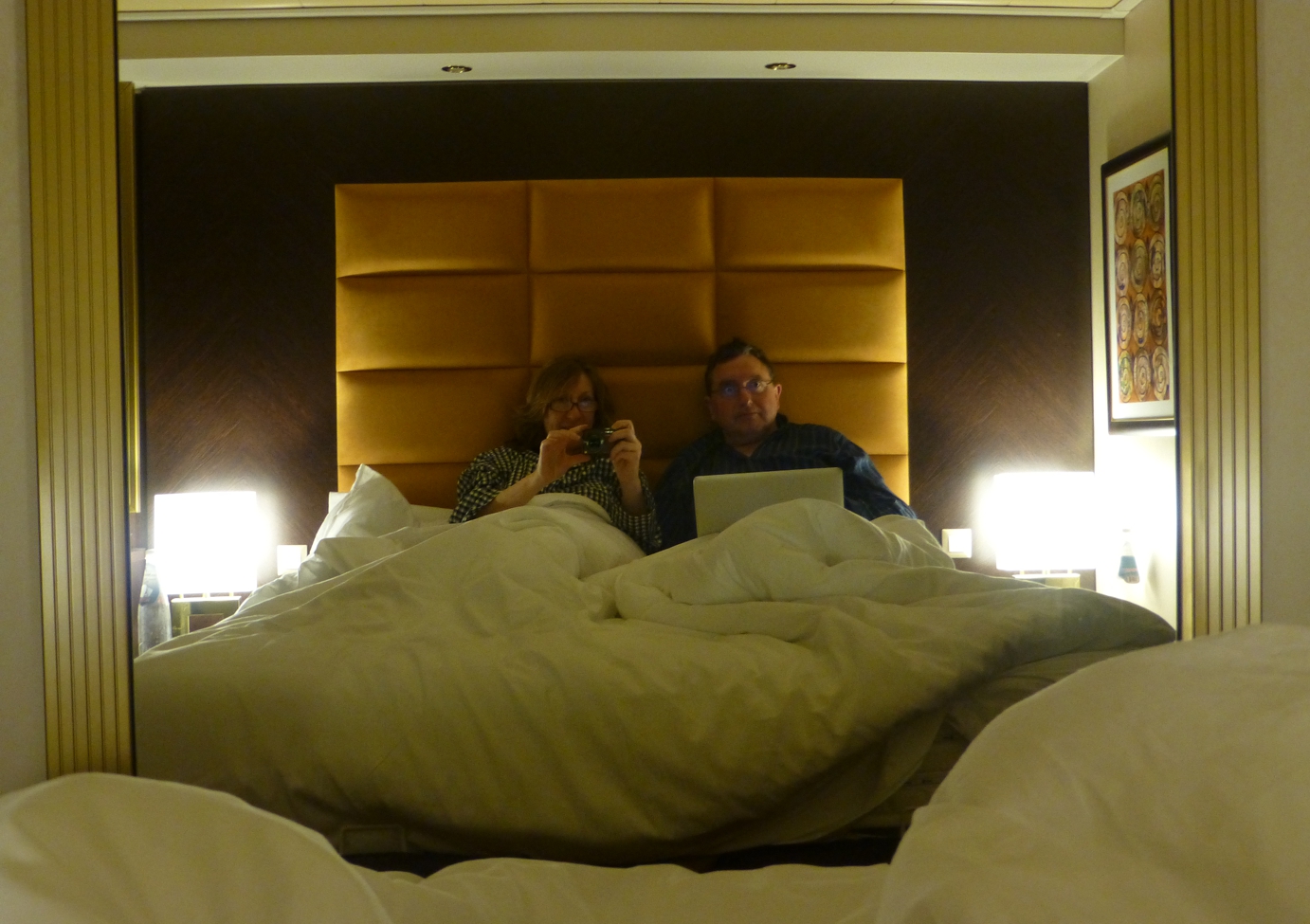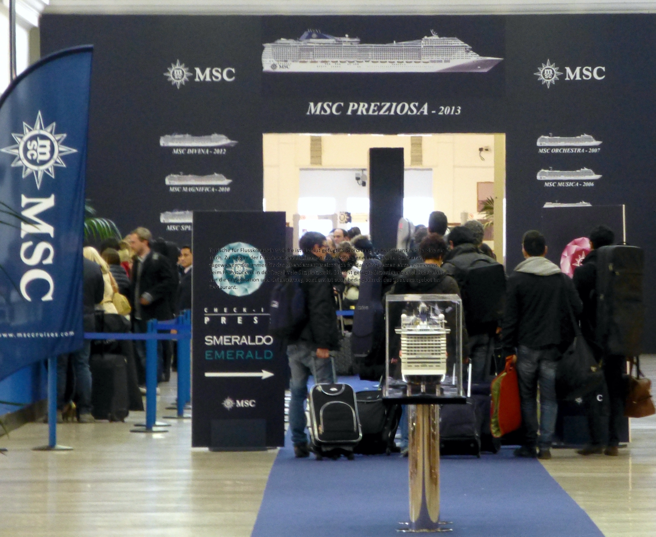 Die Tauffeierlichkeiten werden über zwei Tage laufen; wir sind auf zwei Nächte an Bord eingeladen, um dabei zu sein, werden aber auch die Gelegenheit nutzen, gleich anschließend die erste Fahrt des Schiffes mit zu machen. Unser Check-In gestaltet sich höchst einfach, da nur wenige hundert Menschen an Bord sein werden.