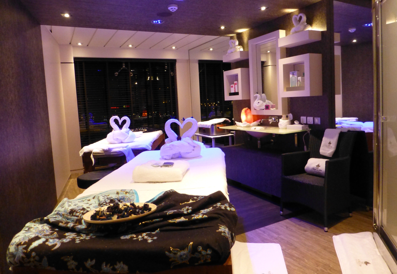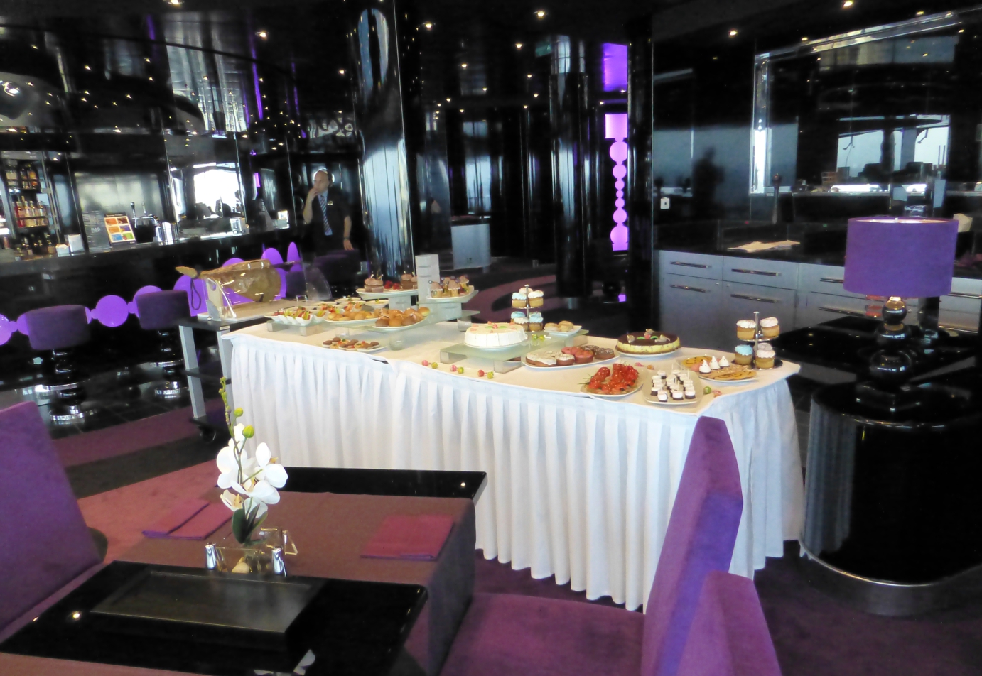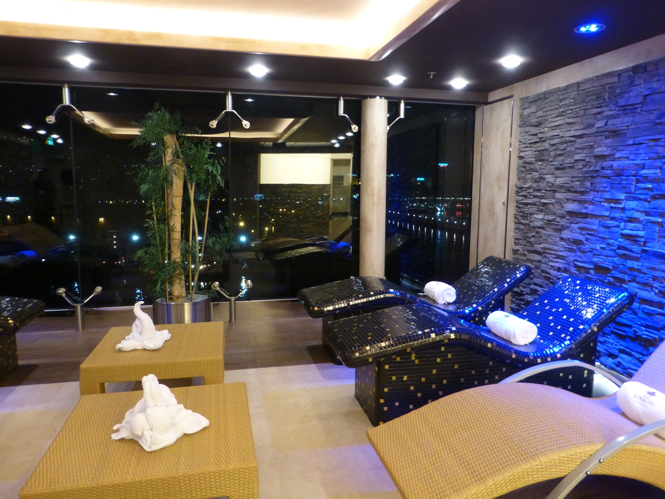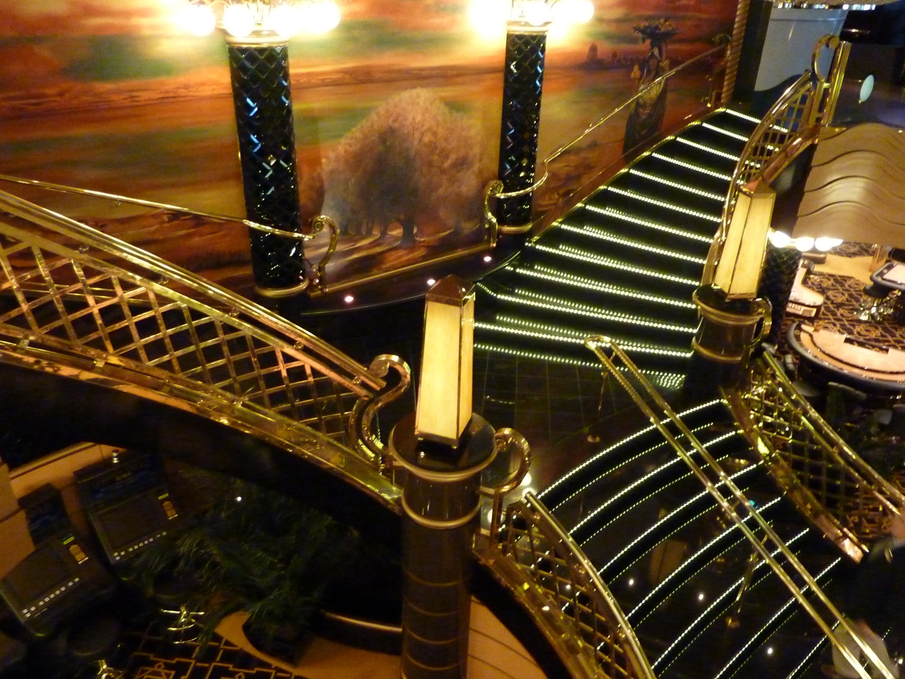 Die MSC-Schiffe haben uns immer begeistert, und so war es auch dieses Mal, bereits auf dem Weg zur Kabine und dann beim ersten Rundgang. Überall eine stilvolle, gediegene Ausstattung, auffallend in den öffentlichen Bereichen viel Marmor und Glas, überall große Fensterflächen, hochwertiges Sitzmobiliar, dann auch die Marmorböden, Teppichböden oder die breiten, großzügigen Treppenhäuser, im zentralen Atrium die Treppen gar mit Swarovski-Steinen belegt.