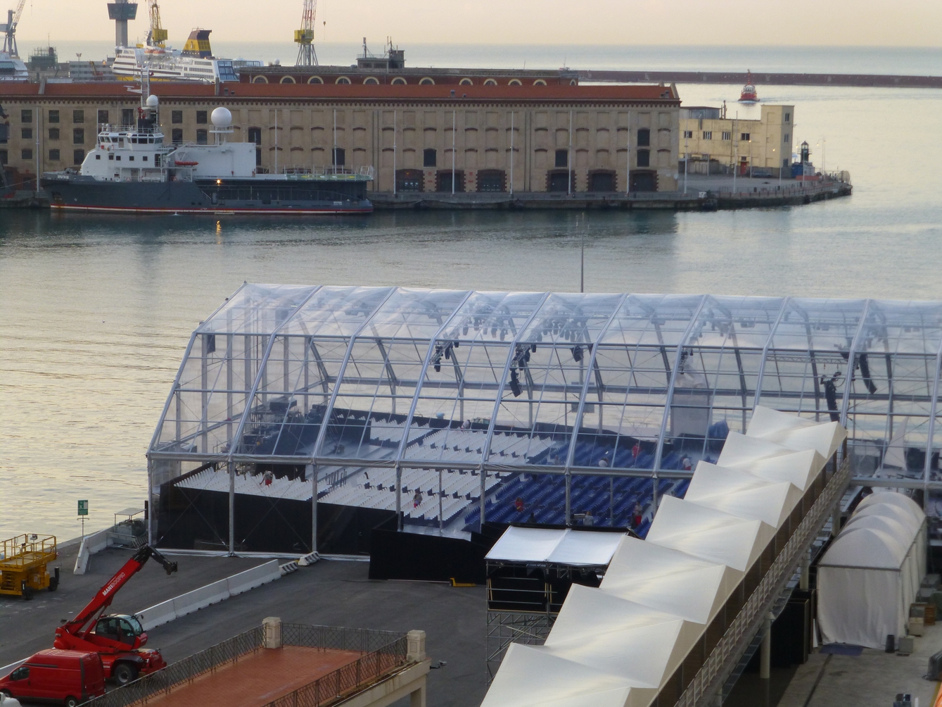 Am späten Nachmittag soll es losgehen mit den Tauffeierlichkeiten. Am Morgen haben wir schon gesehen, dass vor dem Schiff in Windeseile eine mobile Veranstaltungshalle aufgebaut wird. Warum, merken wir schnell im Tagesverlauf.