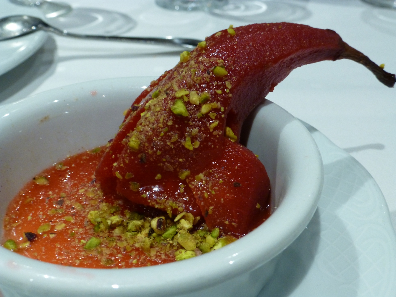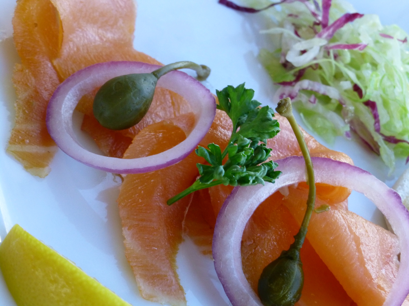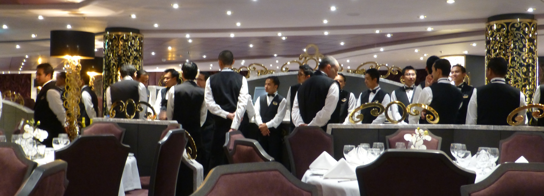 Zurück an Bord folgt ein festliches Abendessen, das sich sehen lassen kann – einige Fotos vom Abendessen an diesem Tag und am Tag zuvor zeigen eine leckere Vielfalt, prächtig präsentiert.