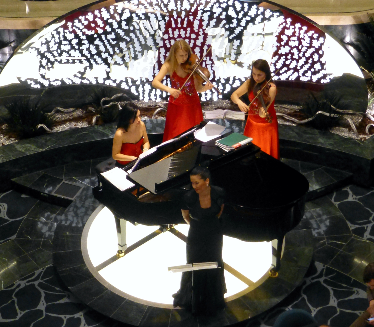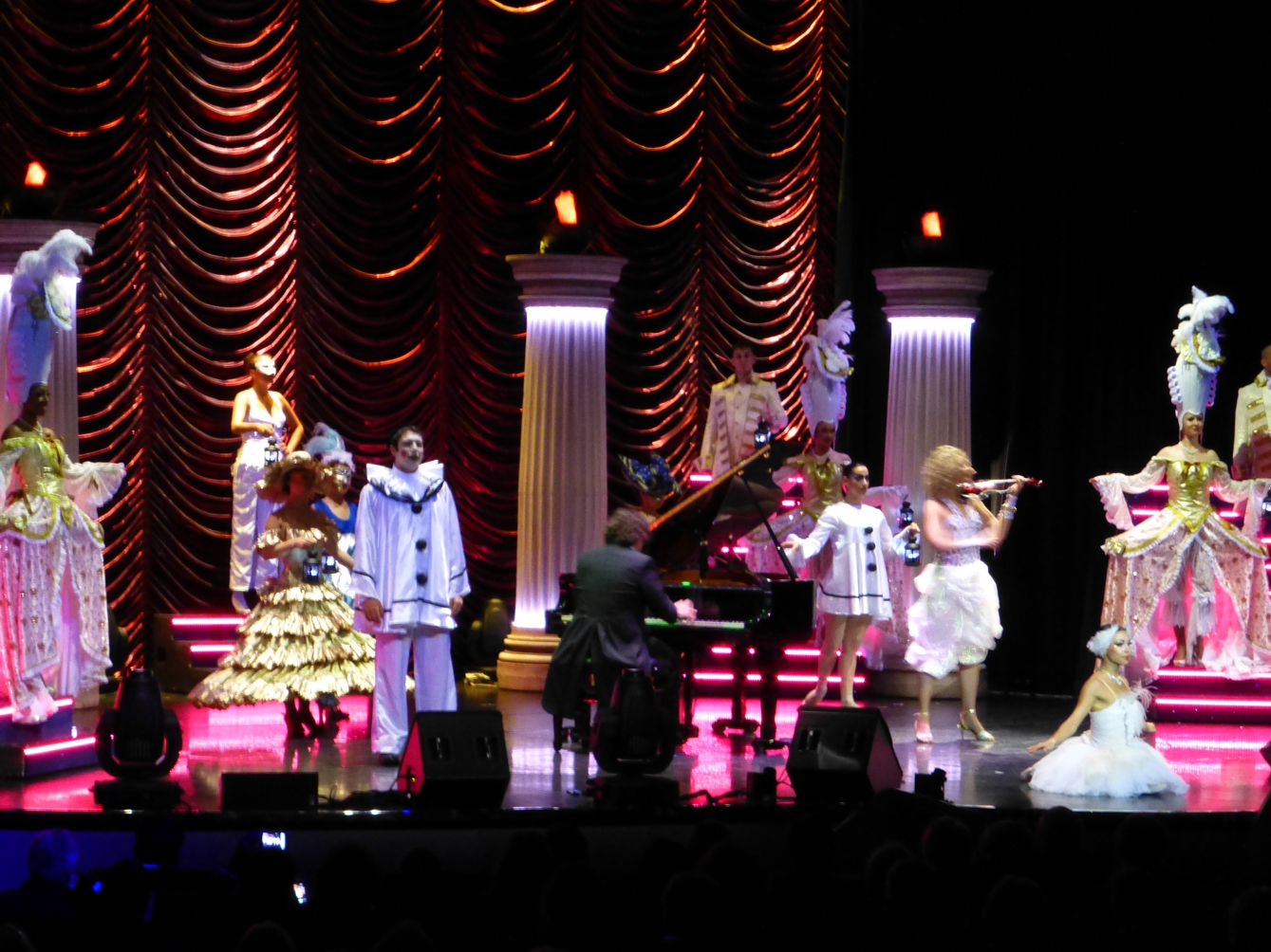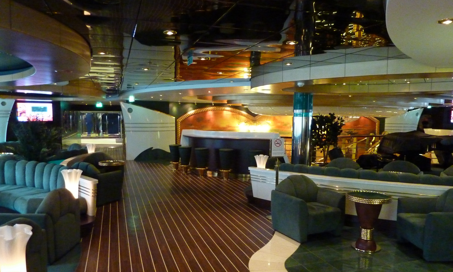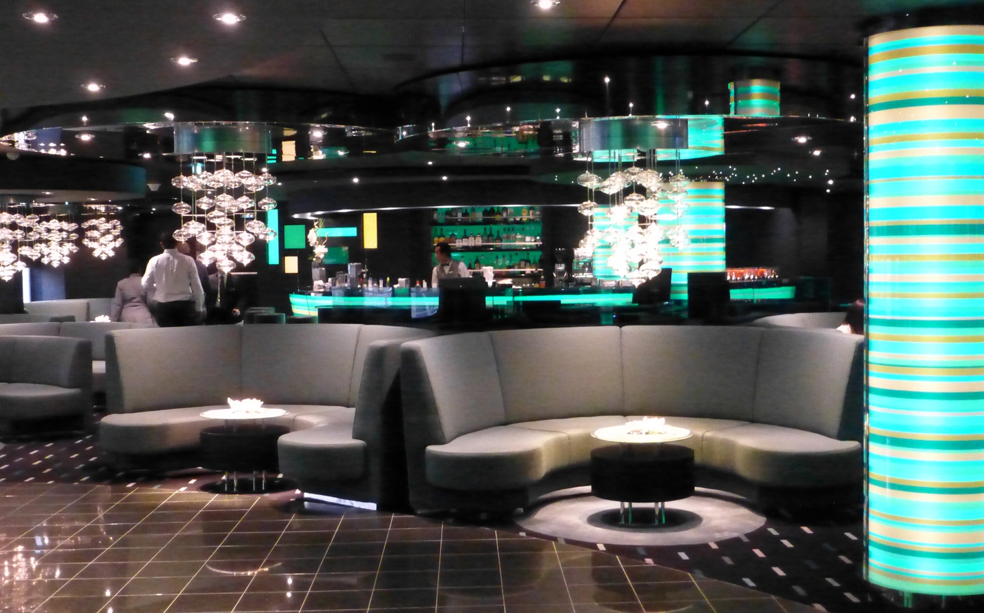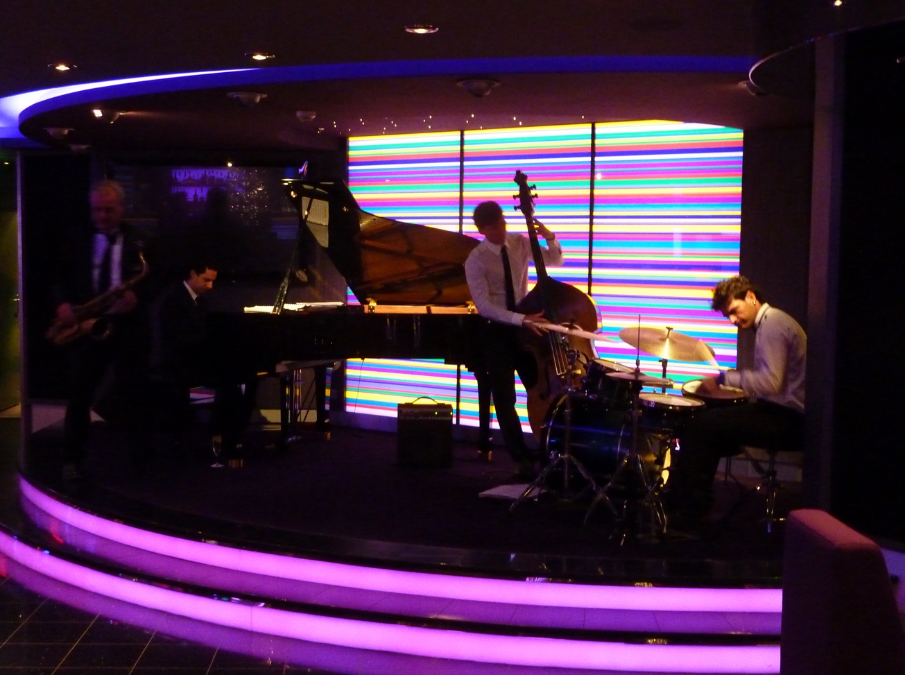 Und nach dem Abendessen: Überall auf dem Schiff Programm – Talk und Konzerte in verschiedenen Lounges und Bars, Shows auf den Bühnen.