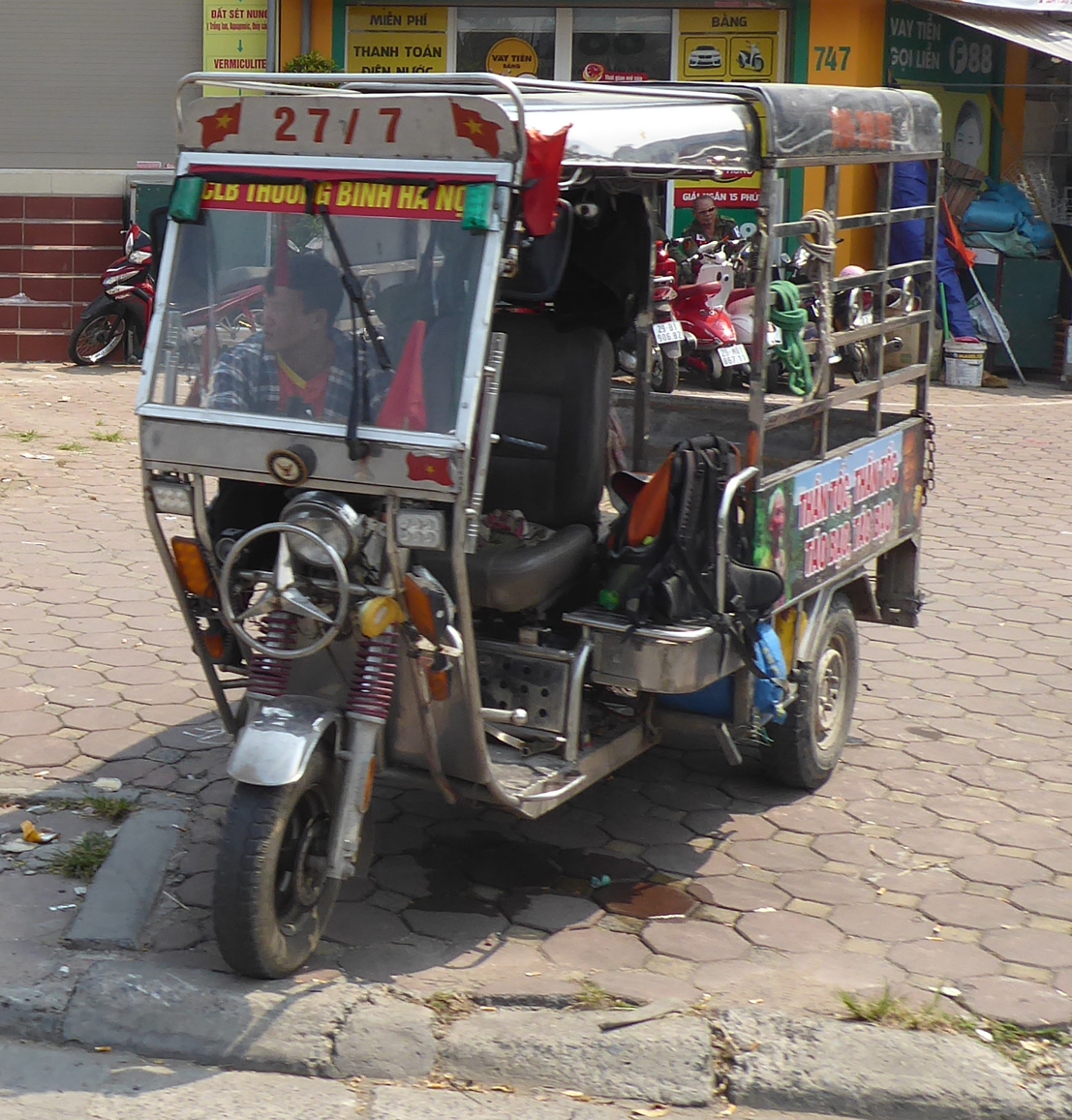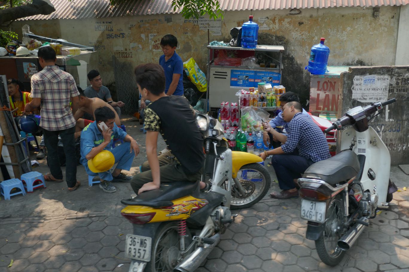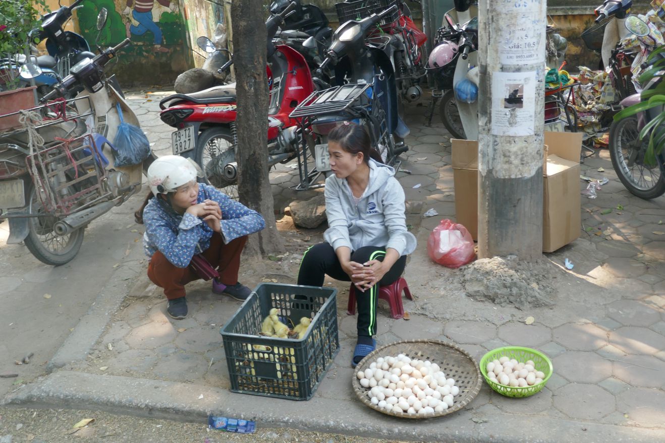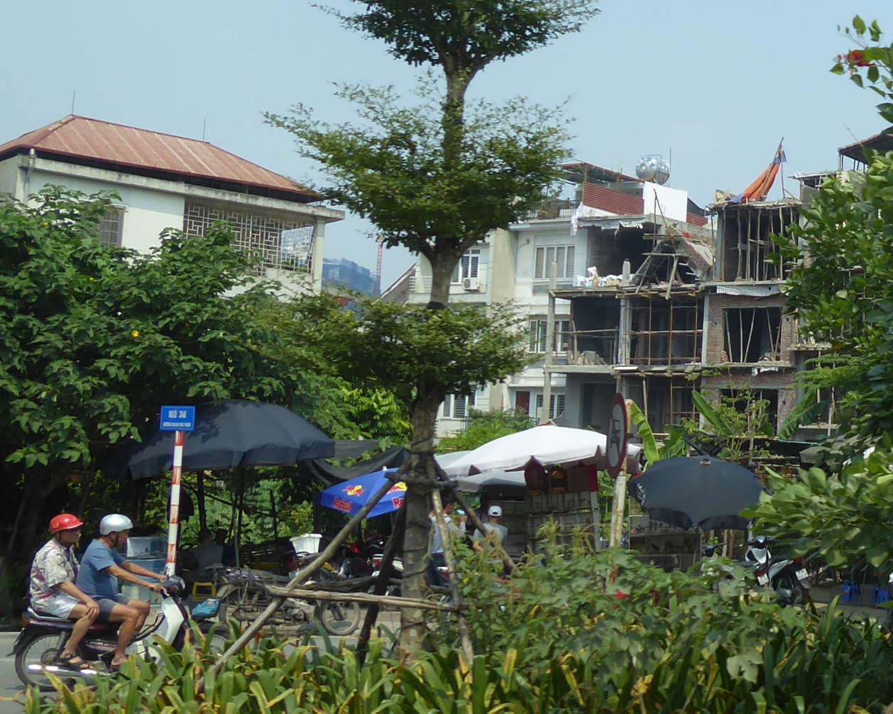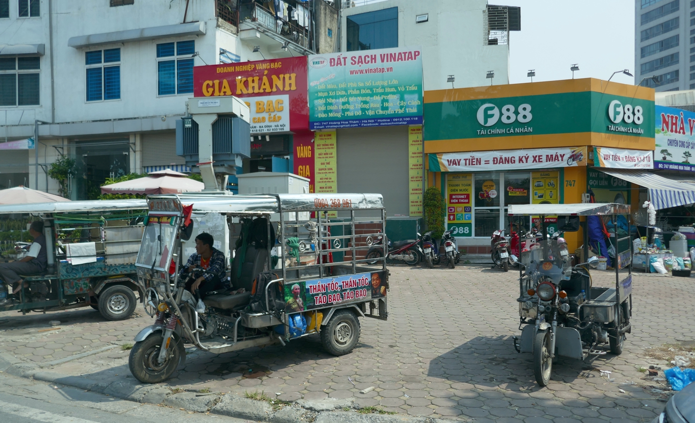 Immer näher kommen wir in Richtung Innenstadt von Hanoi. In den Vororten stehen entlang der Straßen dicht gedrängt einfache Wohnhäuser, oft schmal und hoch, die noch aus der Kolonialzeit stammen. Überall zeigt sich reges Stadtleben; gelebt, gewohnt, gegessen, verkauft, repariert, ausgeruht wird nicht nur in den Gebäuden, sondern überall entlang an den Straßenrändern und auf Fußgängerwegen. Am Straßenrand warten die ersten Tuc Tuc’s auf Fahrgäste.