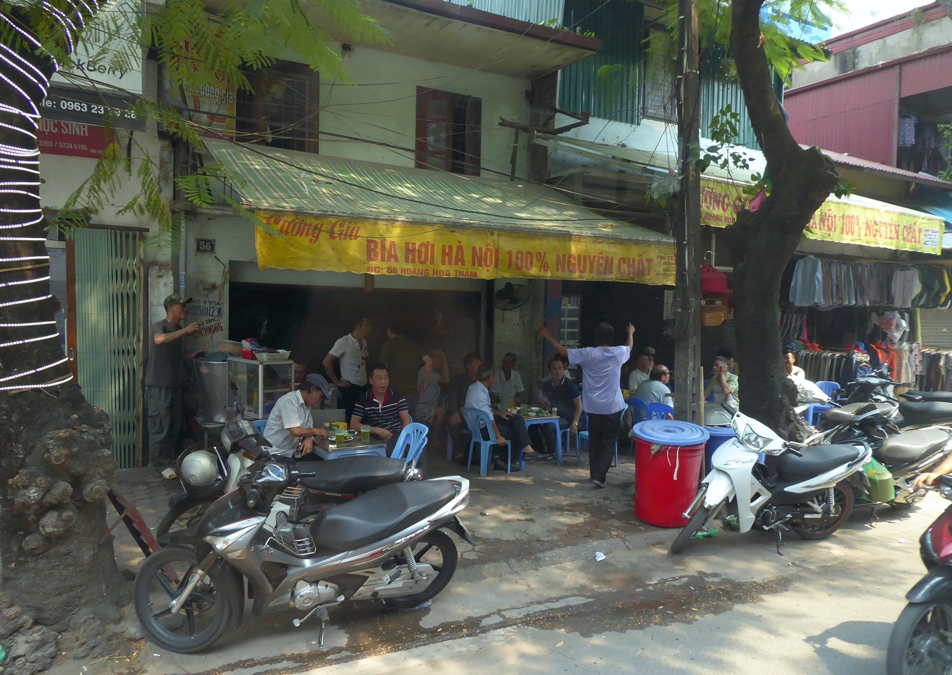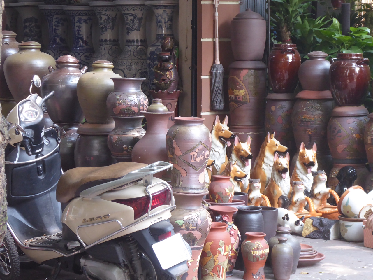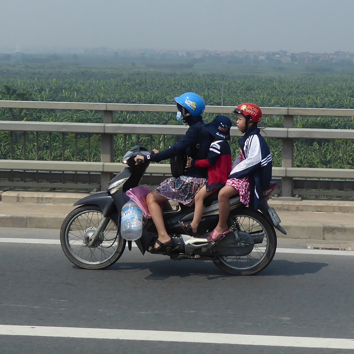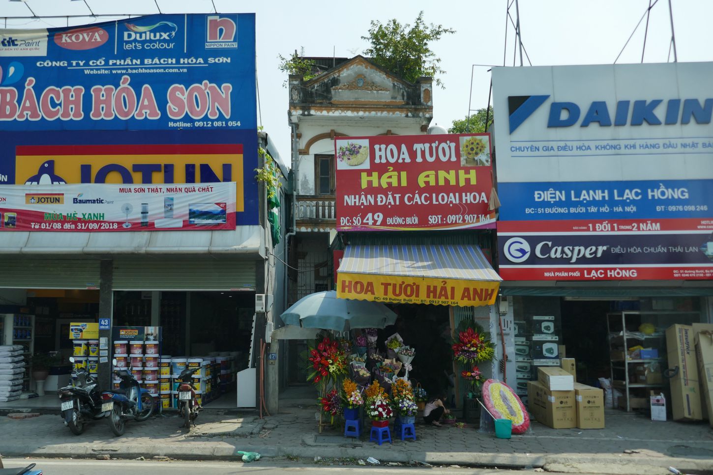 Immer näher kommen wir in Richtung Innenstadt von Hanoi. In den Vororten stehen entlang der Straßen dicht gedrängt einfache Wohnhäuser, oft schmal und hoch, die noch aus der Kolonialzeit stammen. Überall zeigt sich reges Stadtleben; gelebt, gewohnt, gegessen, verkauft, repariert, ausgeruht wird nicht nur in den Gebäuden, sondern überall entlang an den Straßenrändern und auf Fußgängerwegen. Am Straßenrand warten die ersten Tuc Tuc’s auf Fahrgäste.