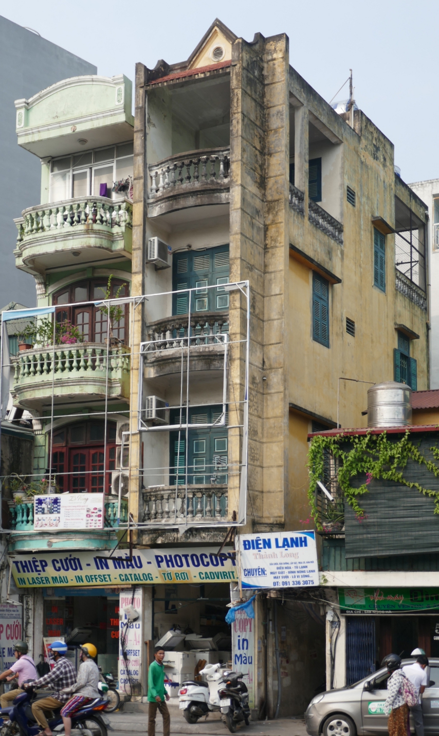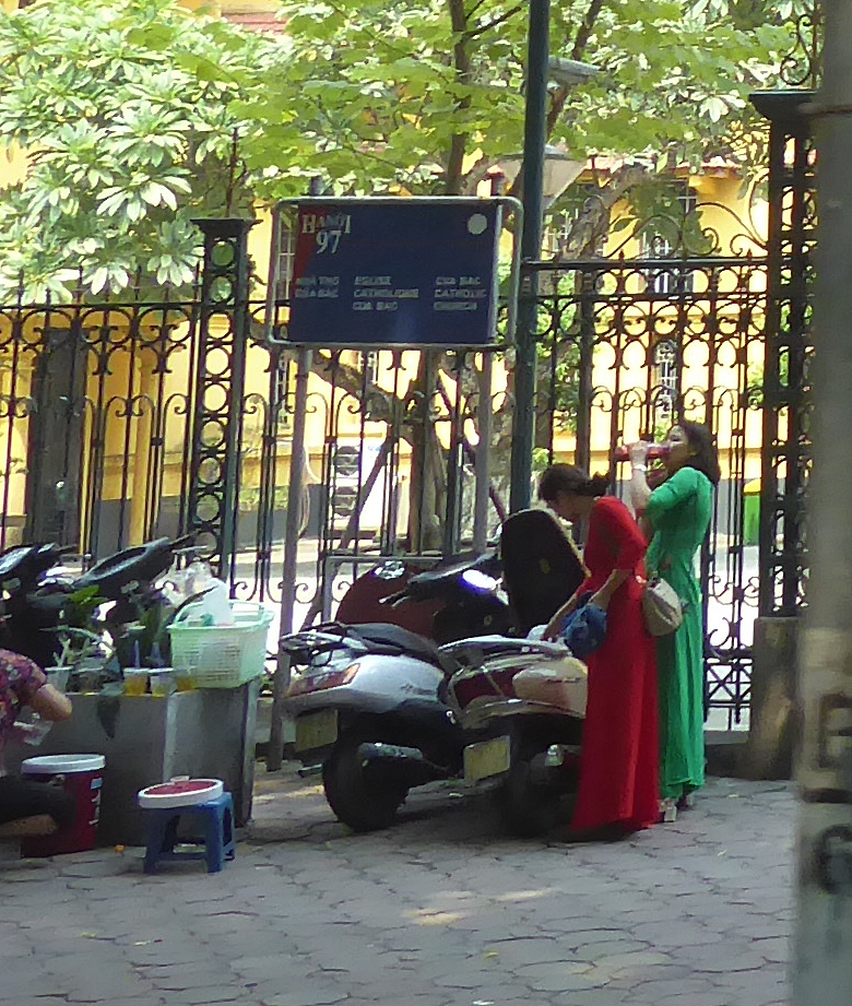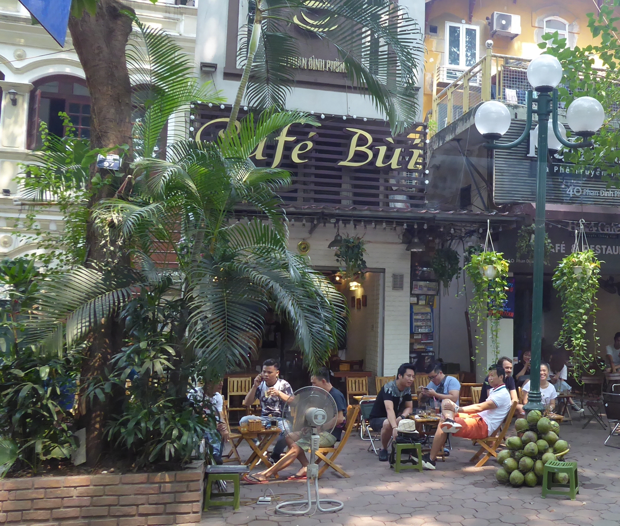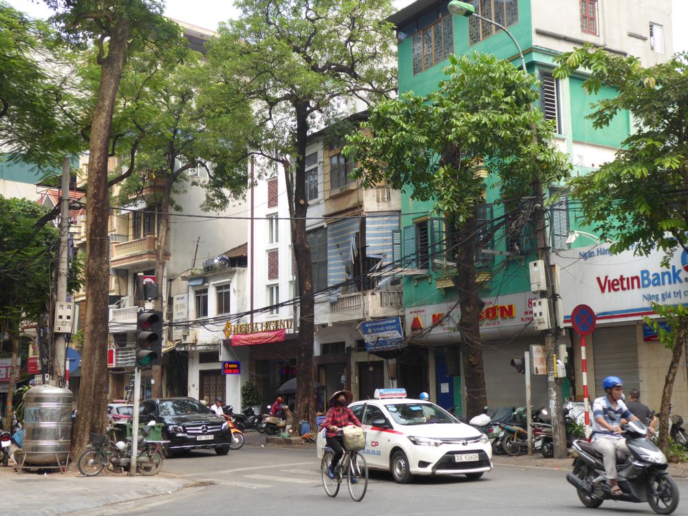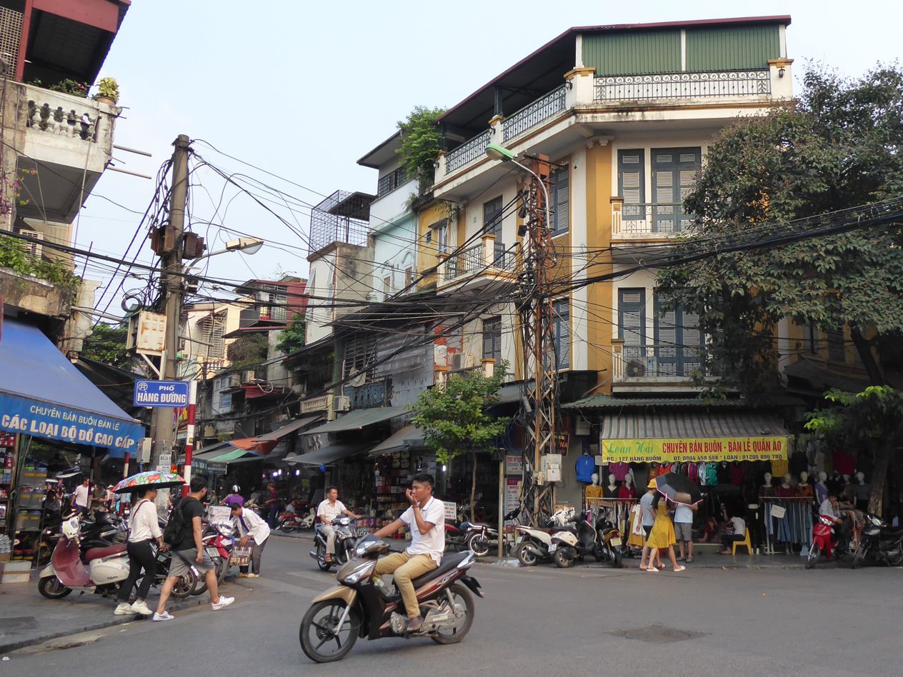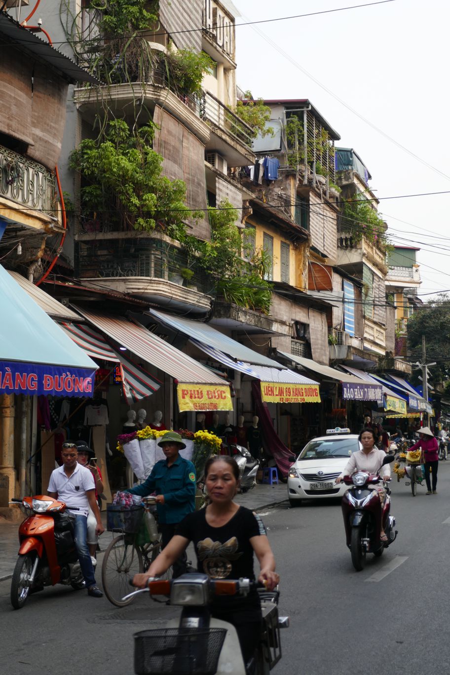 Schön, dass unser Hotel mitten in der Altstadt von Hanoi liegt. Wir sind ja nur zwei Tage in der Stadt, und so machen wir uns nach kurzer Pause auf den Weg, um Hanoi zu erkunden, ein paar Eindrücke zu sammeln. Kaum aus dem Hotel heraus gekommen zeigt sich schnell, dass uns ein paar Themen in Hanoi dauerhaft begleiten werden – Straßenküchen und Mopeds, dazu die charmanten, morbiden Gebäude aus der französischen Kolonialzeit.