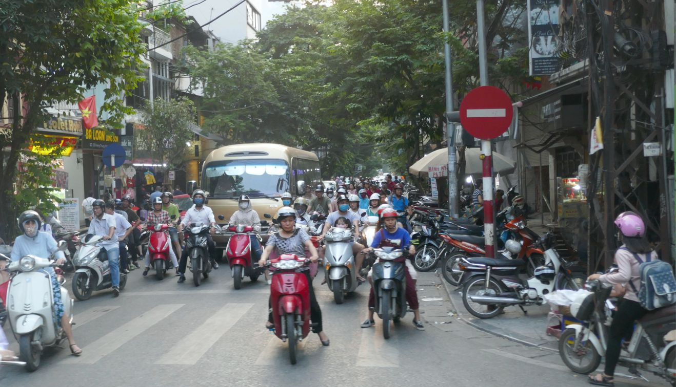 Der Bürgersteig ist kaum begehbar. Wenn keine Geschäfte oder Suppenküchen den Gehweg versperren, dann sind es die Mopeds, die dort – eng an eng – geparkt werden. Zu Fuß gehen ist eigentlich nicht vorgesehen und wird meist auch nur von Touristen gemacht.