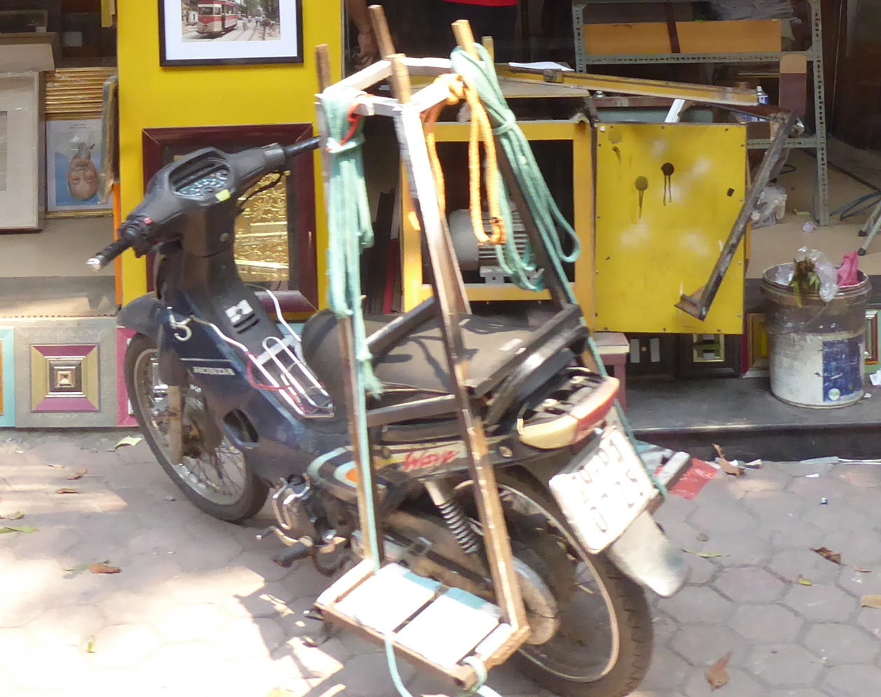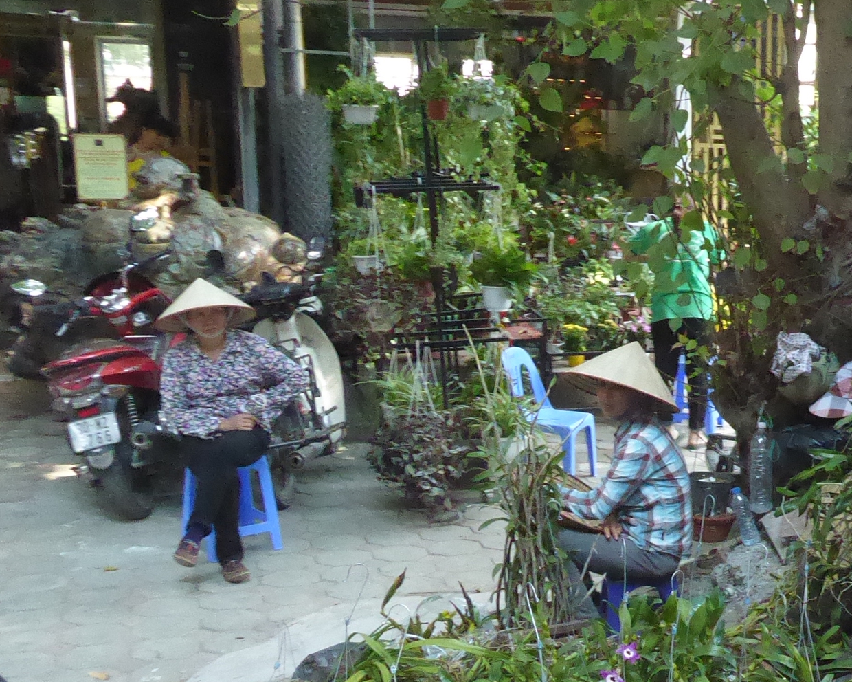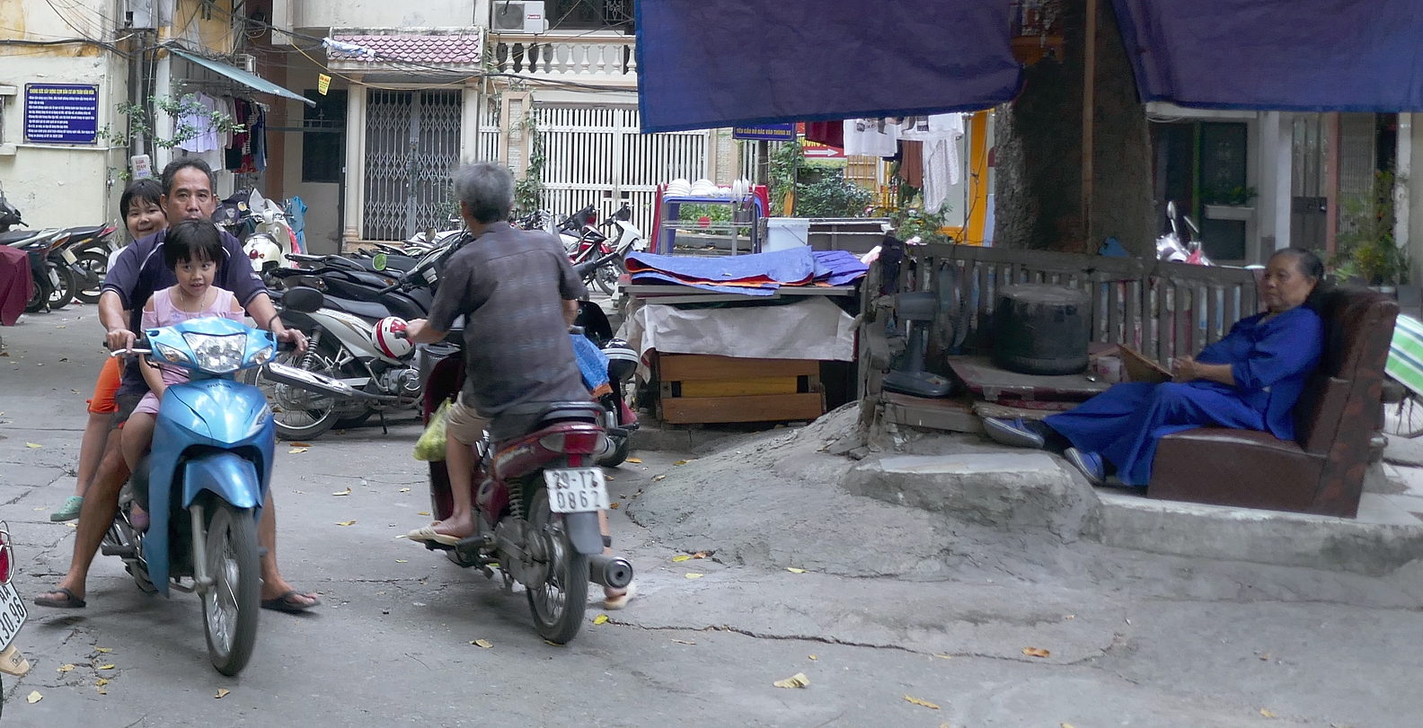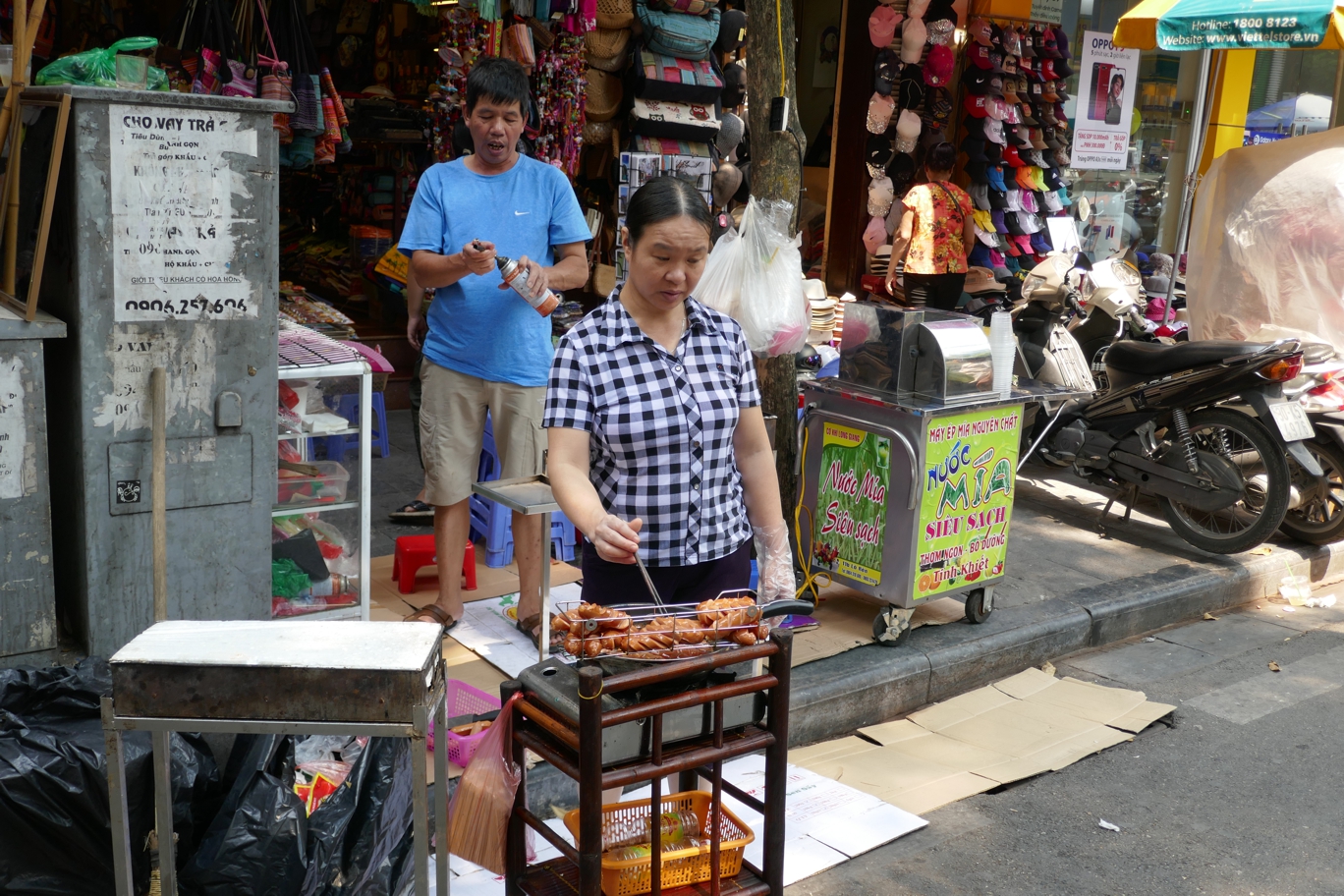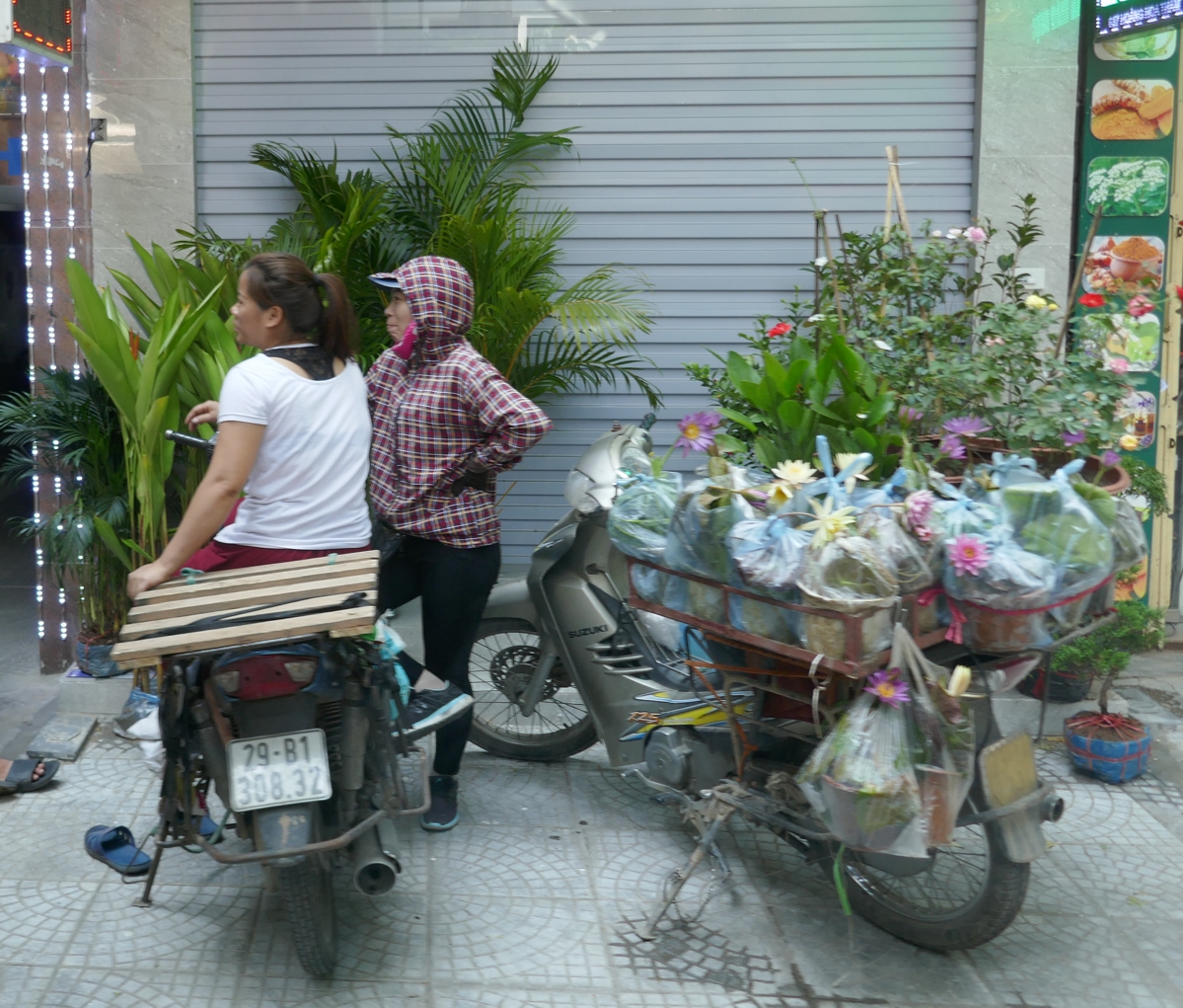 Der Vietnamese ist äußerst ungern zu Fuß unterwegs, fährt lieber Moped, erledigt vom Moped aus, soweit es geht, auch seine Einkäufe, und stellt es am liebsten direkt neben dem Sitzschemel der Garküche ab, bei der er zum Essen geht. Fußgänger sind am Straßenrand unterwegs, sorgen für weitere Belebung zwischen Mopeds, Autos, Rikschas und Tuc Tuc’s – und für uns heißt es in der doch etwas gewöhnungsbedürftigen Situation, ziemlich aufmerksam und vorsichtig zu sein.
