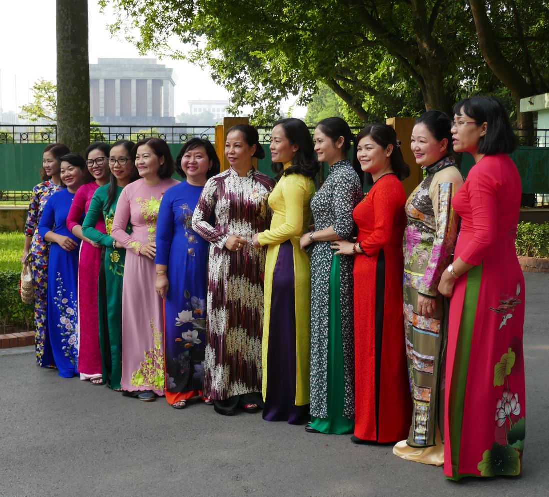 Vor dem Mausoleum liegt der große Paradeplatz mit der Tribüne, von der aus Ho Chi Minh am 2. September 1945 die Unabhängigkeit Vietnams erklärte. Als wir da sind, wird gerade an eine Gruppe eine Auszeichnung verliehen. Der Platz wird, so wie wir beobachten, auch gerne für Erinnerungsfotos genutzt. Nebenbei: Bei netter Anfrage haben sich alle Vietnamesen und auch die chinesischen Touristen gefreut, wenn wir ein Foto mit ihnen machen wollten.