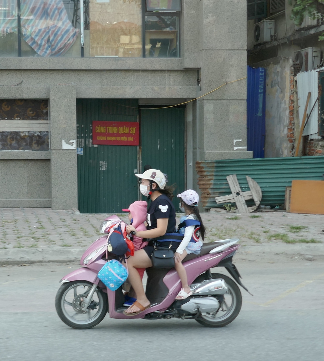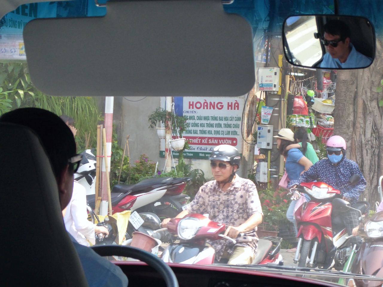 Es geht auf eine für vietnamesische Verhältnisse sehr lange Strecke, 160 km weit weg, zur Halong Bucht – Fahrtzeit etwa vier Stunden, weniger den Straßen selbst, sondern mehr dem Straßenverkehr geschuldet. Unser Busfahrer legt einen zackigen Fahrstil vor. Wer am Straßenrand etwas sehen will, muss schnell schauen – nicht wegen ungeahnter Höchstgeschwindigkeiten, sondern einem schnell durchgetretenen Gaspedal und kurzfristig heftig getretener Bremse. Wir sind im Schnell-Langsam-Rausch – die vielen Mopeds und wenigen Autos rundum machen es möglich.