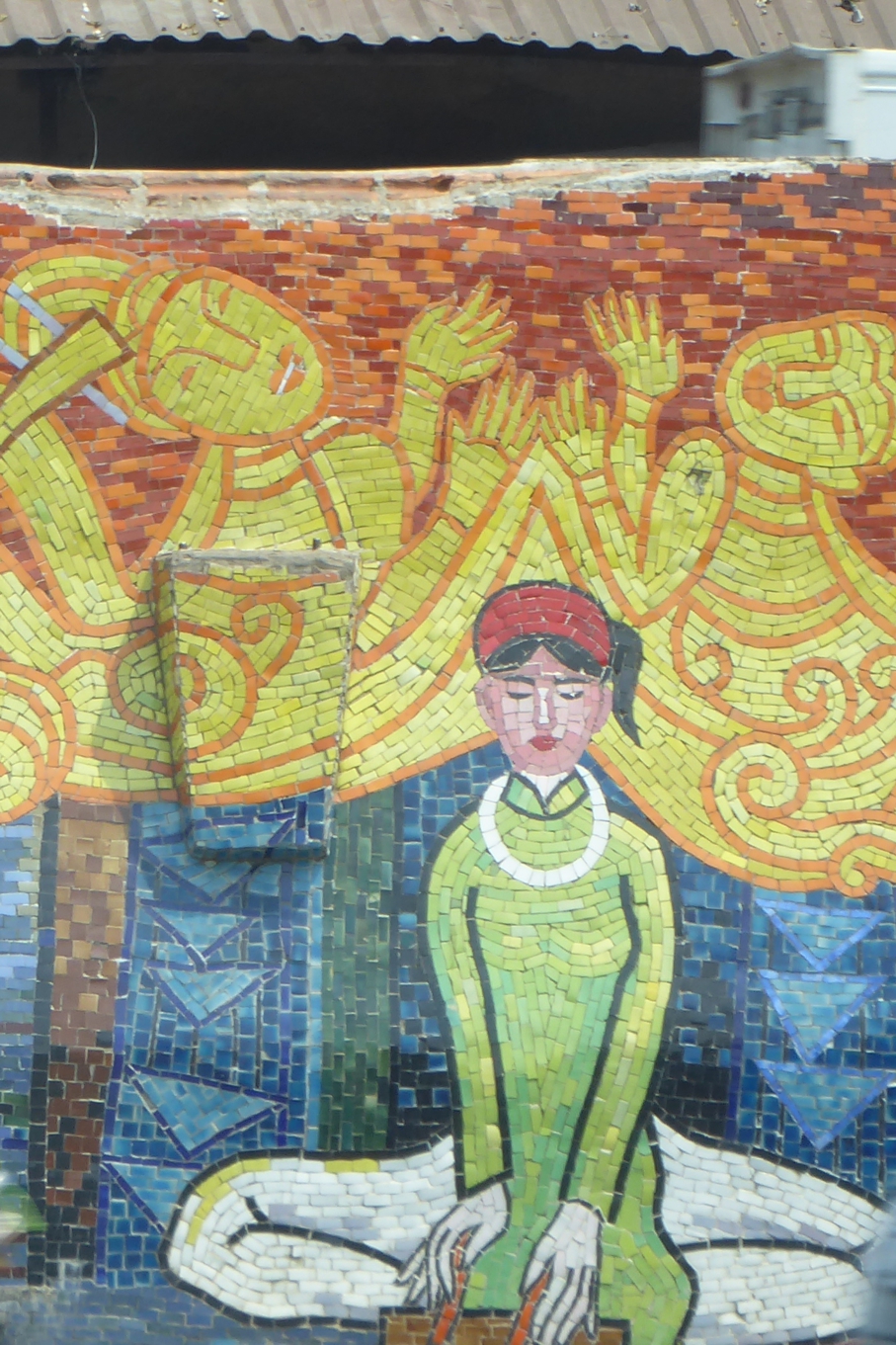 Nach dem Essen geht es zur großen Hauptstraße, die aus der Stadt hinausführt. Es ist eine neue Straße, quer durch die Stadt gelegt, mit einer etwa vier Kilometer langen Befestigungs- und Begrenzungsmauer, die komplett mit Mosaiken verziert ist – szenische Darstellungen aus dem Alltagsleben, Ornamente, Blumenmuster und mehr.