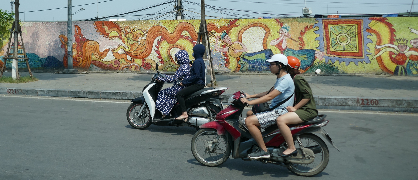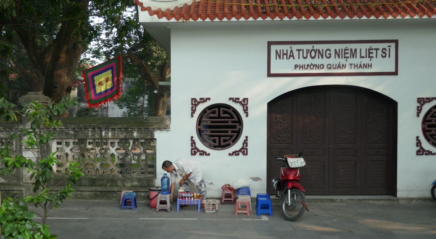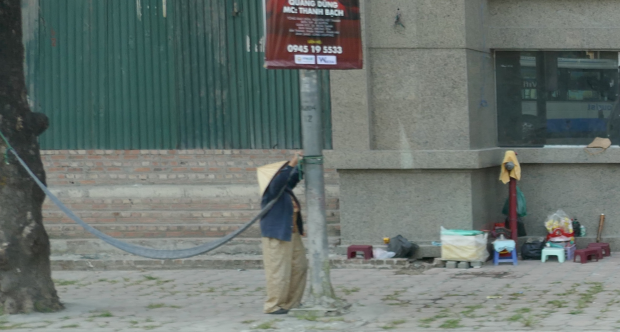 Aber zunächst geht es noch kreuz und quer durch Hanoi, erst einmal durch die altbekannten Viertel der Altstadt. Wie wir schon gewohnt sind wuseln überall die Mopeds und Roller, entlang der Straßen wird gekocht und gegessen, die Straßenverkäufer sind unterwegs und die Geschäfte präsentieren ihr Waren, oder es wird auch mal an der Straße eine Hängematte aufgehängt, für die kleine Pause.