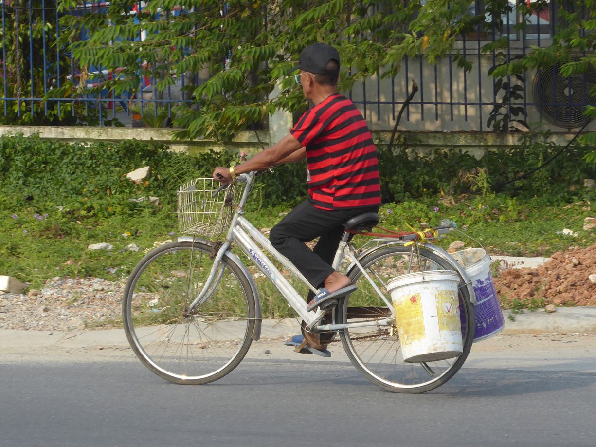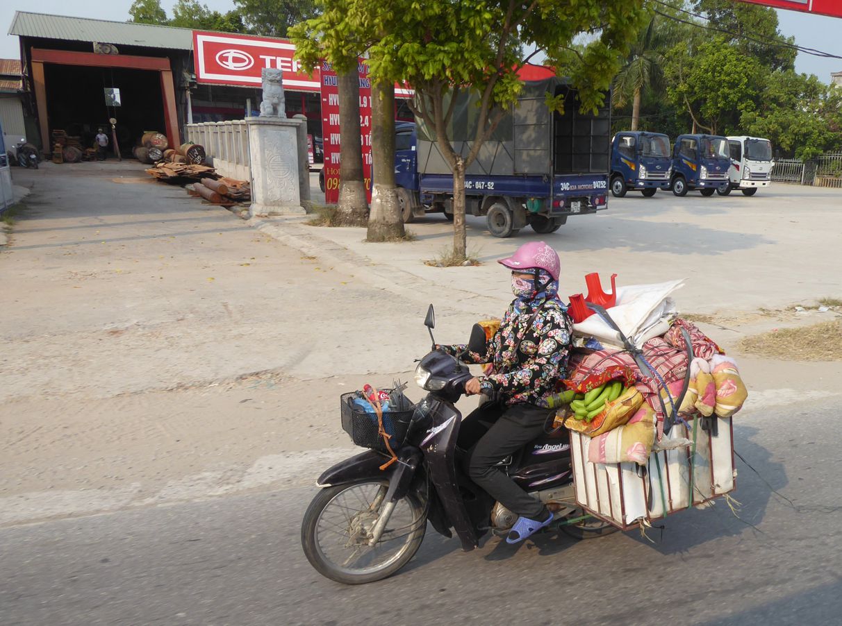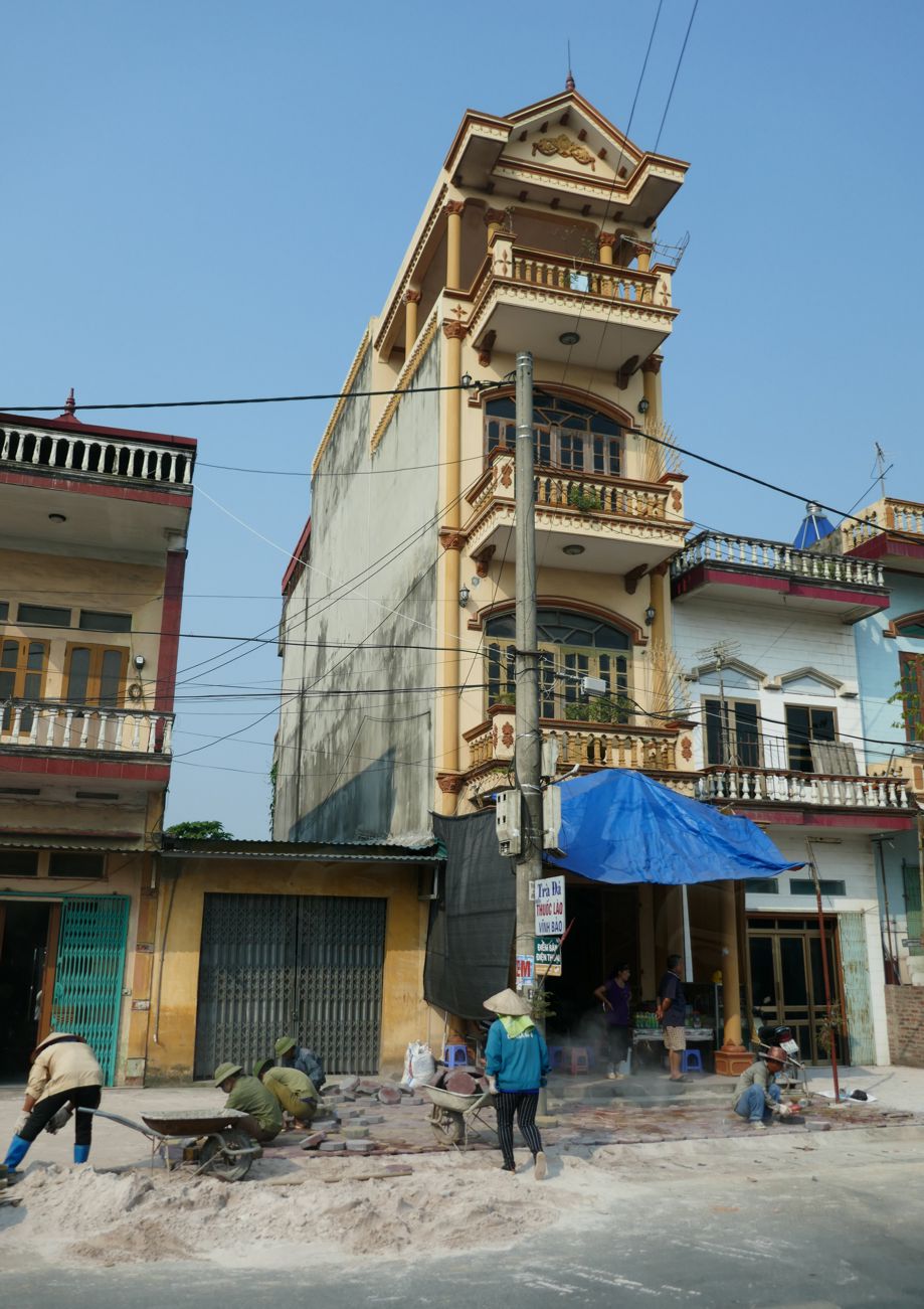 Währenddessen gibt es im Bus Informationen zum Beispiel zum Wehrdienst – Pflicht für alle, doch nur ein kleiner Teil wird wirklich eingezogen. Wer nicht dazu gehören möchte, kann sich für jährlich 8 Mio. Dong freikaufen. Wir hören auch, dass die Zahlen zur Arbeitslosigkeit höchst unterschiedlich seien, je nachdem, wer sie veröffentlicht. Dasselbe gilt für die Inflationsrate – offiziell sind es unter 4 %, wir hören aber auch, dass es ein Mehrfaches wäre. Ebenso unterschiedlich sind die Angaben zum durchschnittlichen Einkommen, das jährlich knapp 2.000 $ betragen soll – kaum glaubhaft, wenn man von Löhnen von drei bis fünf Dollar pro Tag hört, oder die Kleinstbeträge sieht, die am Straßenrand für Obst und Gemüse oder in den Garküchen verlangt werden. Wie immer solche Durchschnittszahlen entstehen und zu verstehen sind, wissen meist nur diejenigen, die sie veröffentlichen. Und Wahrheit, Wohlstand, Bildung und Einkommen scheinen viel mit parteilicher Bindung zu tun zu haben. Wir können das alles nicht nachprüfen, wir können nur staunend zuhören – und wie es oft so ist: Es bleiben endlos Fragen, die man aufwerfen kann …