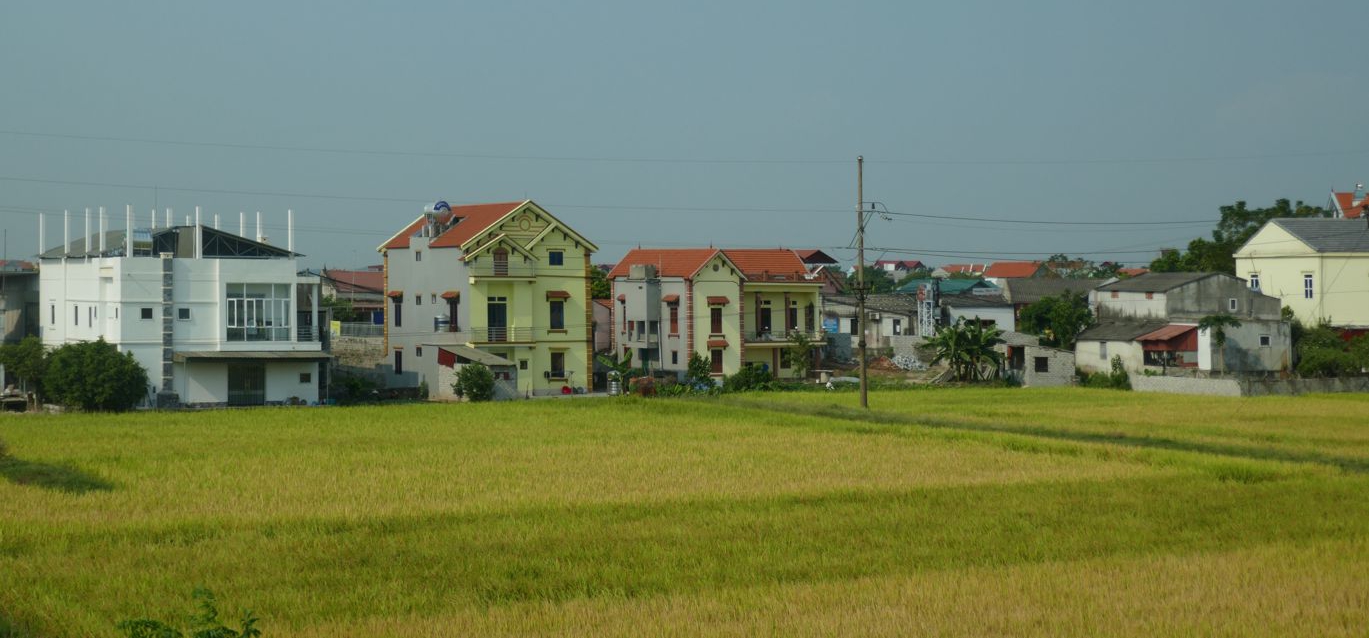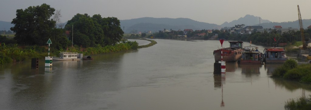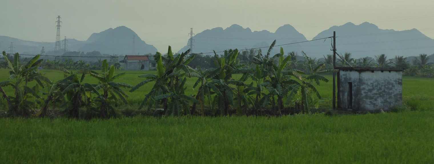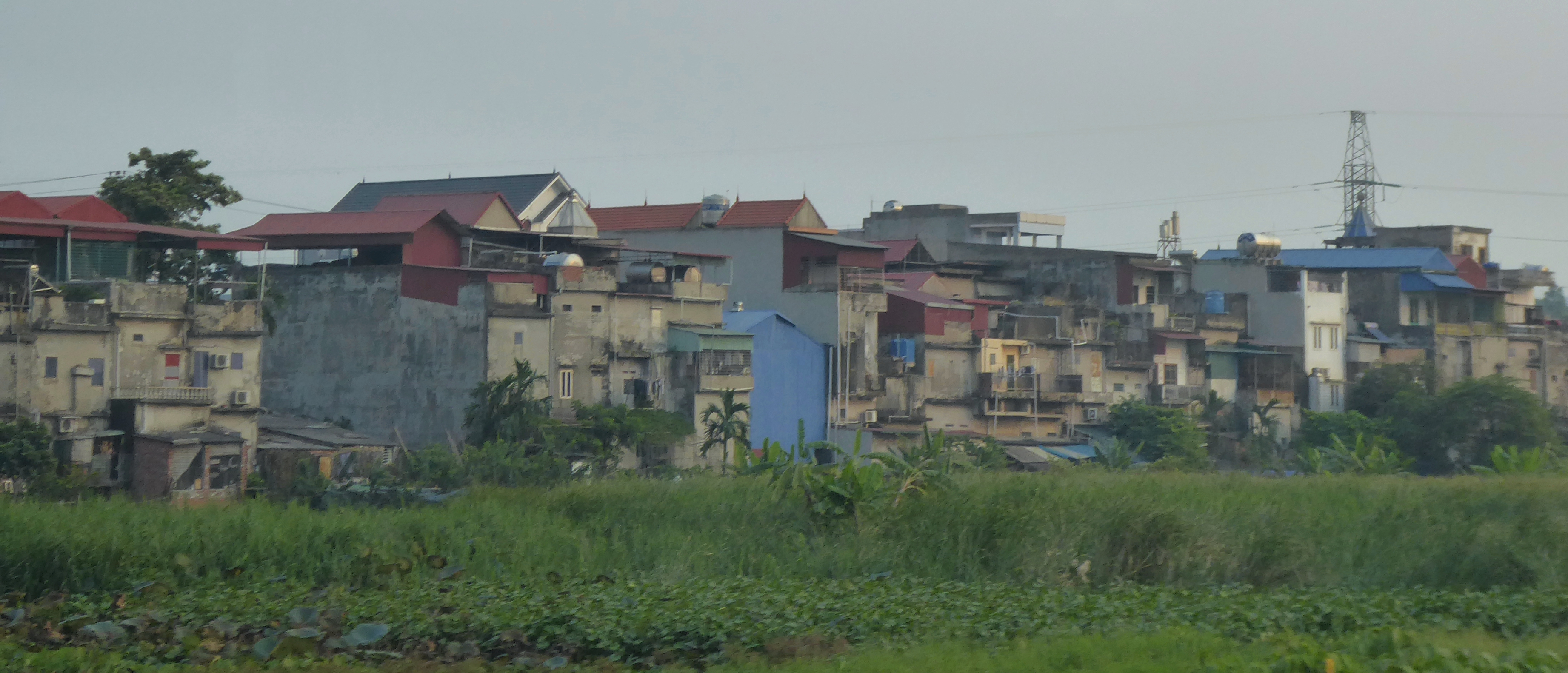 Während all dieser Informationen leben wir weiter in unserer Parallelwelt – drinnen im Bus die Vietnam-Info, manchmal ergänzt mit Hinweisen auf das, was draußen zu sehen ist, wo es vorbei geht vor allem an Dörfern und Feldern.