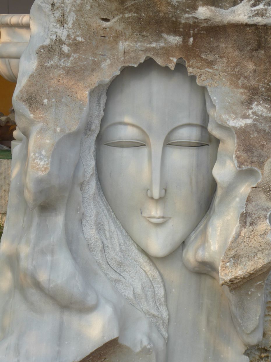 Für uns unvorstellbar, was hier alles geboten wird – Steinmetzarbeiten von kleinstem Format bis zu mehreren Metern hohen Figuren, nicht ein paar, sondern in rauen Mengen, unzählige. Figuren für alles, was man sich denken kann, die Motive allesamt ziemlich wahllos durcheinander.