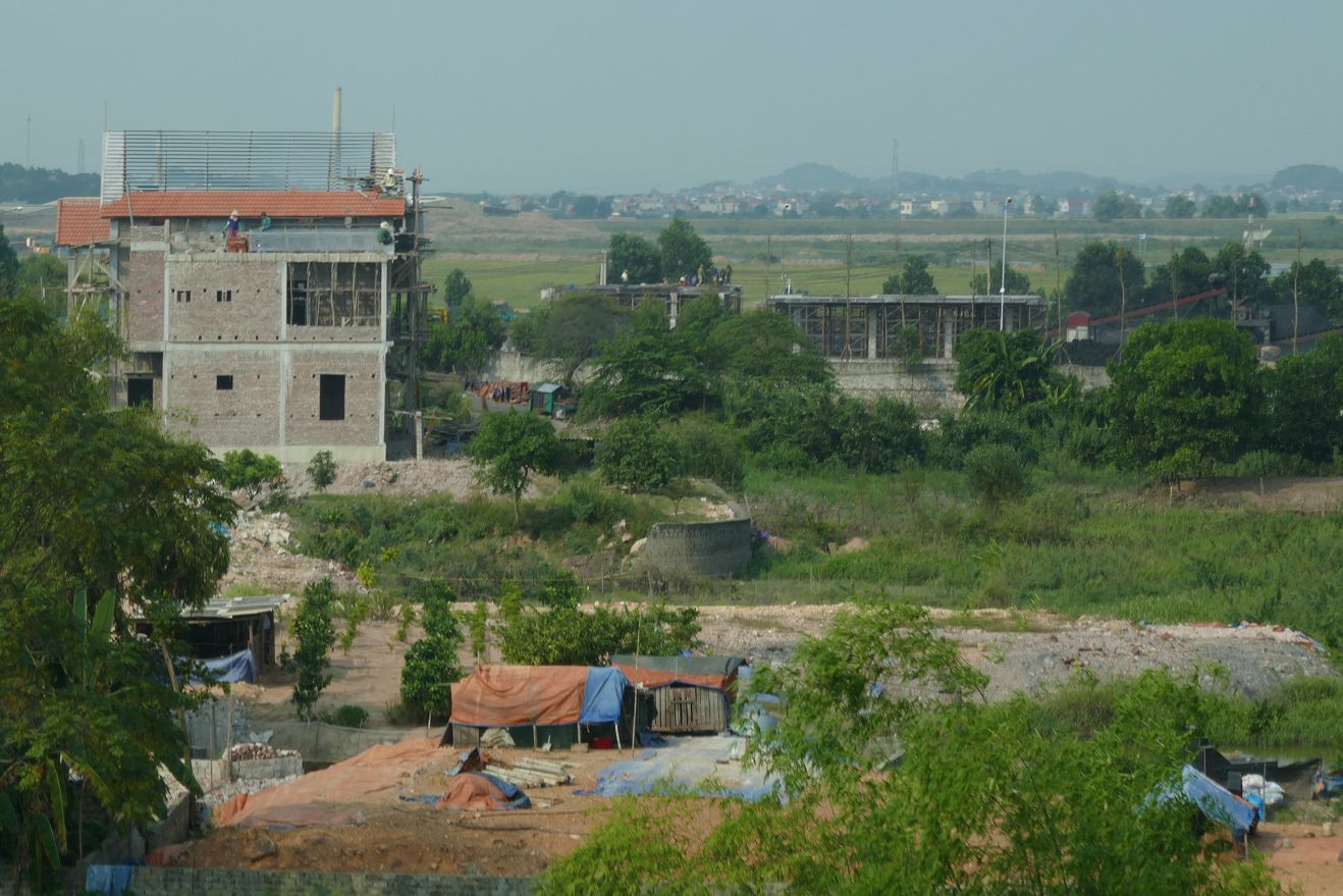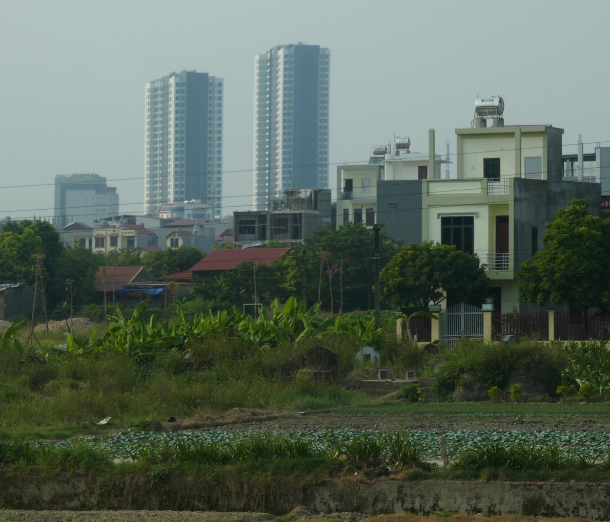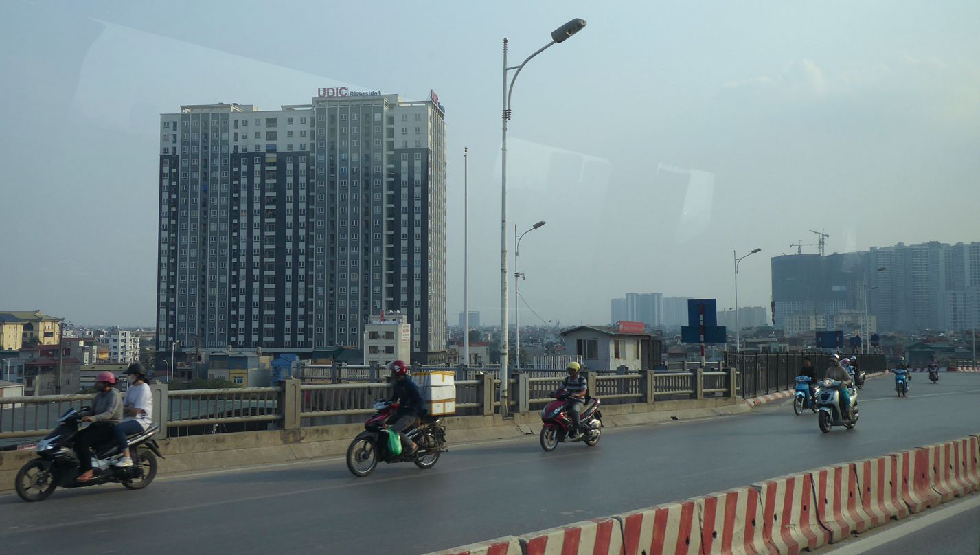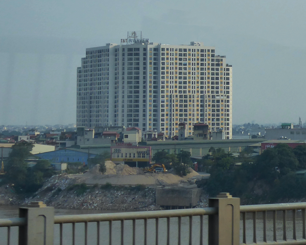 Lange geht es über Land. Irgendwann kommen wir vom Geschaukel auf der Straße inzwischen ziemlich ermüdet in den Außenbezirken von Hanoi an – hier entsteht die moderne Wohnstadt, eine Ansammlung von Wolkenkratzern, die so gar nicht ins Stadtbild, das man sonst so sah, passen wollen.